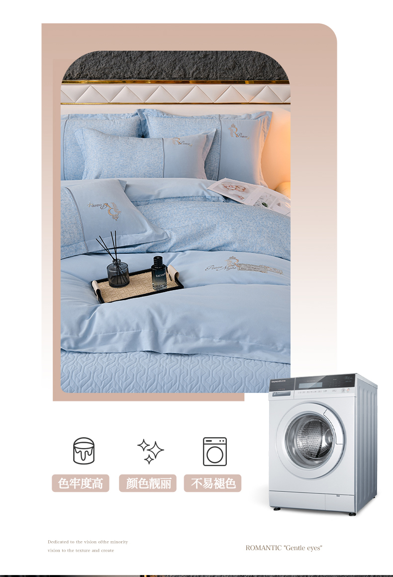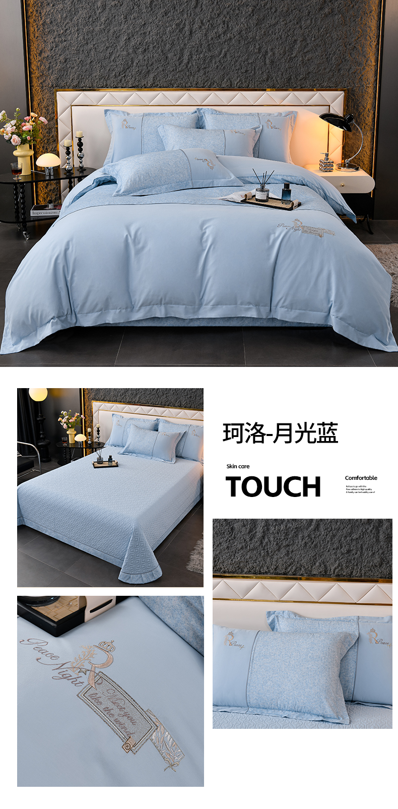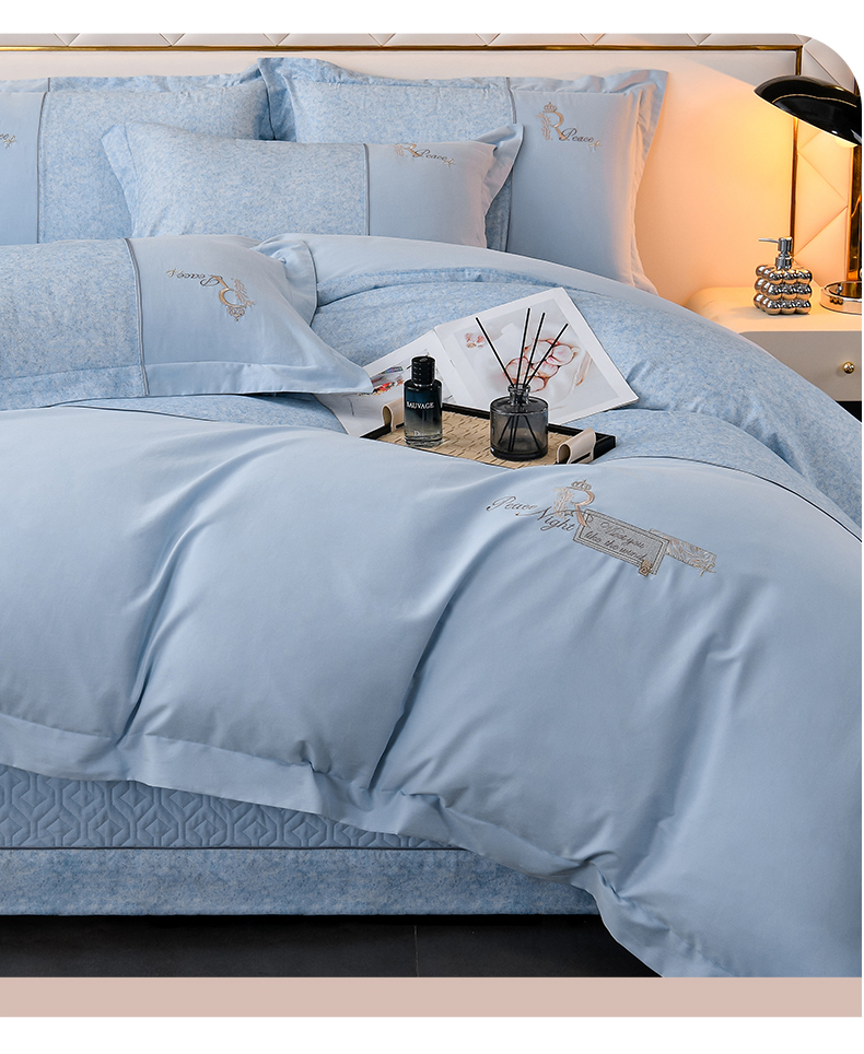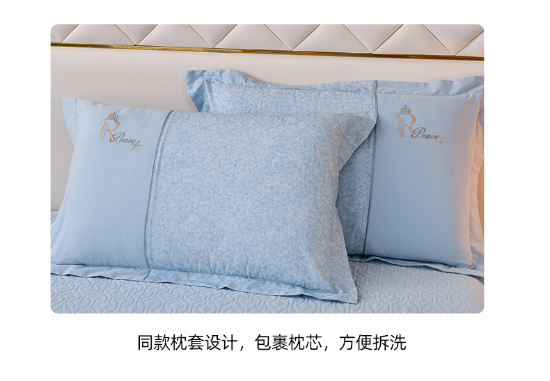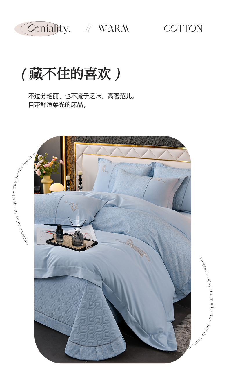 商品名称:小时代家纺 2024新款全棉60支轻磨毛肌理纹夹棉床盖四件套-珂洛 珂洛-月光蓝