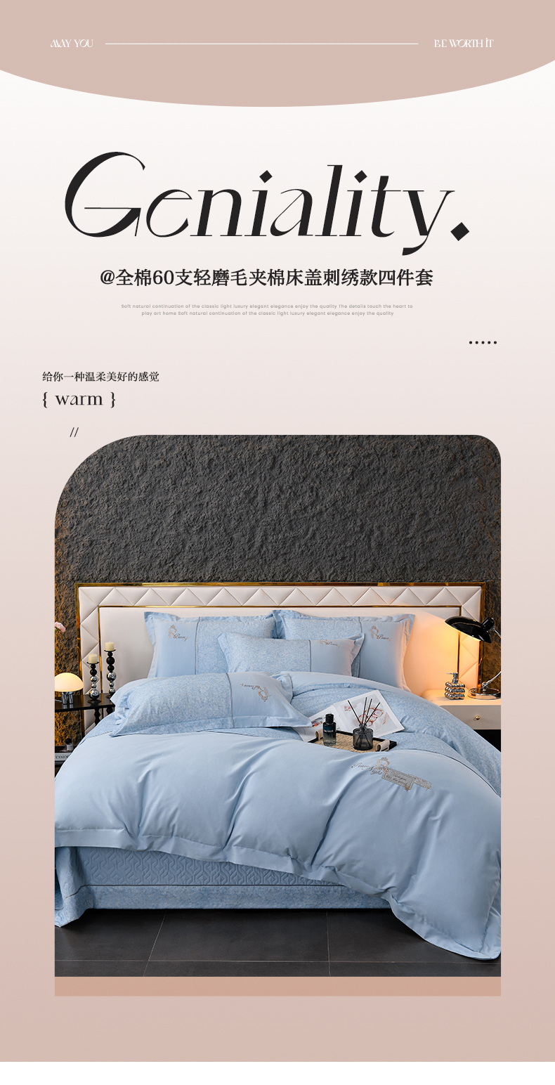 (总)小时代家纺 2025全棉活性喷气简约轻奢刺绣夹棉床盖款四件套-雅韵,雅韵-橙色,雅韵-灰兰,雅韵-青绿,雅韵-香槟,雅韵-胭粉,雅韵-紫色