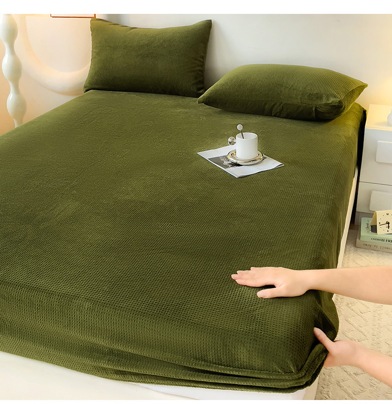 漫时光 2025新款牛奶绒烂花床笠 华夫格-绿