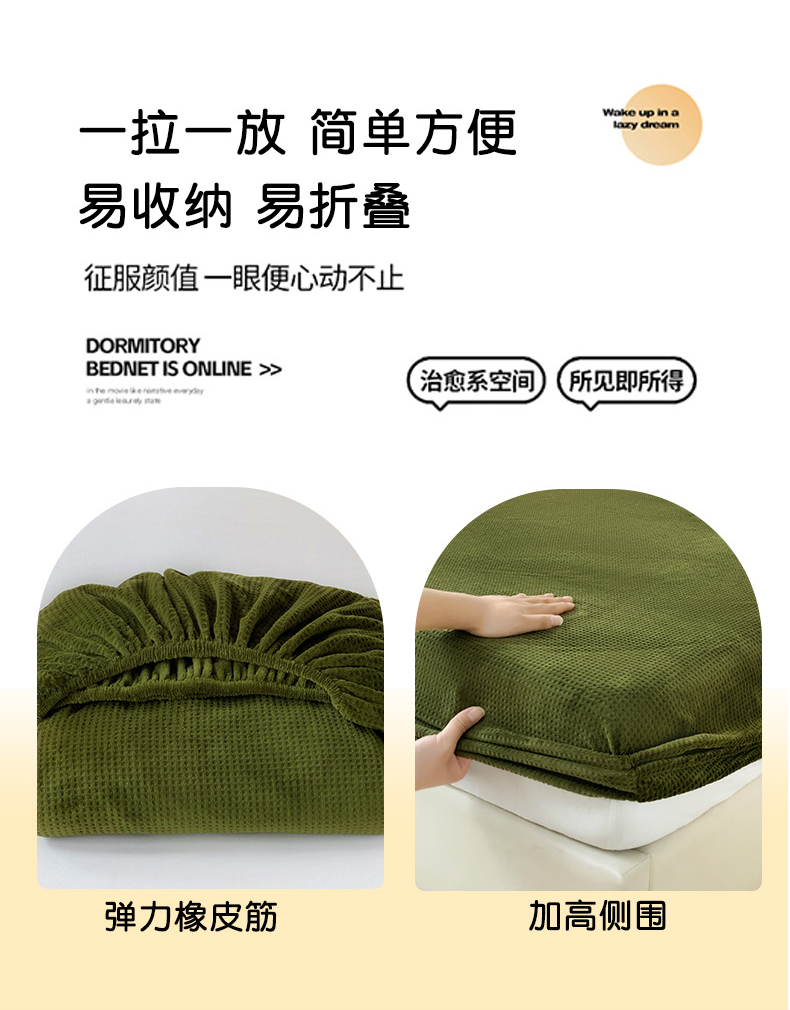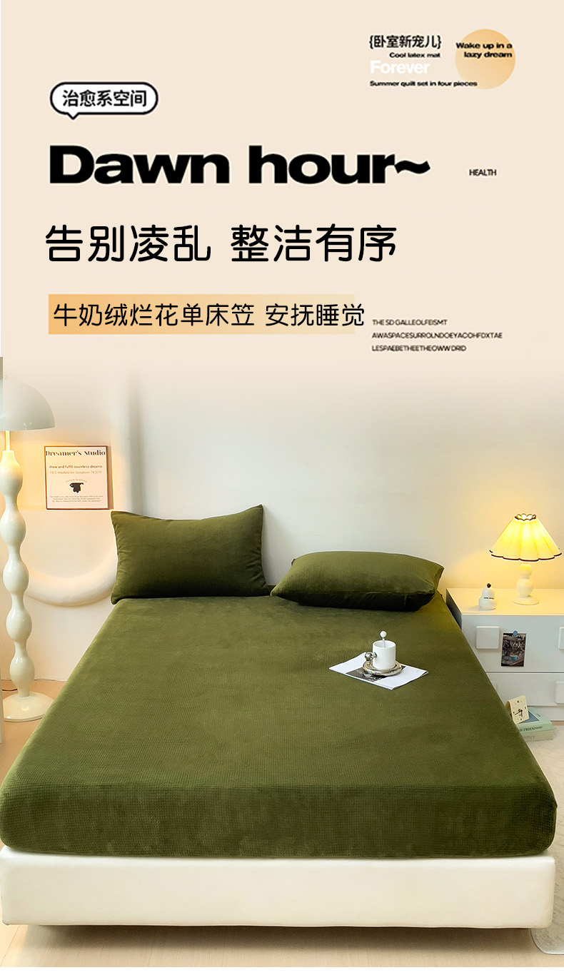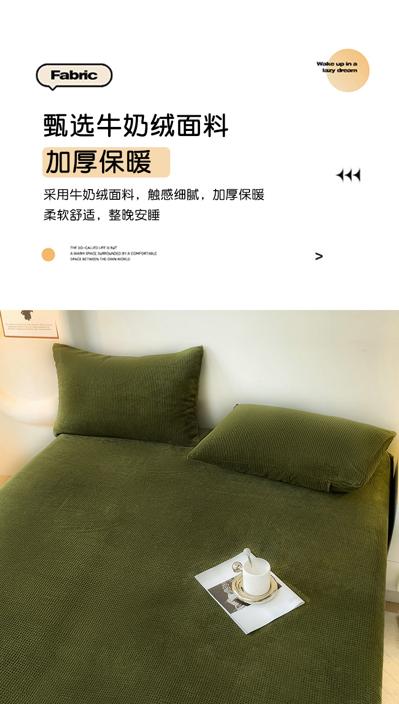 • 91家纺网 家纺一手货源 找家纺 漫时光 2025新款牛奶绒烂花床笠 华夫格-绿