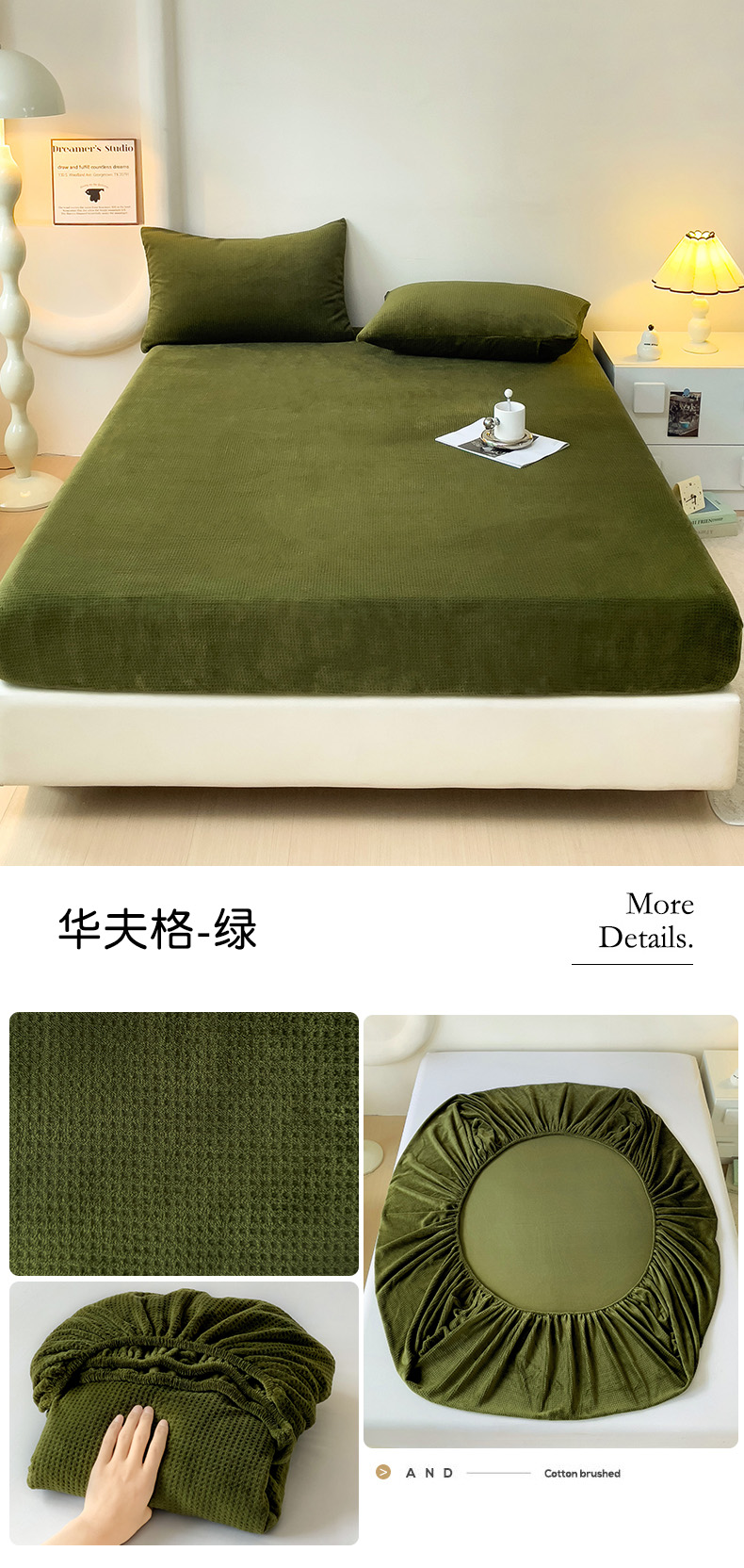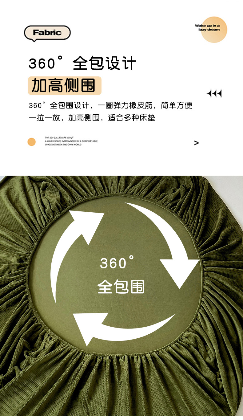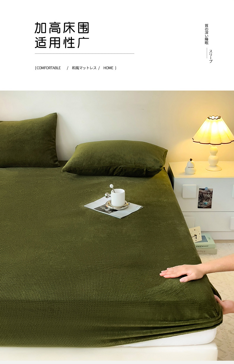 • 91家纺网 家纺一手货源 找家纺 漫时光 2025新款牛奶绒烂花床笠 华夫格-绿