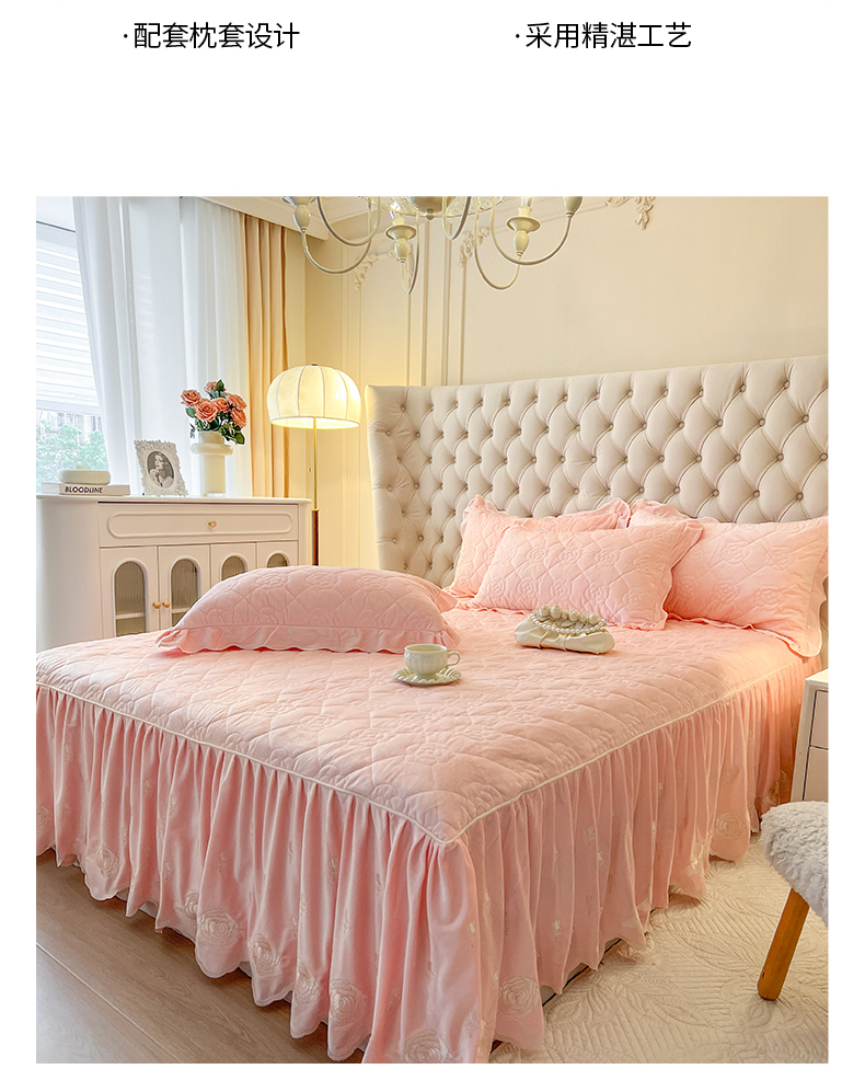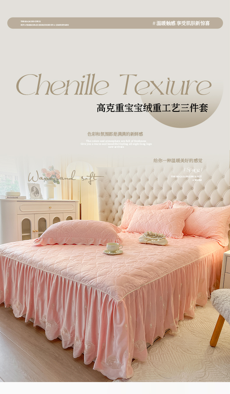 商品名称:(总)网红馆(ck家纺) 2025新款高克重加厚保暖重工艺宝宝绒晨曦玫瑰系列床裙三件套
