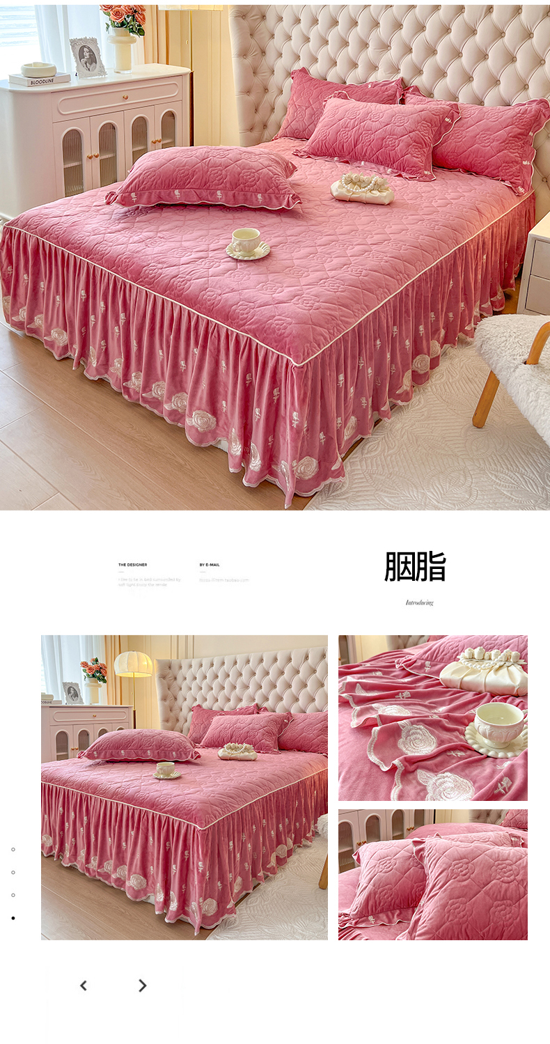 (总)网红馆(ck家纺) 2025新款高克重加厚保暖重工艺宝宝绒晨曦玫瑰系列床裙三件套