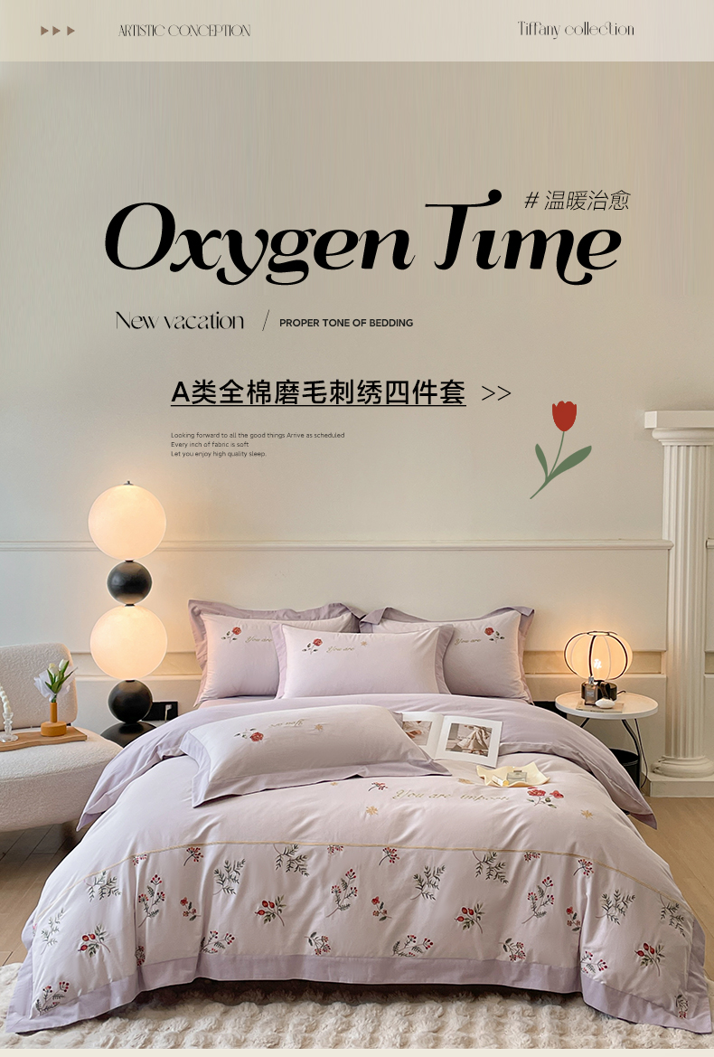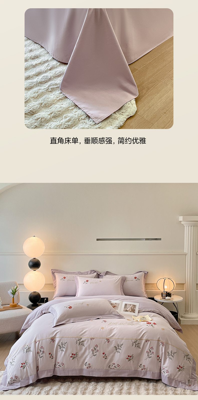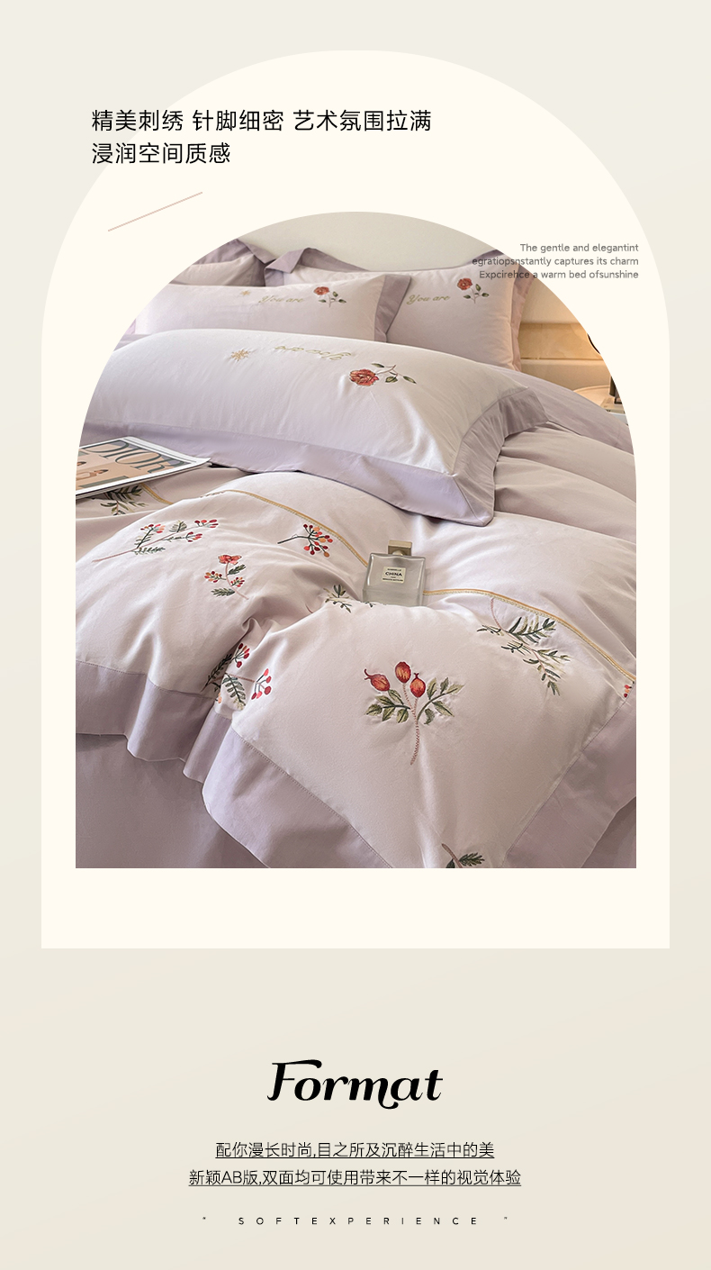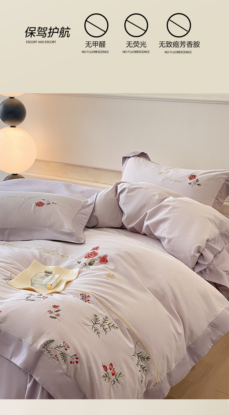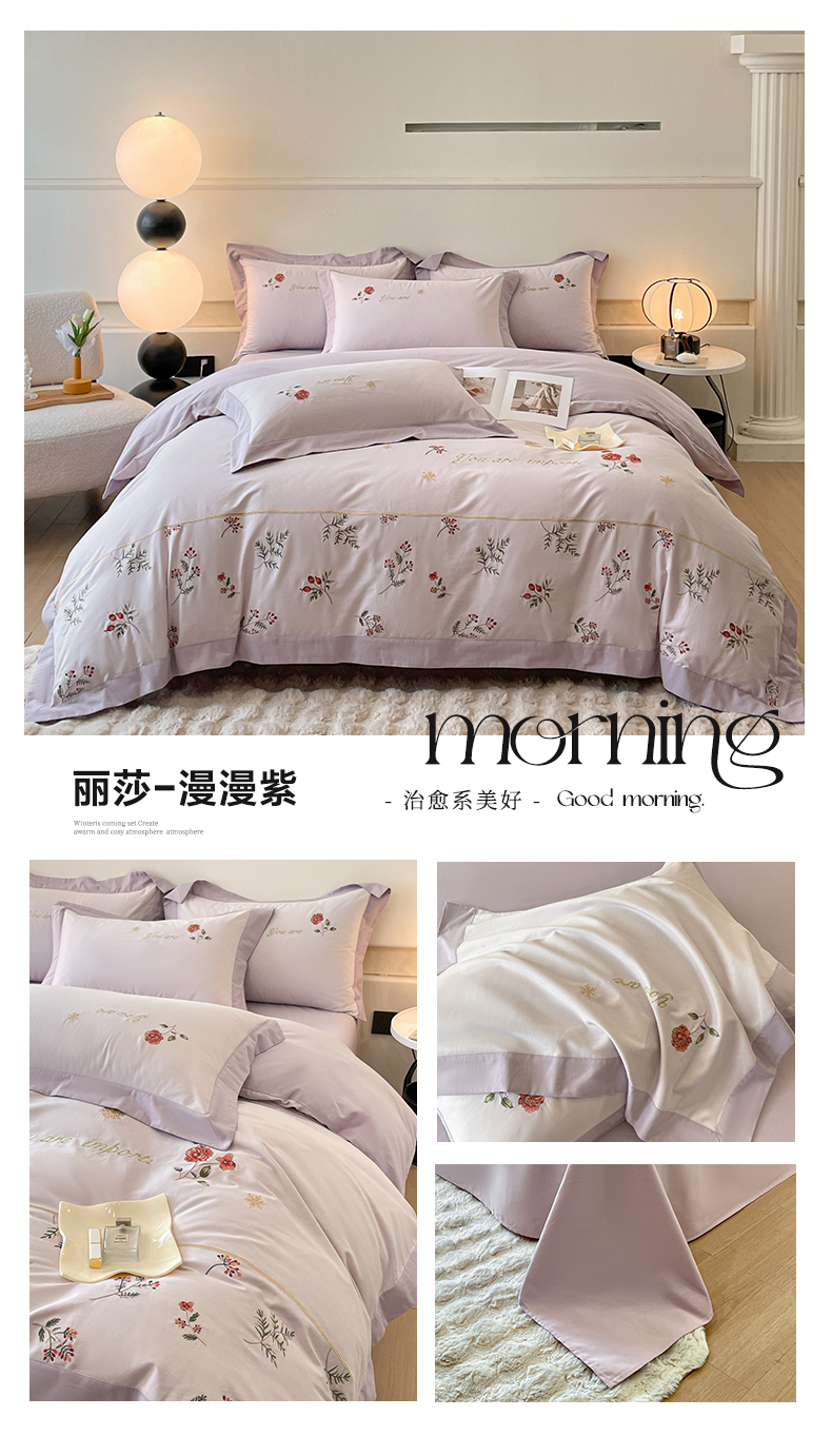 遇见家居生活馆 2024新款A类全棉磨毛刺绣四件套-丽莎 丽莎-漫漫紫