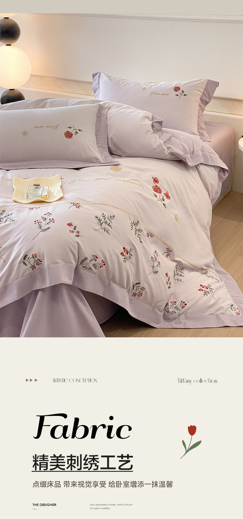 (总)遇见家居生活馆 2025新款亲肤棉刺绣四件套-花田里,花田里-白粉,花田里-冰清绿,花田里-公主粉,花田里-灰粉,花田里-香槟色,花田里-香芋紫,花田里-樱花粉