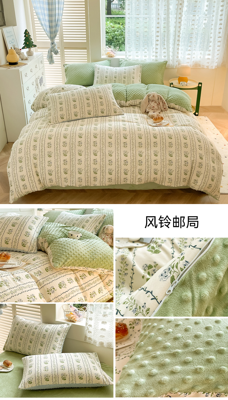 商品名称:佰亿莱 2024新款豆豆绒四件套 风铃邮局