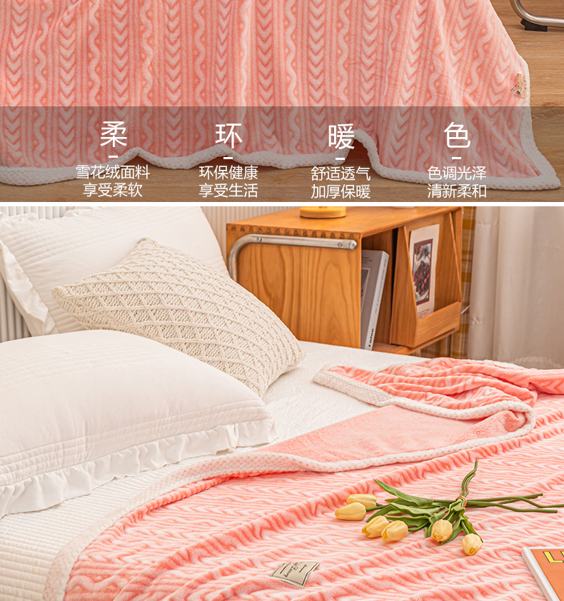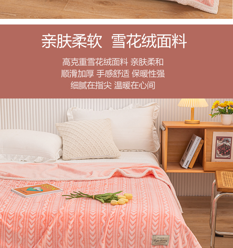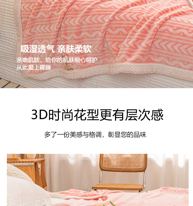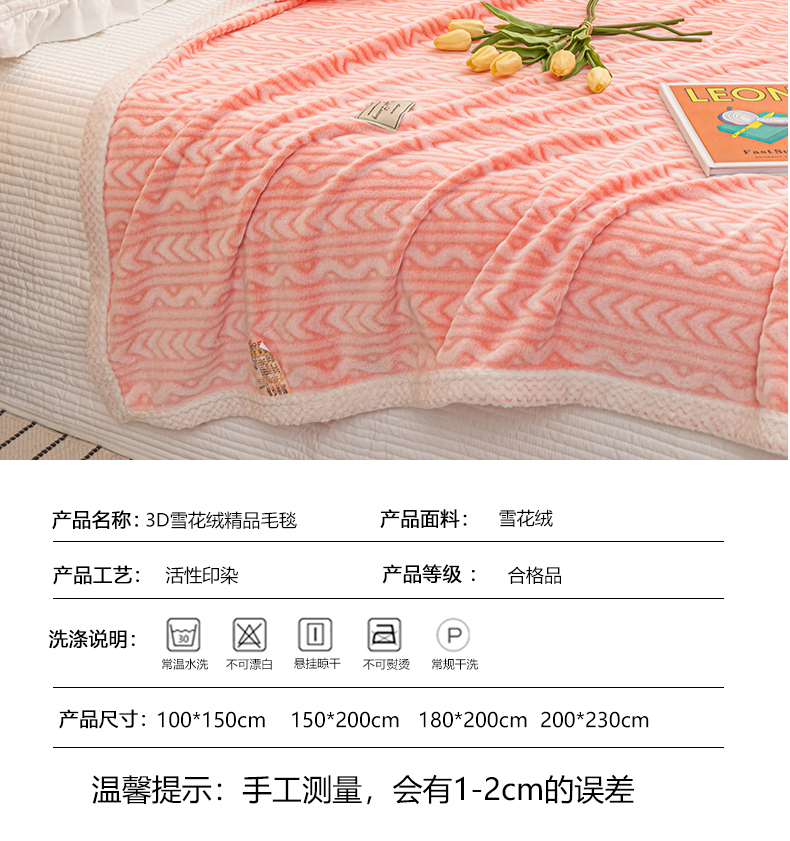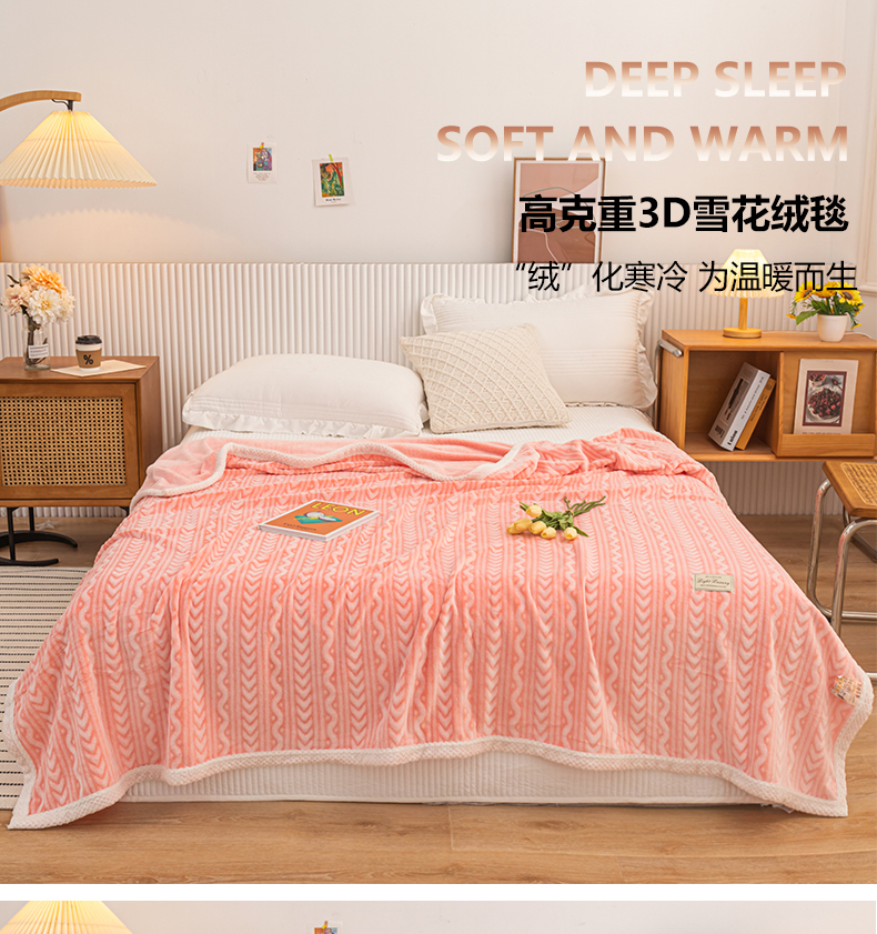 (总)佰丝居 2023新款250克亲肤舒适3D雪花绒毛毯毯子