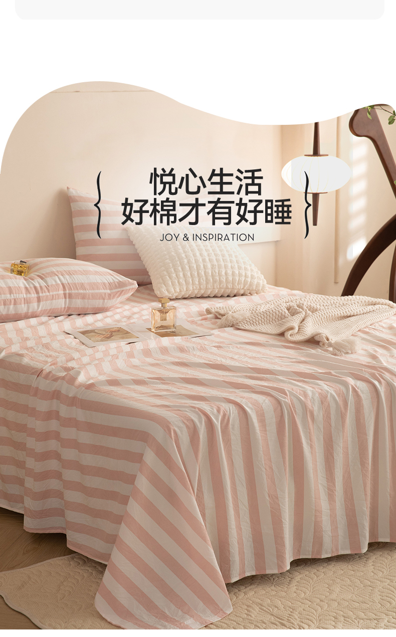 多品家纺 2024新款超柔水洗棉单床单 蜜桃粉