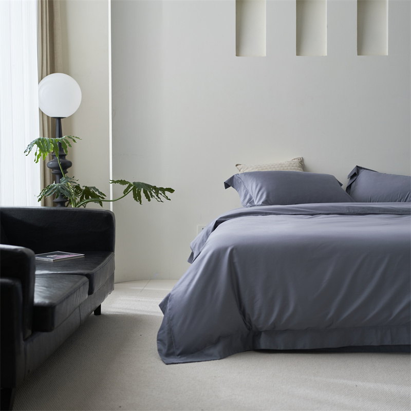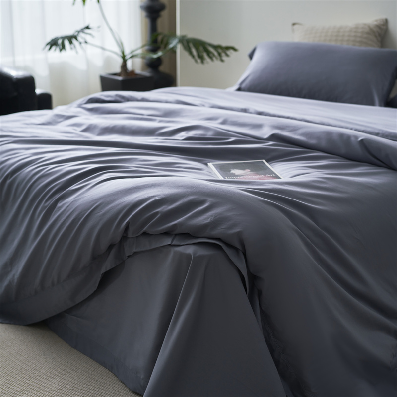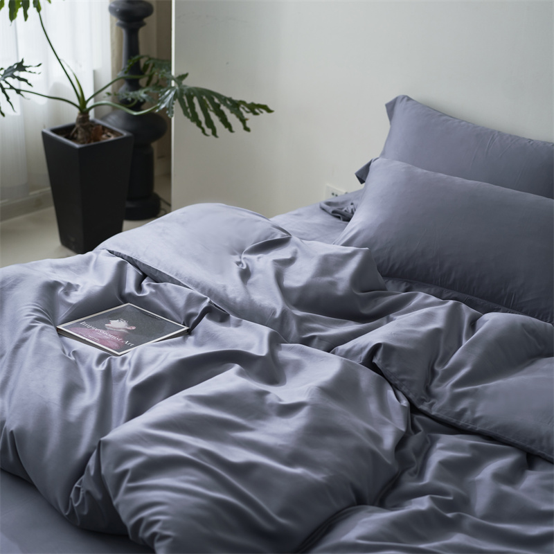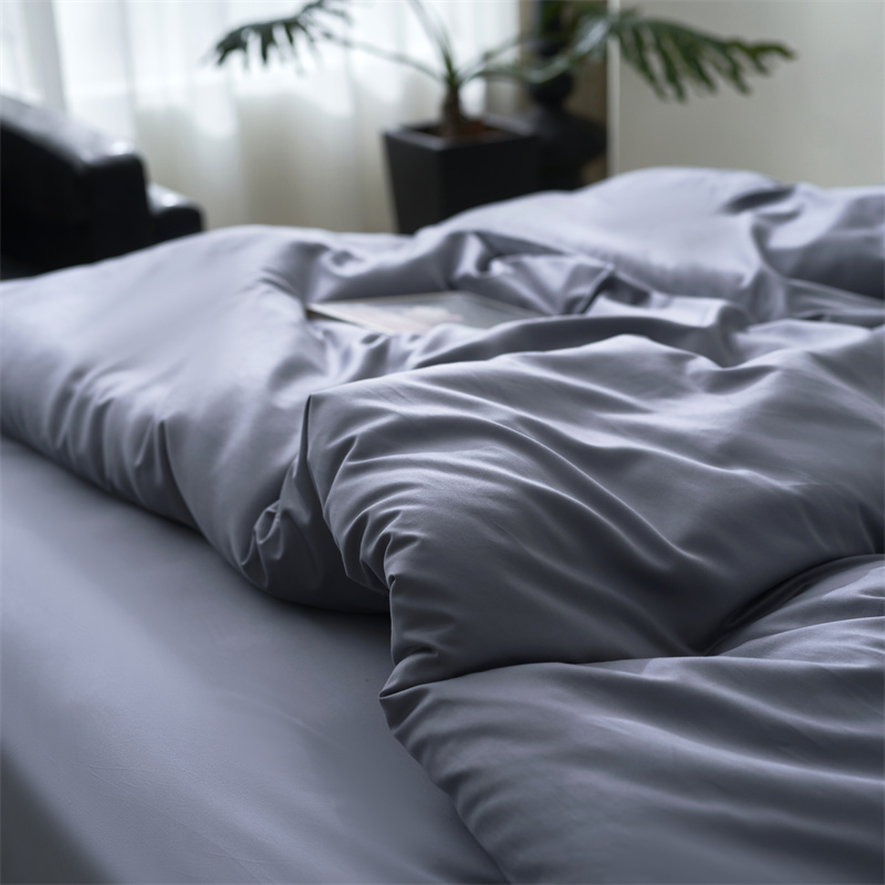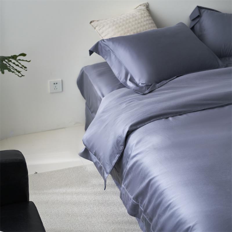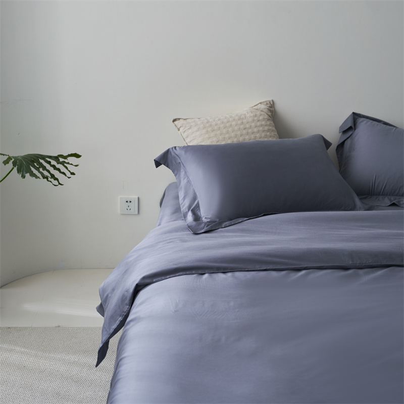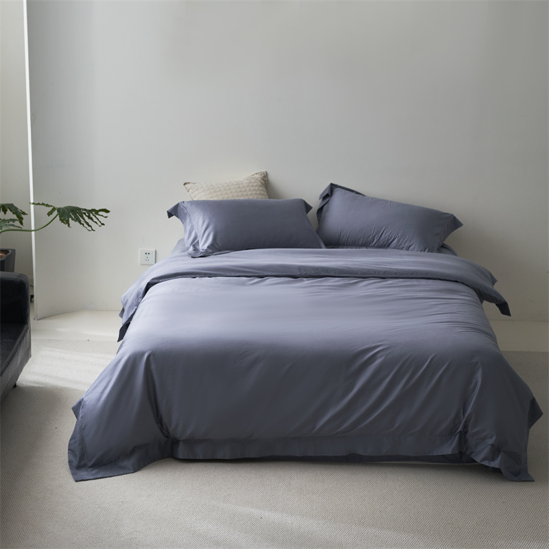 商品名称:阿那亚 2024四季款新品东帝兴绫罗缎(超细旦天丝+新疆长绒棉)轻磨毛纯色简约四件套(控价:498/518) 灰蓝
