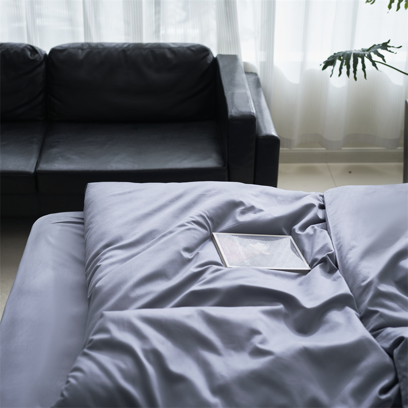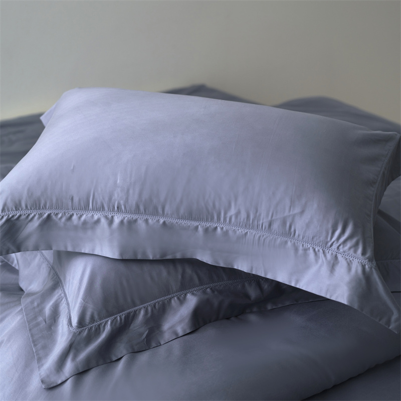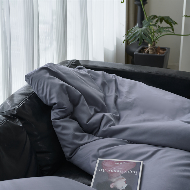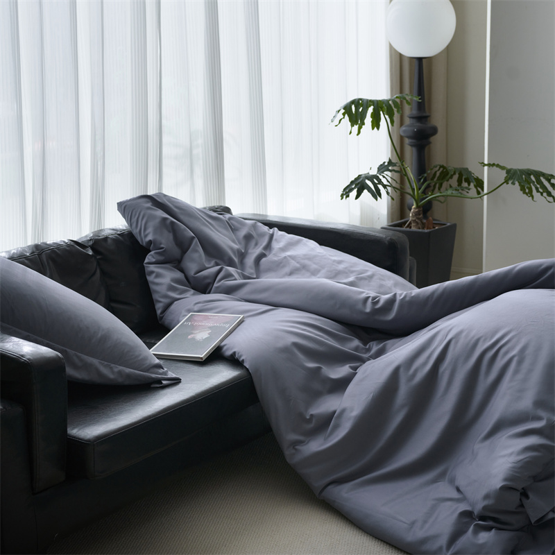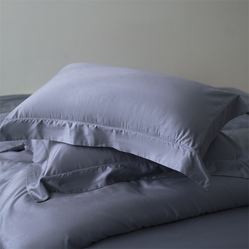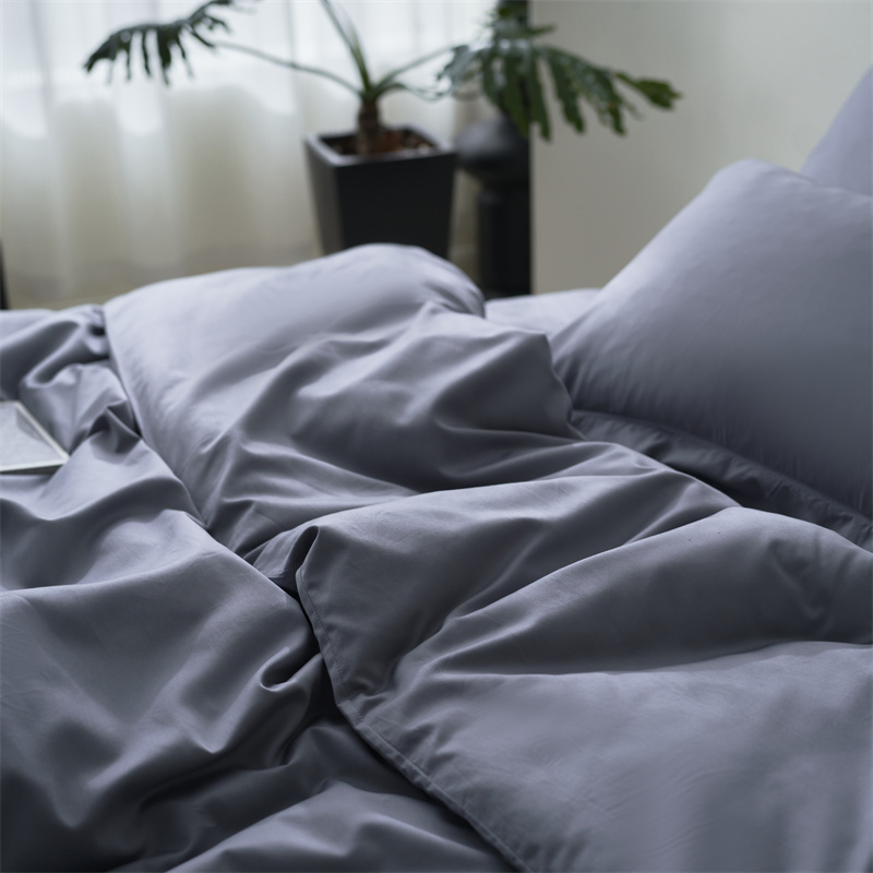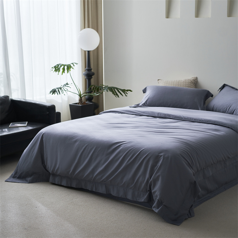 商品名称:阿那亚 2024四季款新品东帝兴绫罗缎(超细旦天丝+新疆长绒棉)轻磨毛纯色简约四件套(控价:498/518) 灰蓝