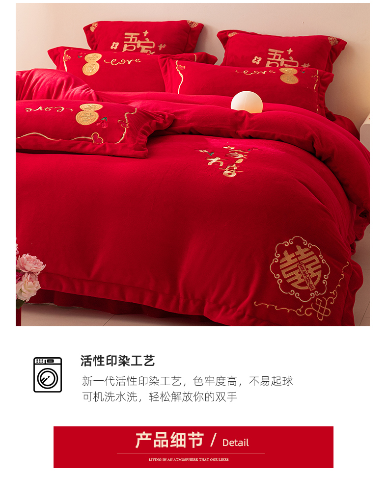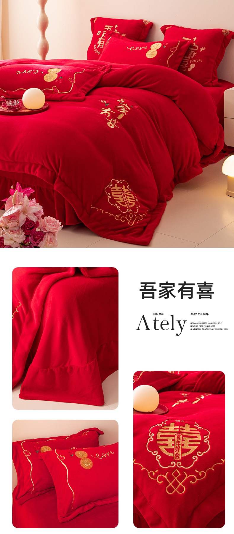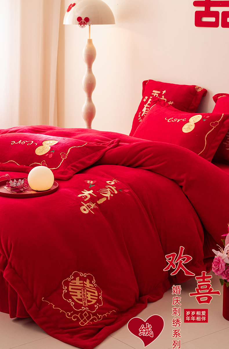 当前位置: 91家纺网 > 商品网购 > 床品套件 > 四件套 > 牛奶绒四件套 > 2025新款高克重花边贴布款牛奶绒婚庆刺绣四件套 牛奶绒婚庆-吾家有喜