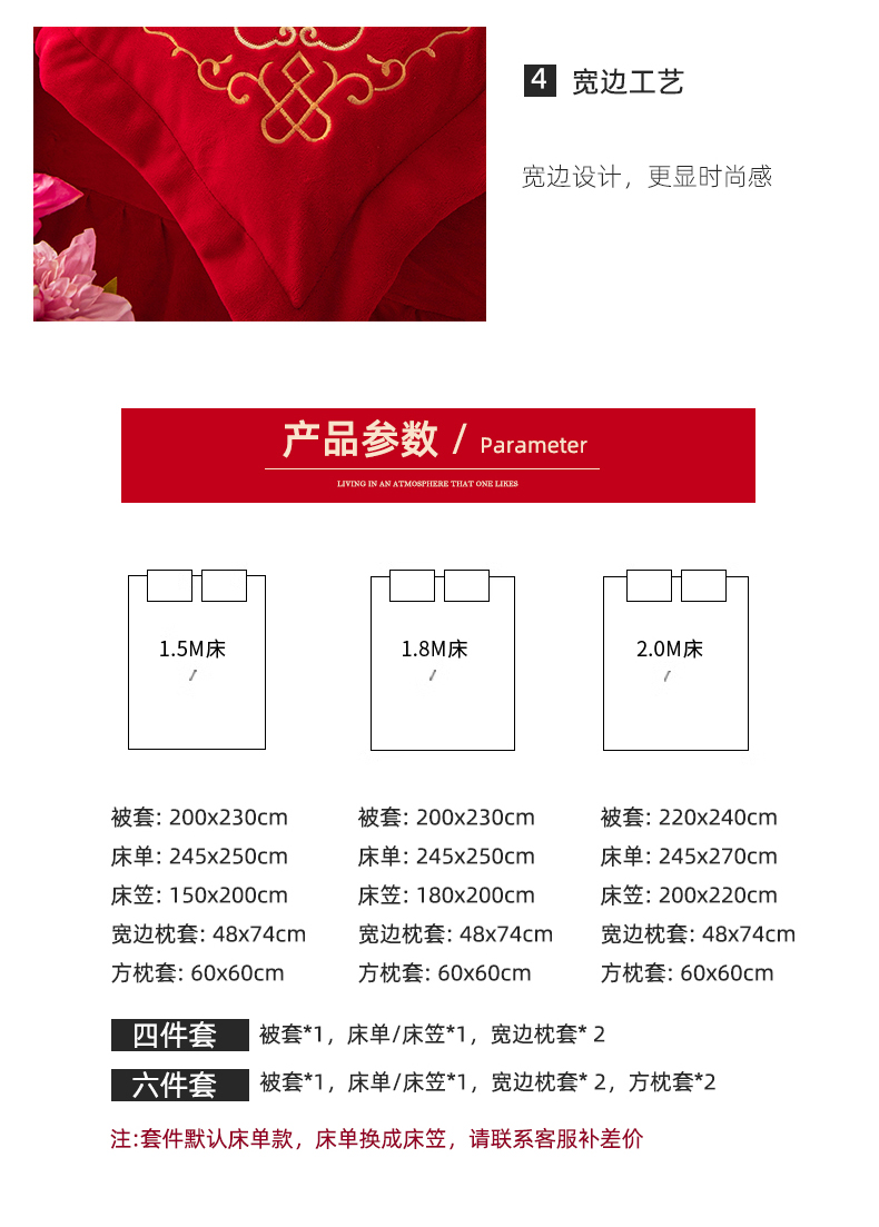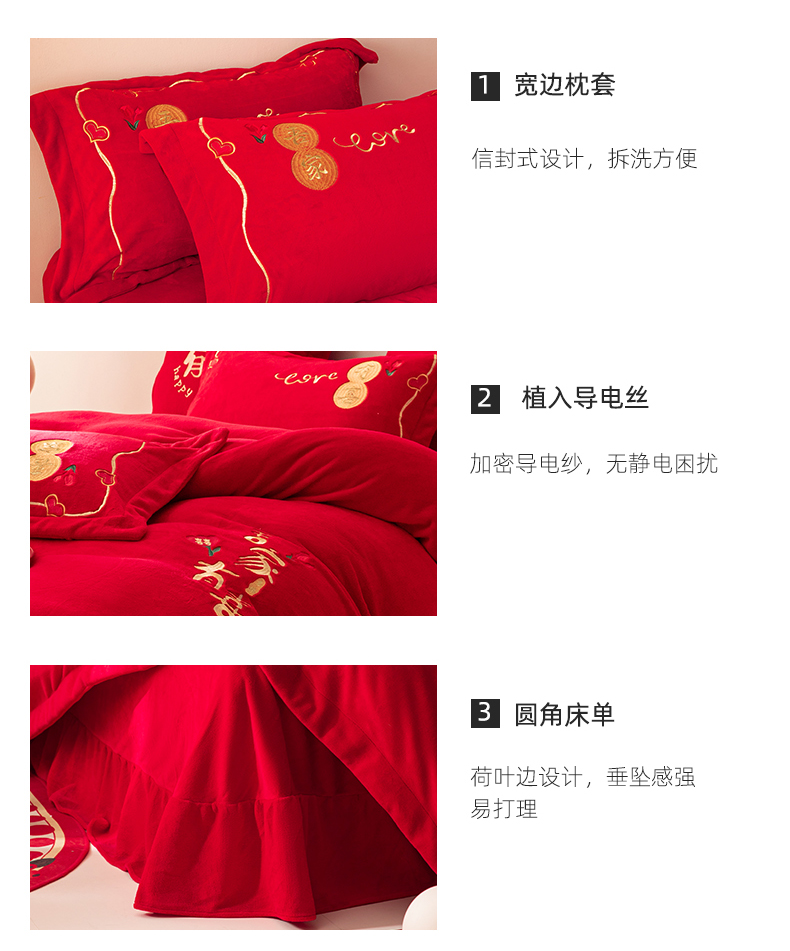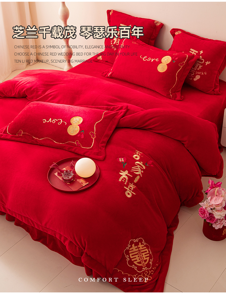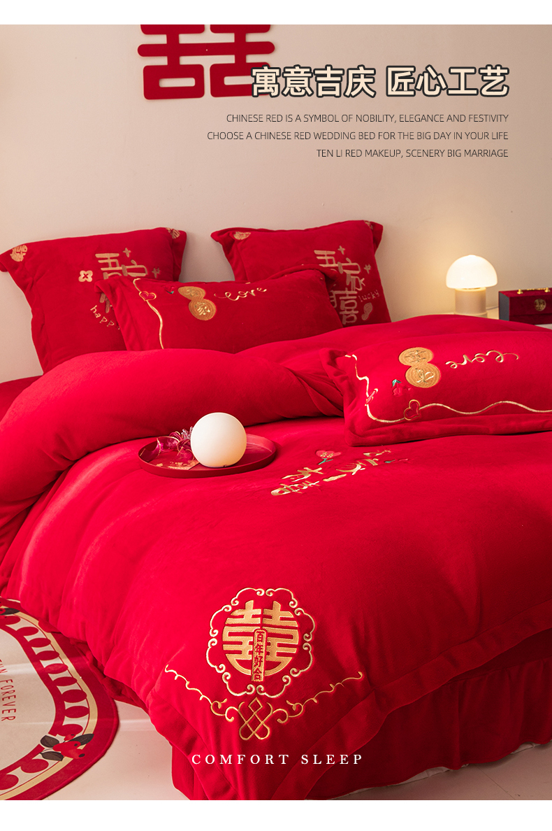 当前位置: 91家纺网 > 商品网购 > 床品套件 > 四件套 > 牛奶绒四件套 > 2025新款高克重花边贴布款牛奶绒婚庆刺绣四件套 牛奶绒婚庆-吾家有喜
