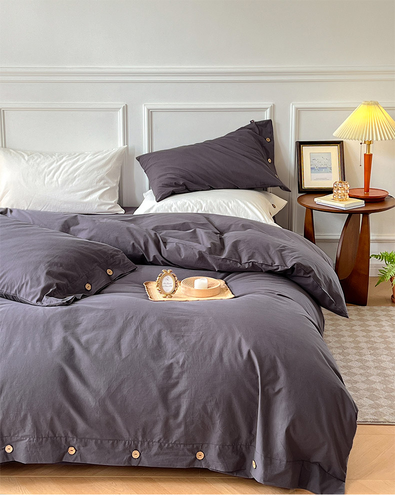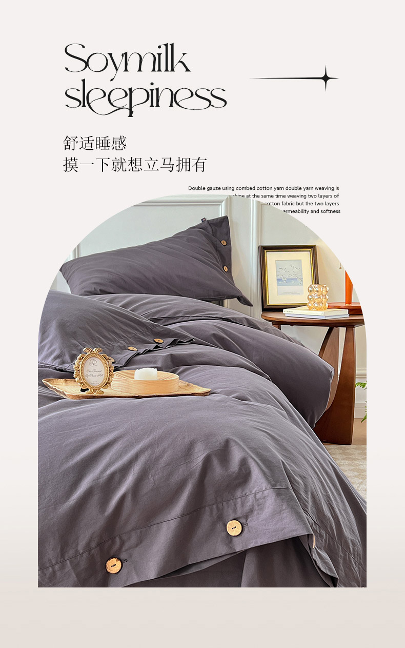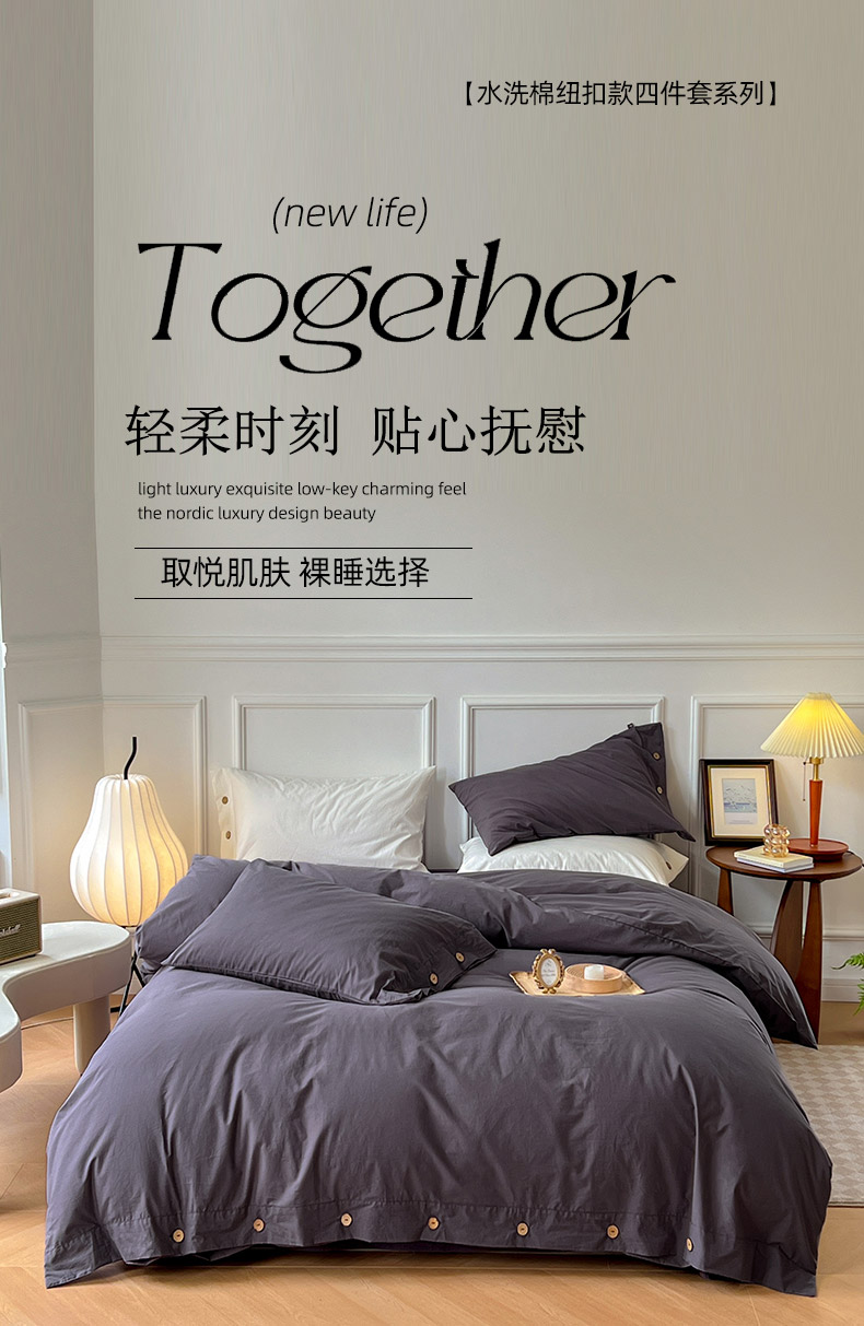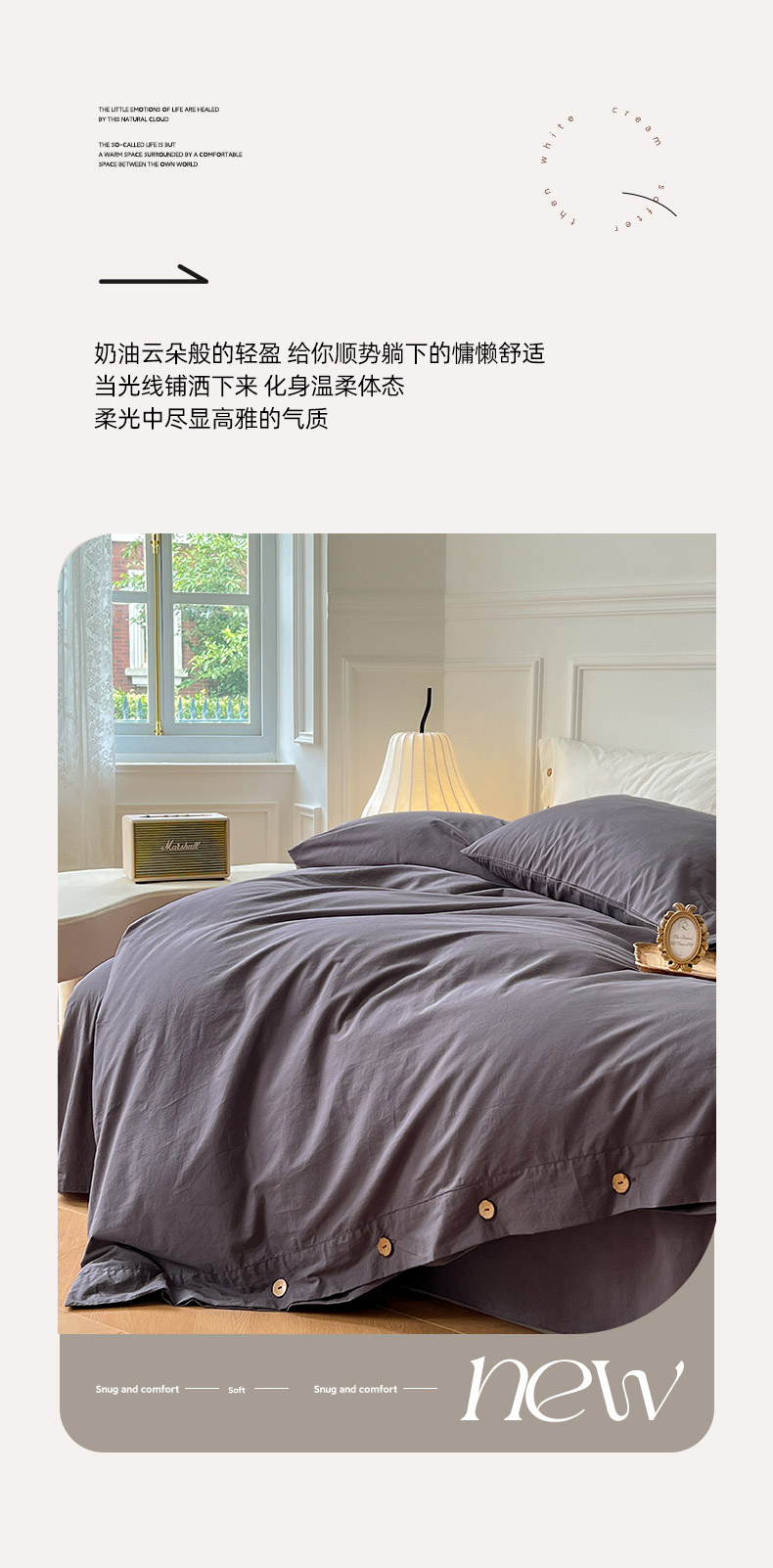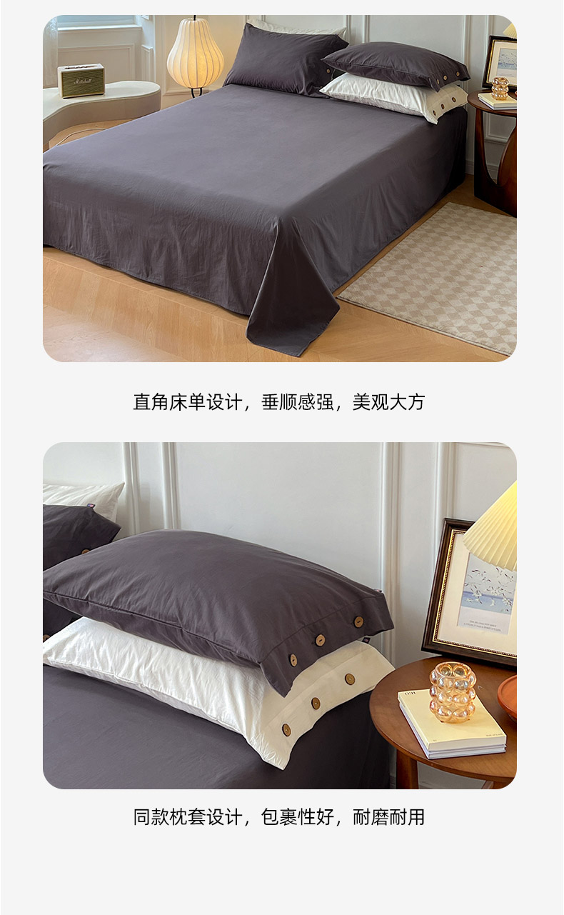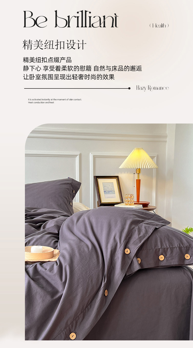 当前位置: 91家纺网 > 商品网购 > 床品套件 > 四件套 > 水洗棉四件套 > yyds网供 2024新款A类高克重复古纽扣款四件套非全棉纯棉无印风日式水洗棉三件套民宿 银幽灰-纯色纽扣款