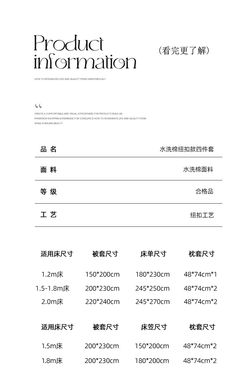 1.8m床笠款四件套 (被套2.0x2.3m) | ¥85.00 |