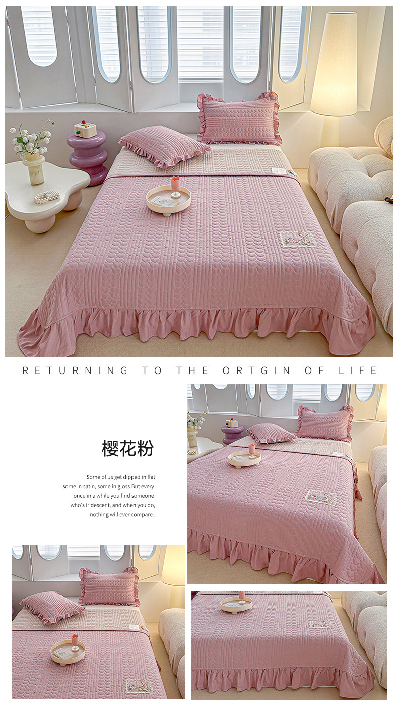 商品名称:源舜家纺 2025新款云感皱皱纱韩版纯色床盖三件套 樱花粉