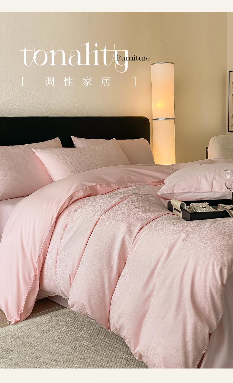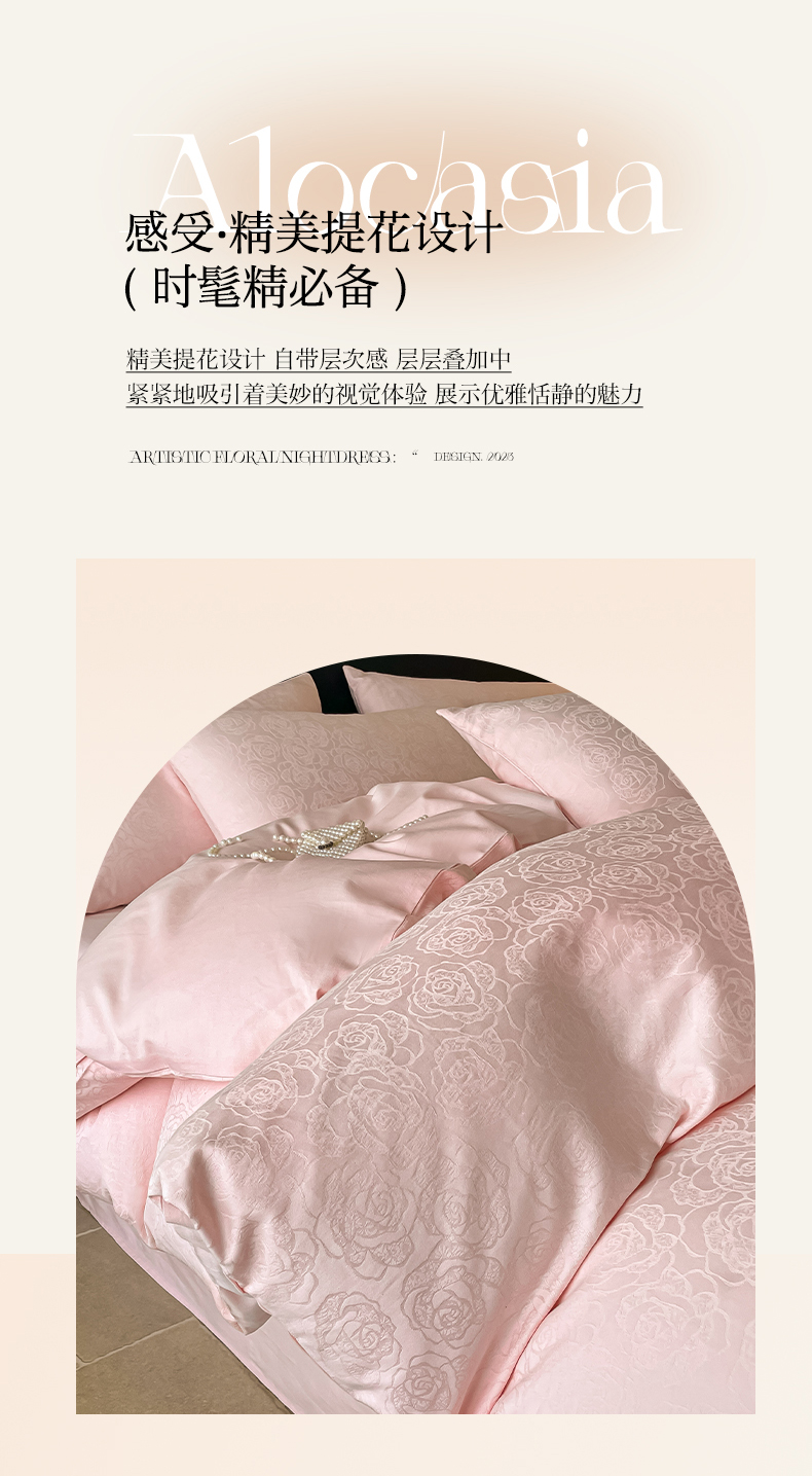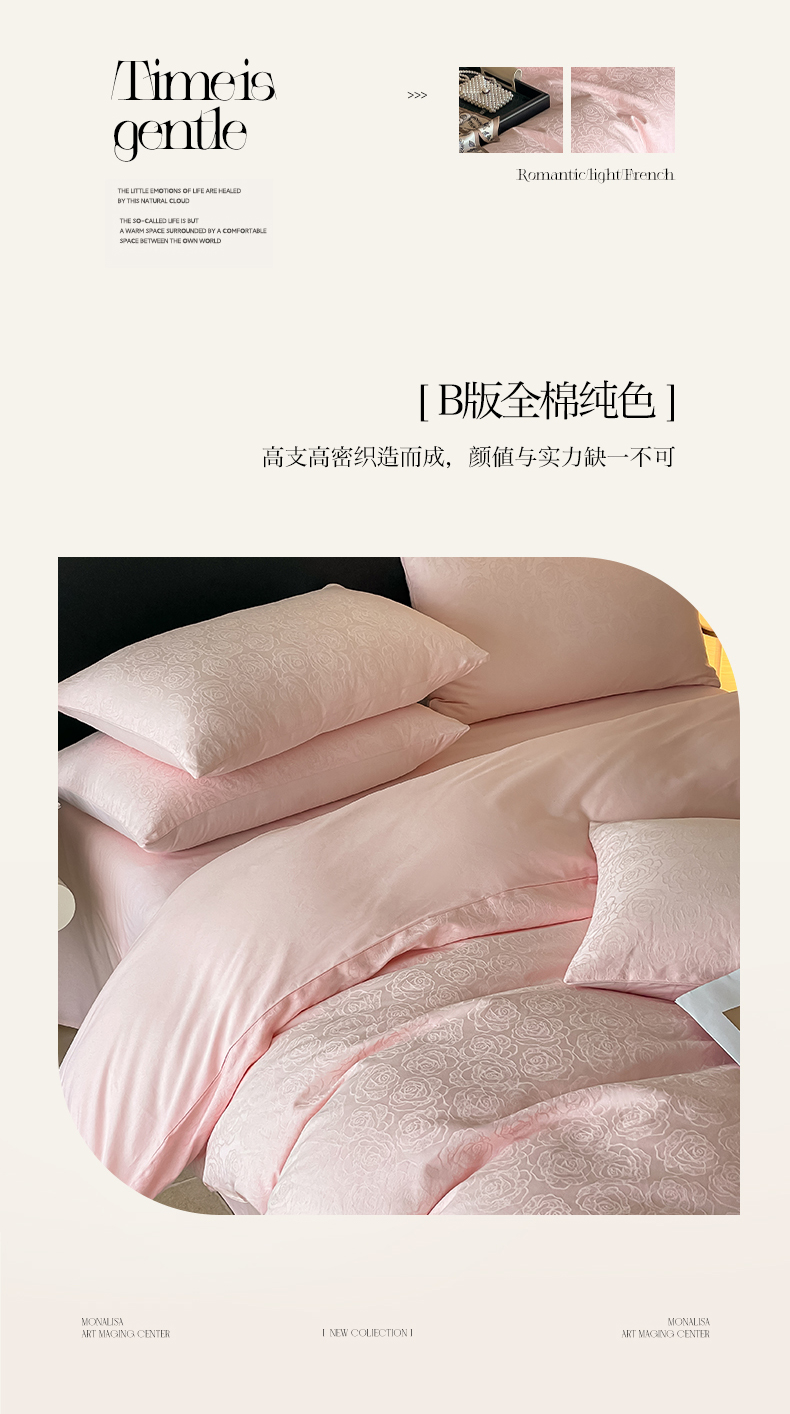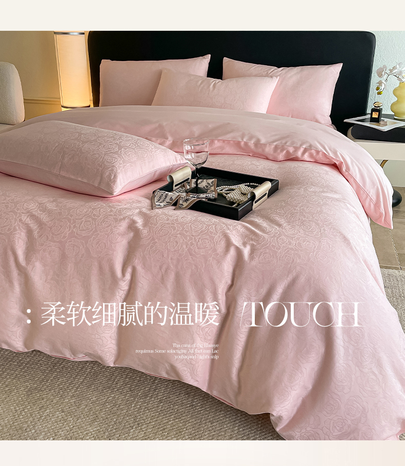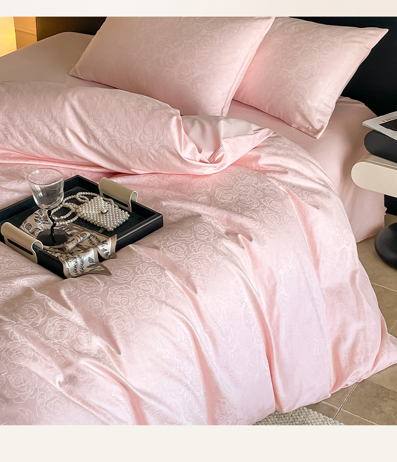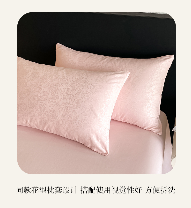 三朵家纺 2024新款全棉贡缎大提花四件套系列 玫瑰园粉