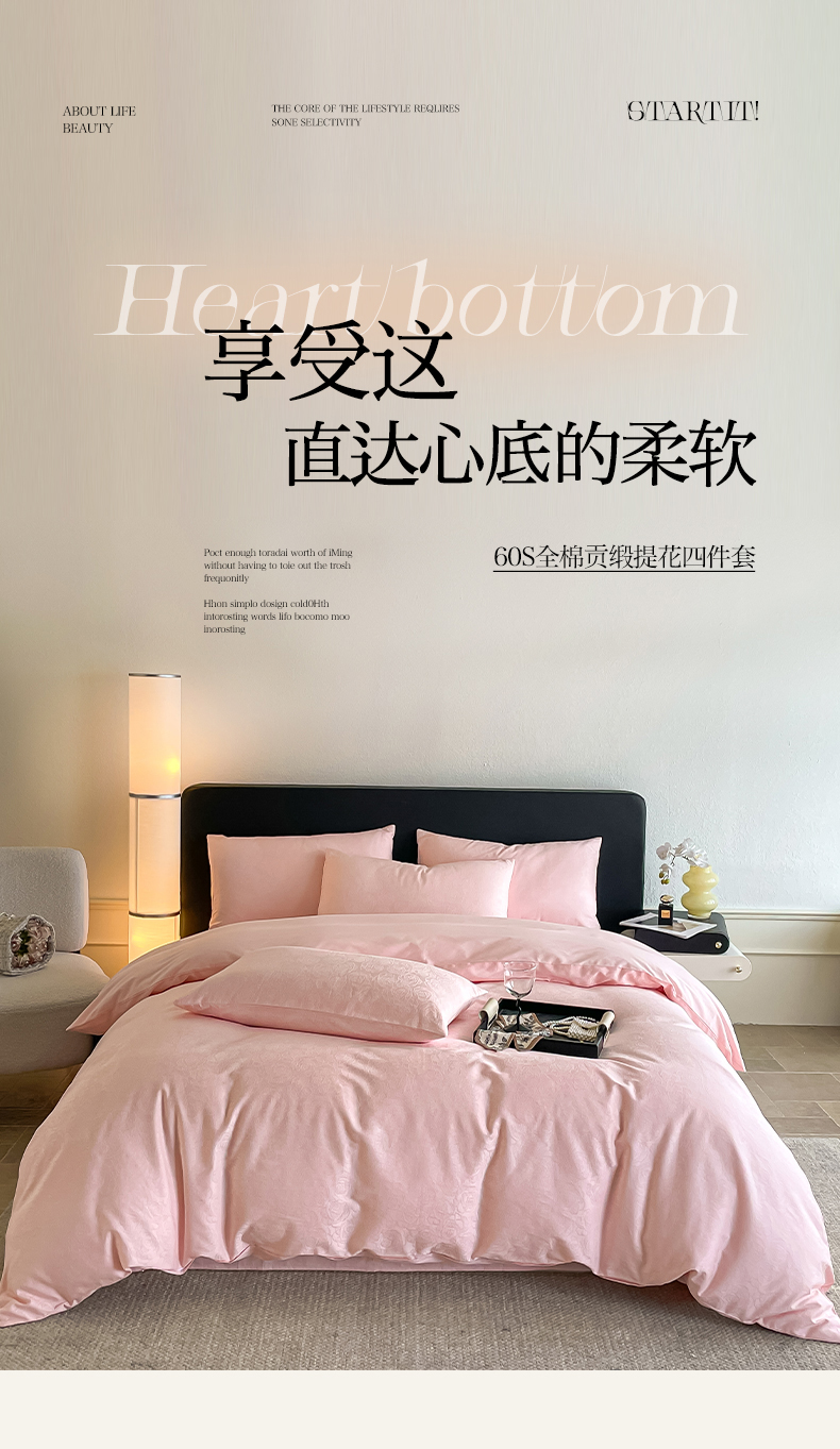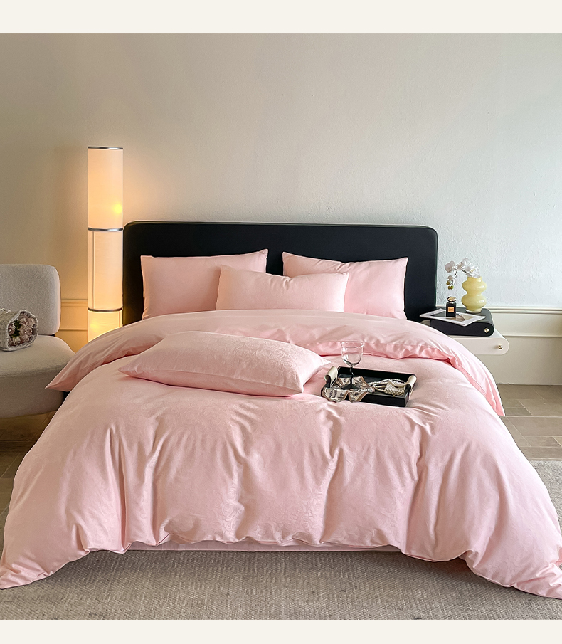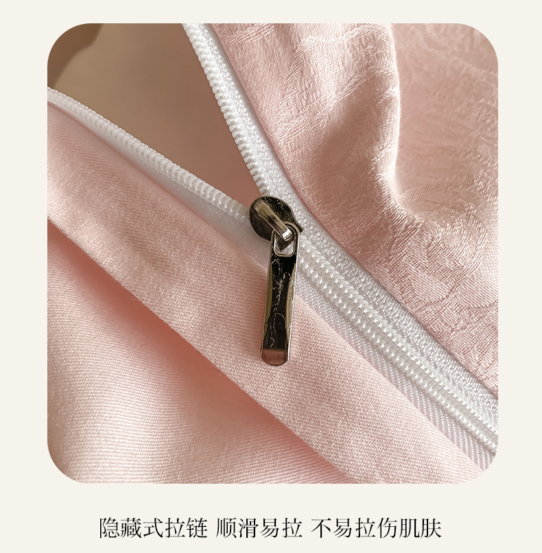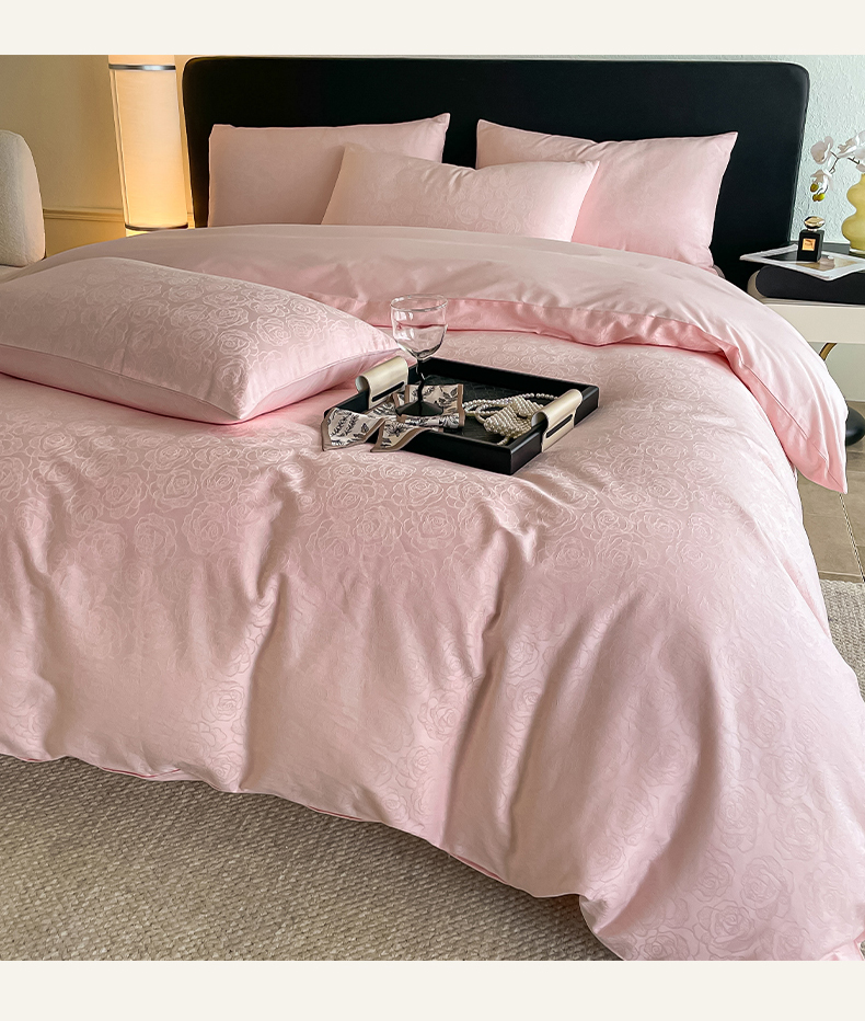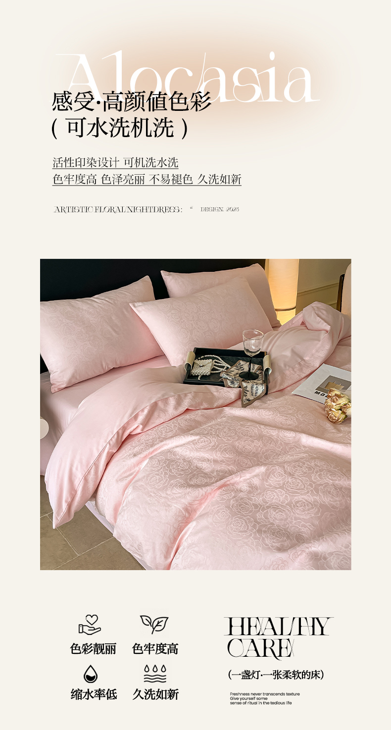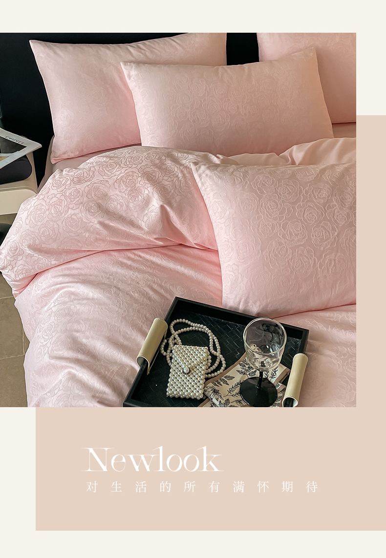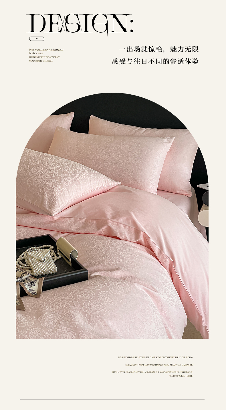 三朵家纺 2024新款全棉贡缎大提花四件套系列 玫瑰园粉