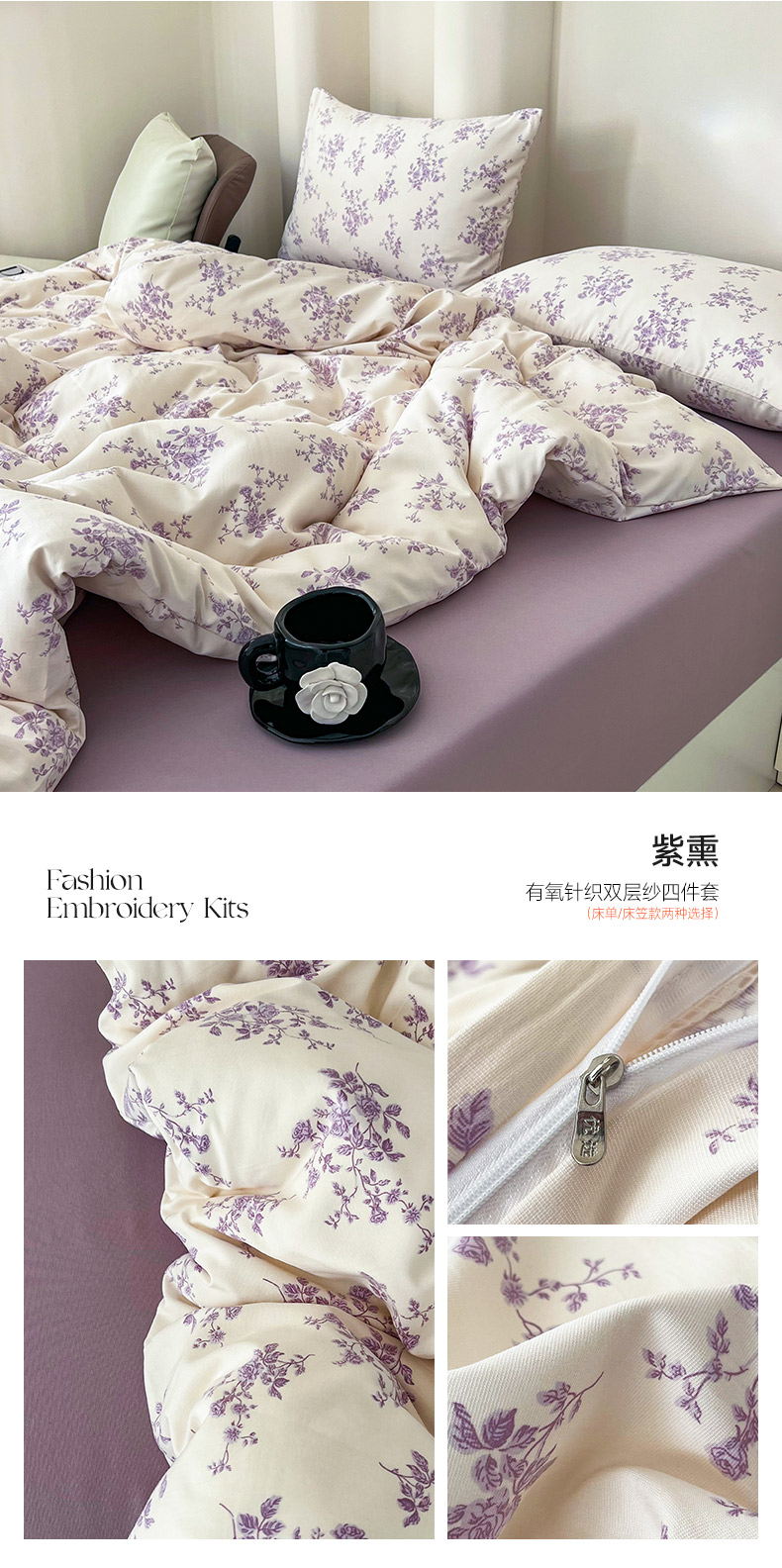 当前位置: 91家纺网 > 商品网购 > 床品套件 > 四件套 > 其它四件套 > 优选良品 2025新款加厚针织棉双层纱四件套小碎花被套床单床笠款学生三件套新款直播热款-床图-系列二 紫熏
