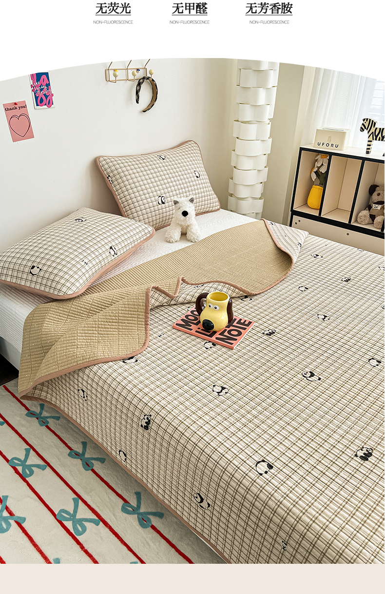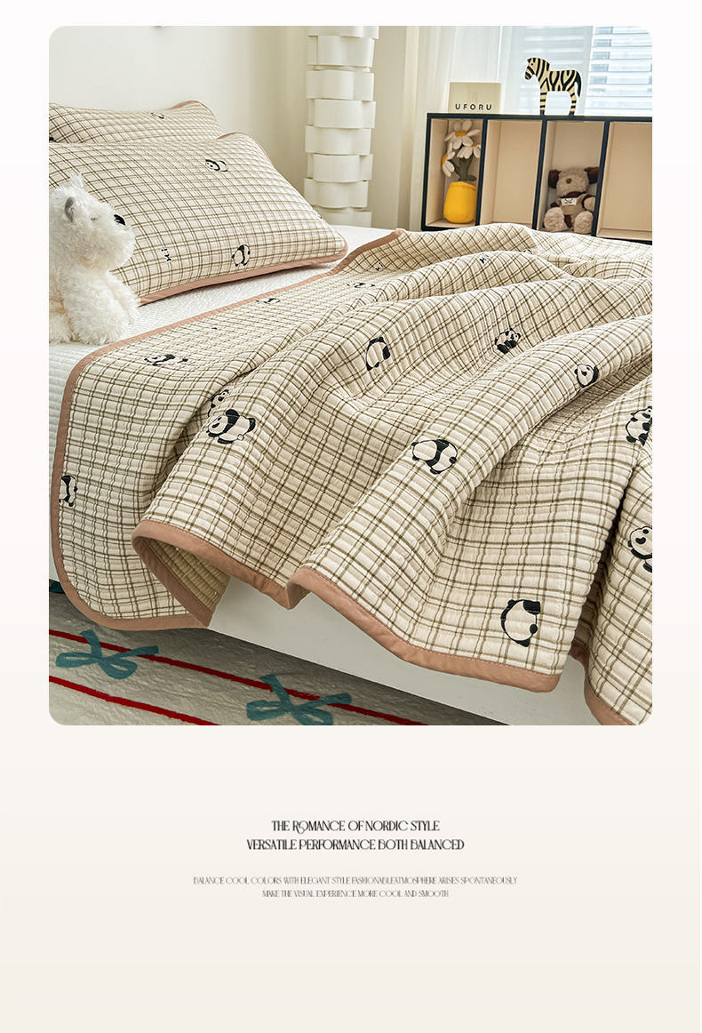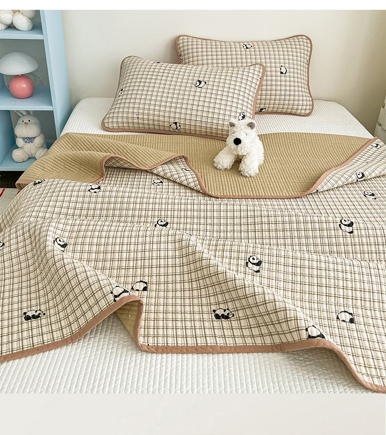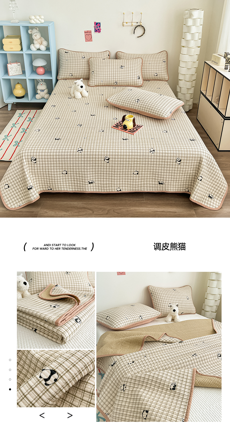 茉夕家纺 2025新款跑量款双面纯棉印花水洗床盖 调皮熊猫