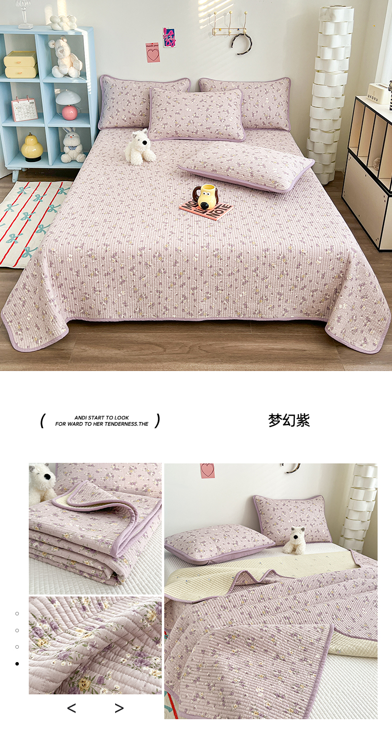茉夕家纺 2025新款跑量款双面纯棉印花水洗床盖 梦幻紫