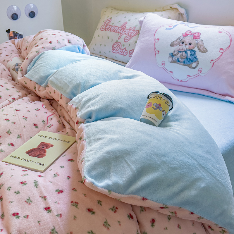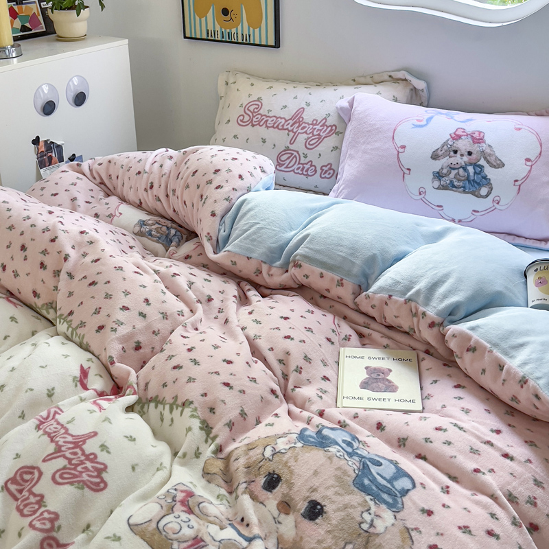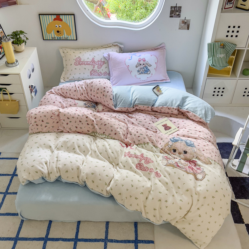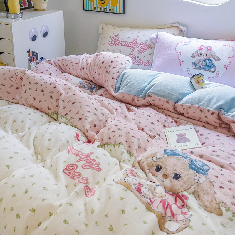当前位置: 91家纺网 > 商品网购 > 床品套件 > 四件套 > 牛奶绒四件套 > (买家秀 爆款不断货)A类母婴级双面牛奶绒珊瑚绒雪花绒四件套AB版高克重卡通牛奶绒四件套花卉-场景2 抱抱兔