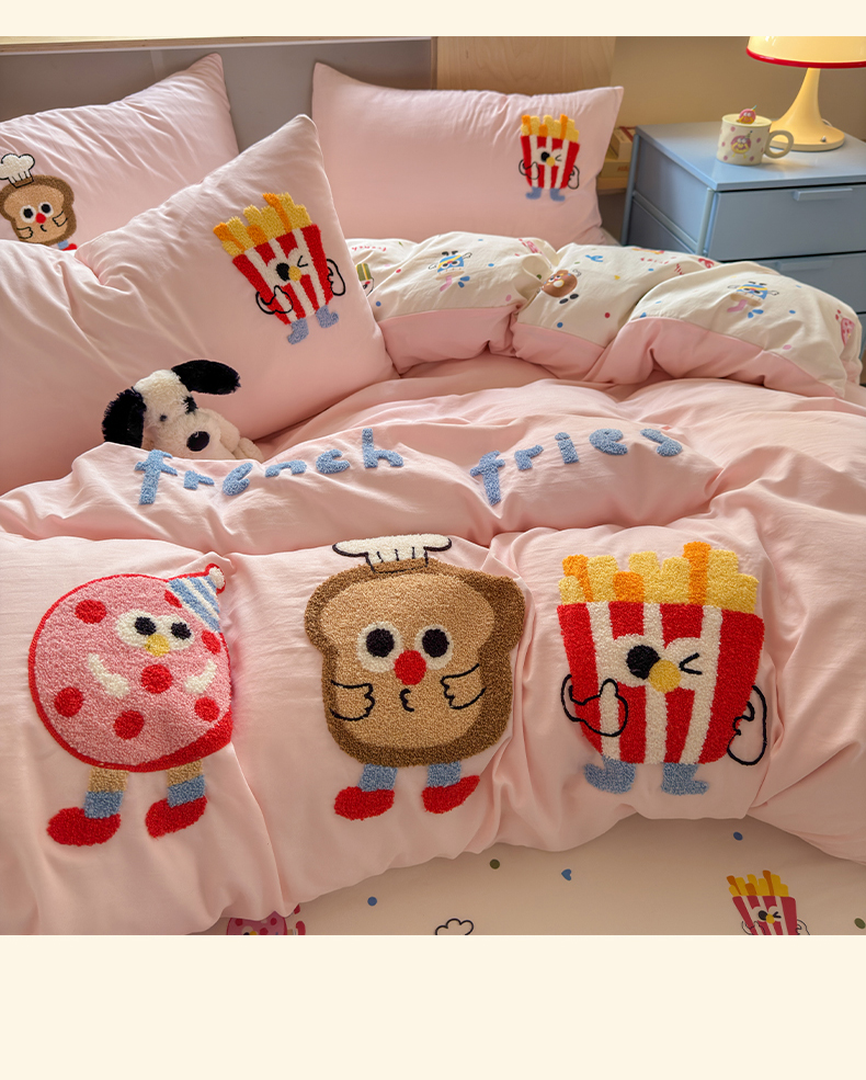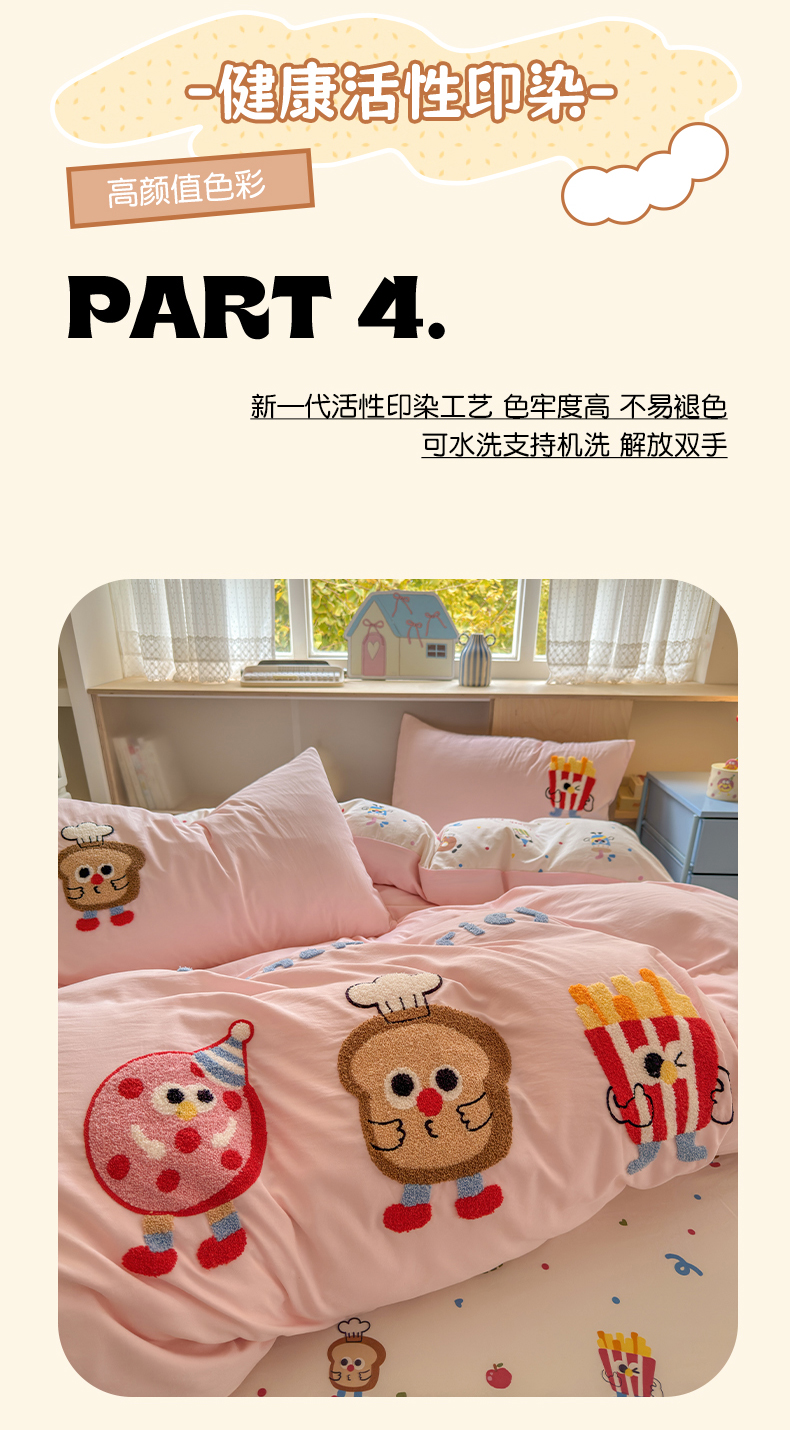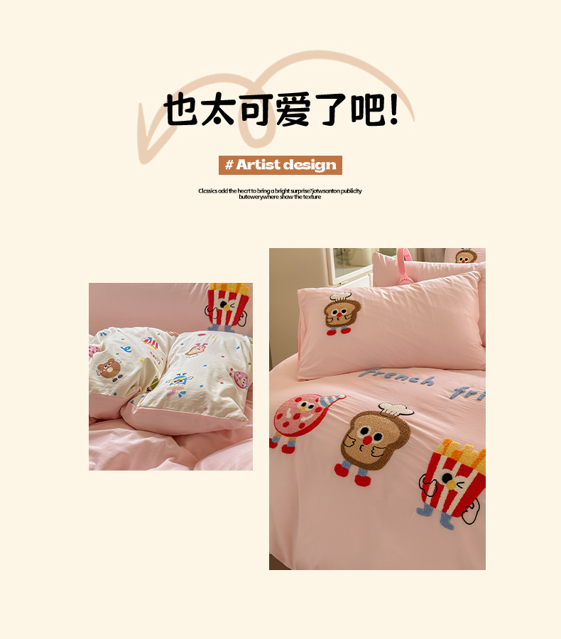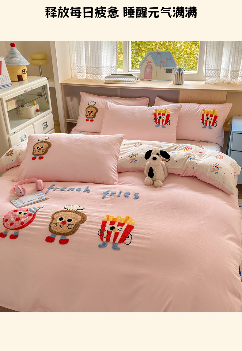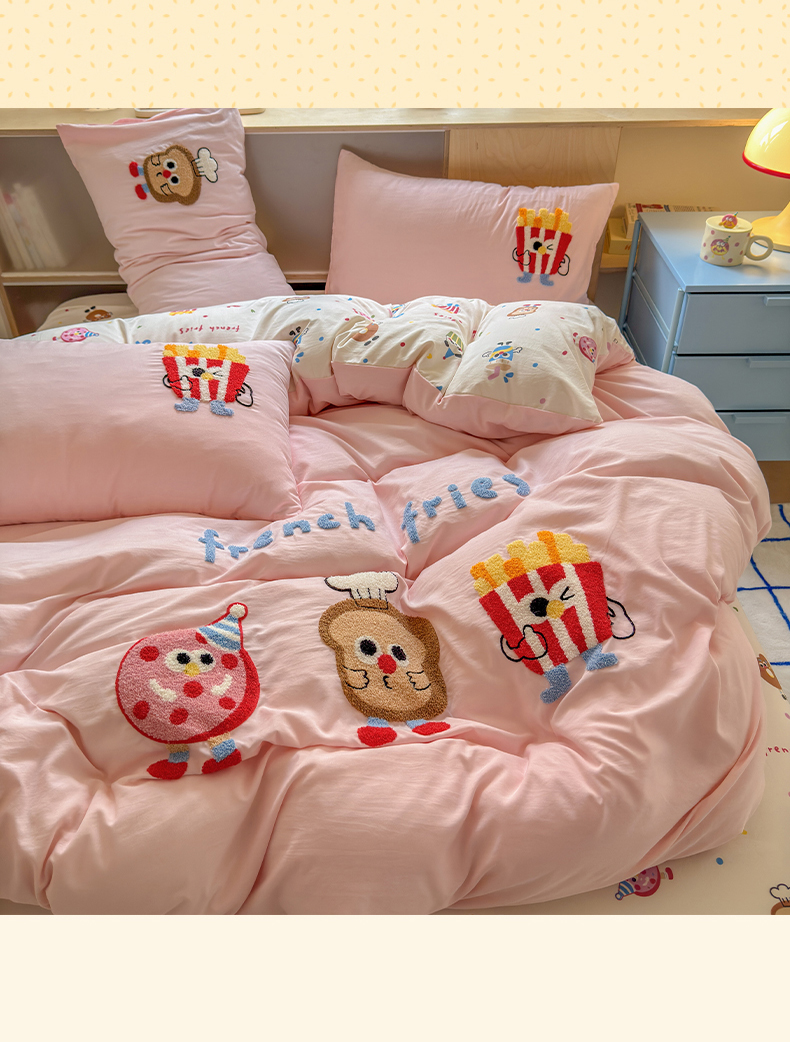 当前位置: 91家纺网 > 商品网购 > 床品套件 > 四件套 > 其它四件套 > 罗亿家纺 2025新款糯糯棉(110克)大版卡通毛巾绣四件套(提供买家绣) 多巴胺甜甜圈