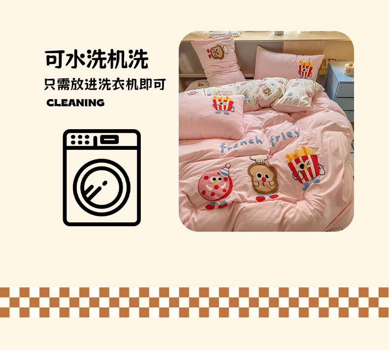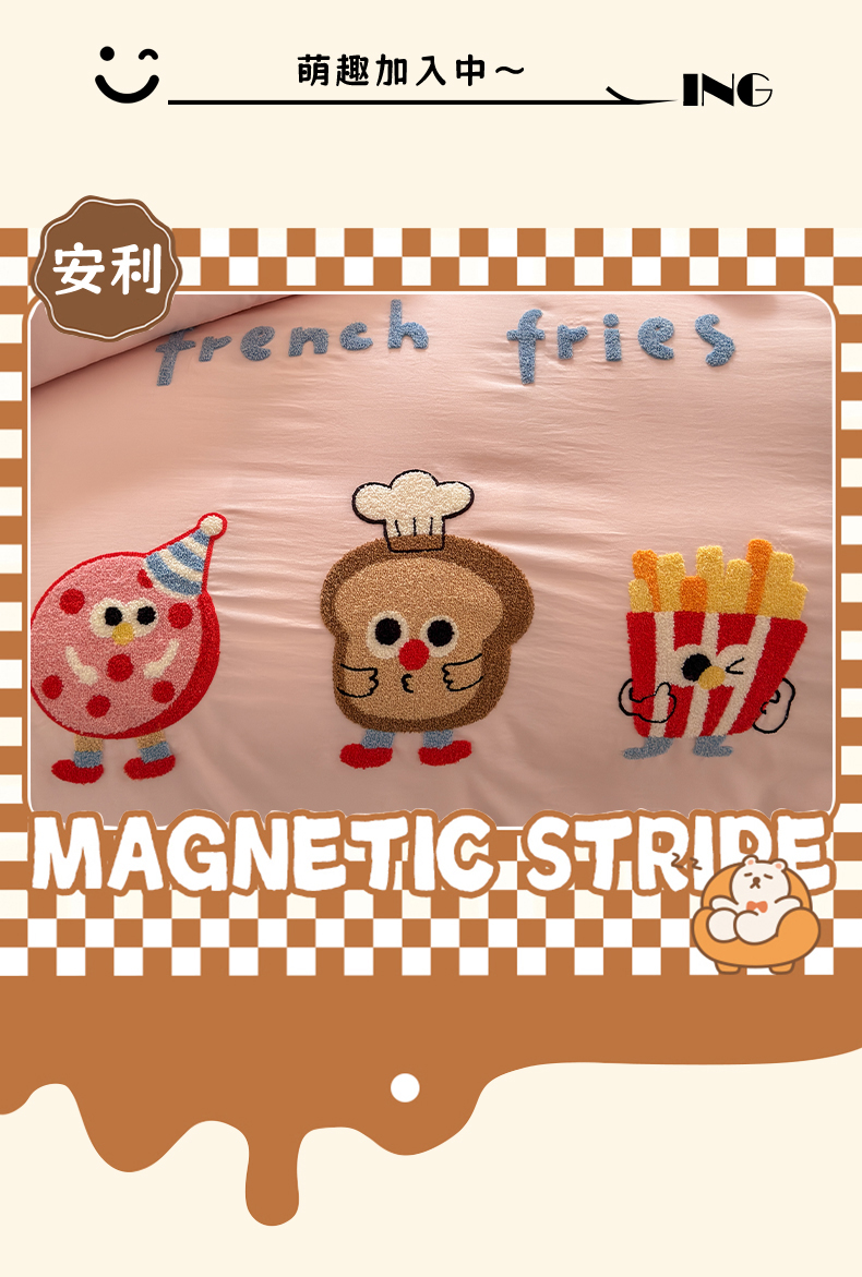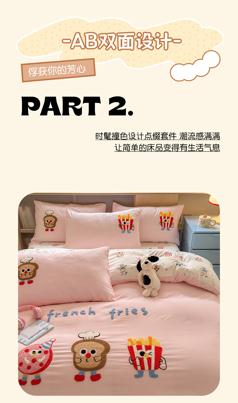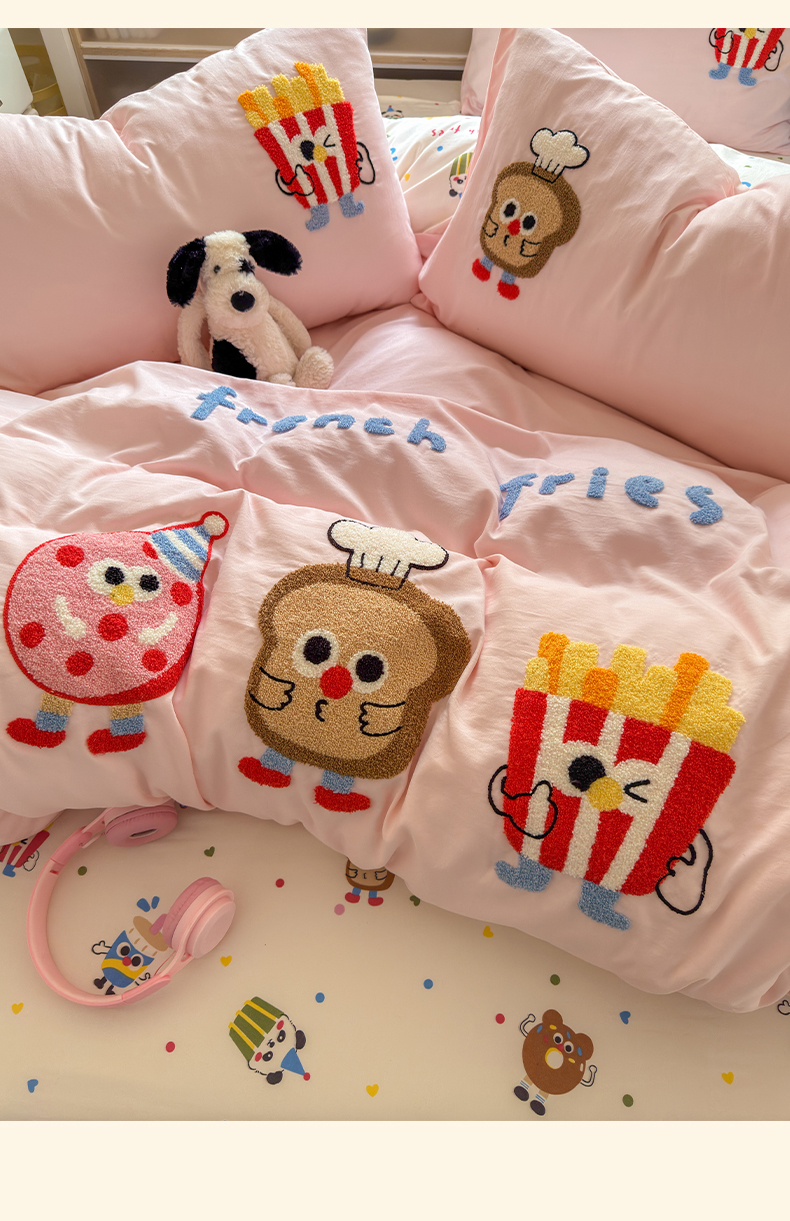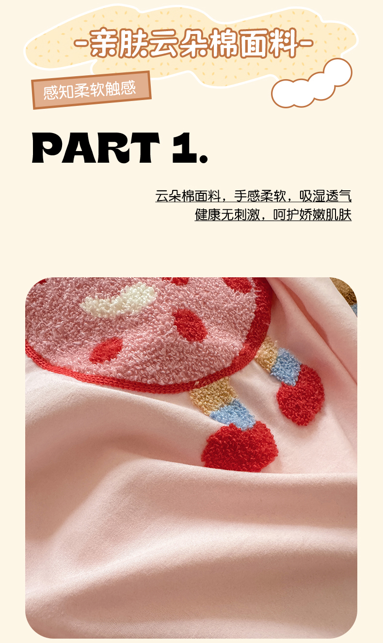 当前位置: 91家纺网 > 商品网购 > 床品套件 > 四件套 > 其它四件套 > 罗亿家纺 2025新款糯糯棉(110克)大版卡通毛巾绣四件套(提供买家绣) 多巴胺甜甜圈