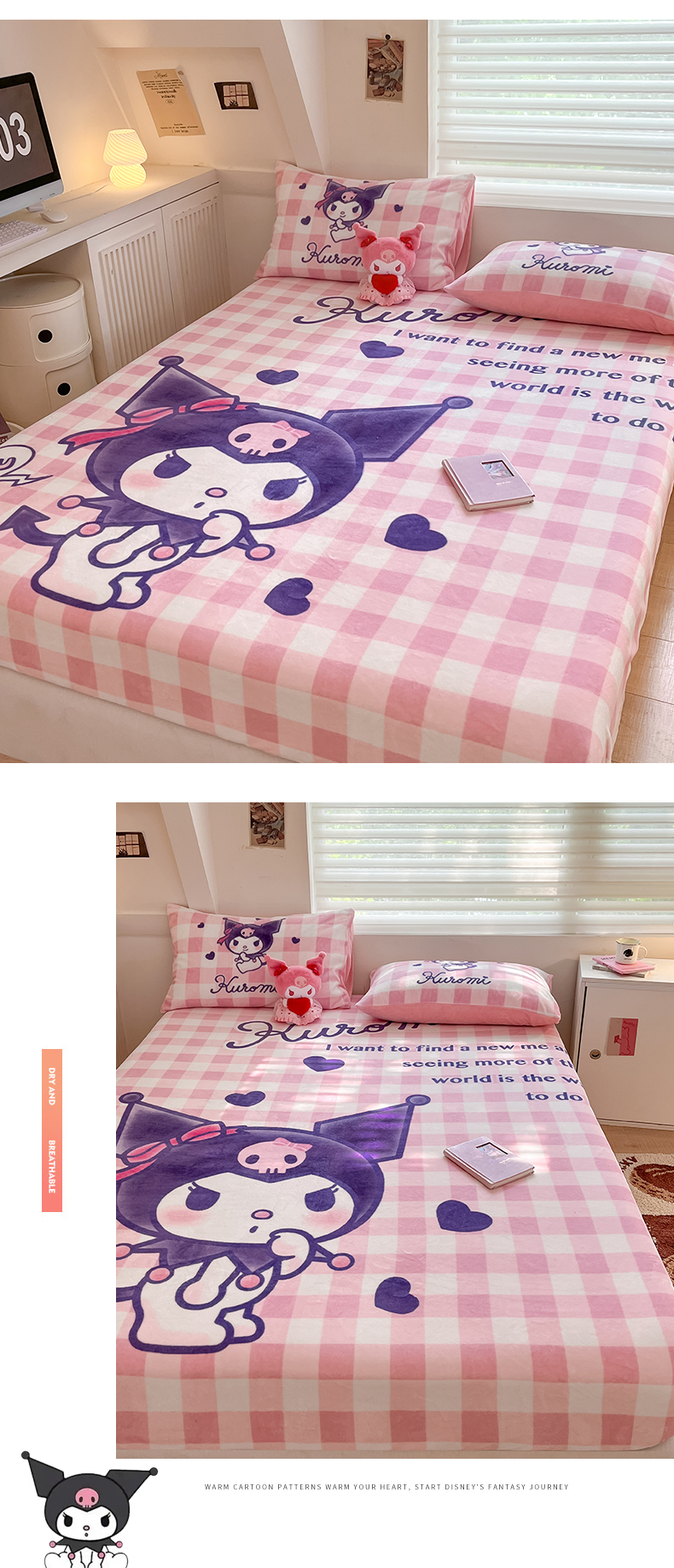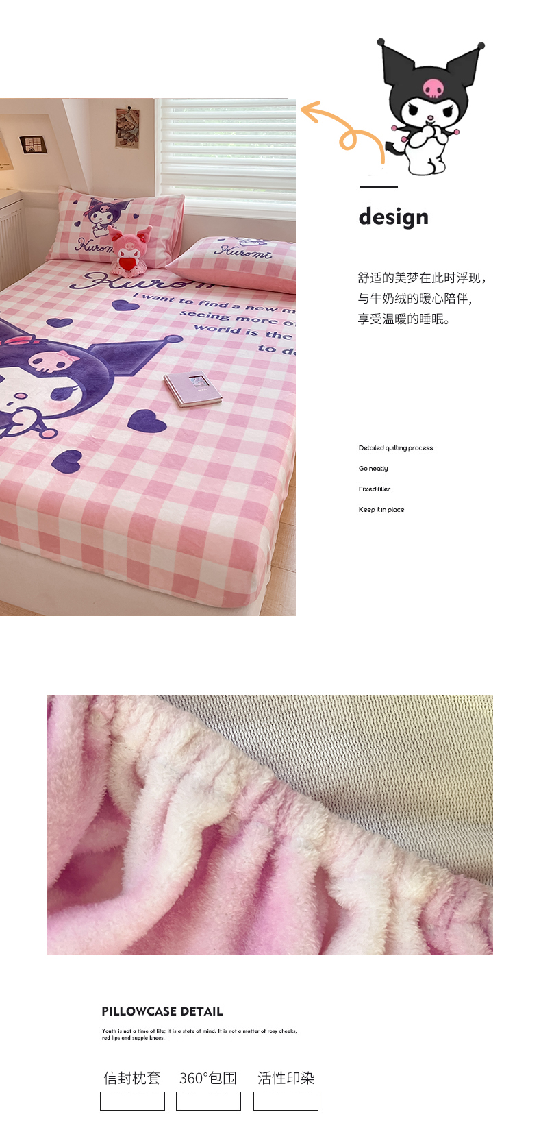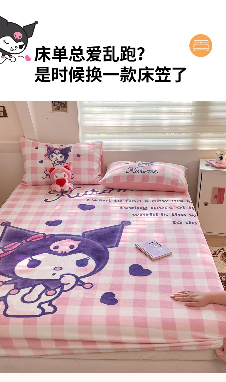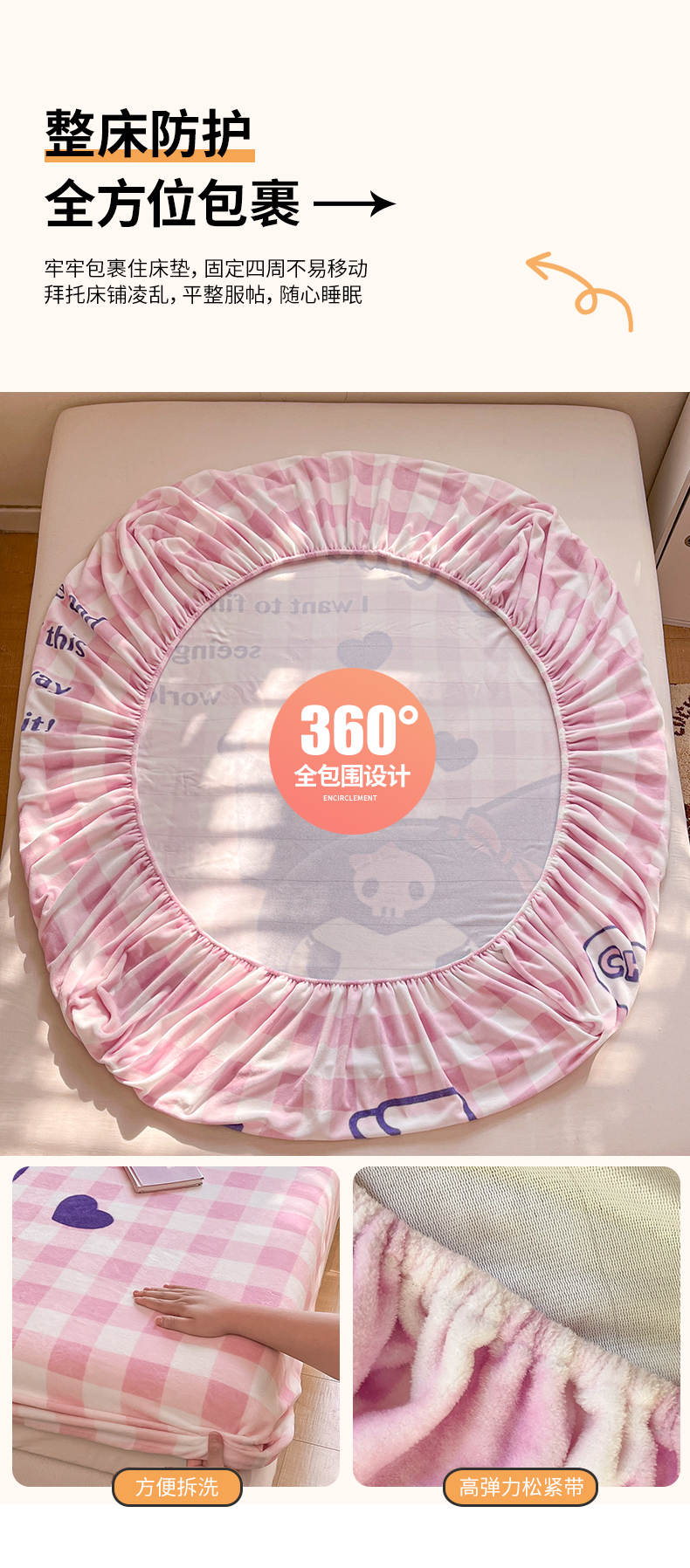 (买家秀爆款不断货)A类母婴级库洛米大阪卡通牛奶绒床笠珊瑚绒床笠雪花绒床笠牛奶绒床罩珊瑚绒床罩床垫套 绒-D纷纷库洛米