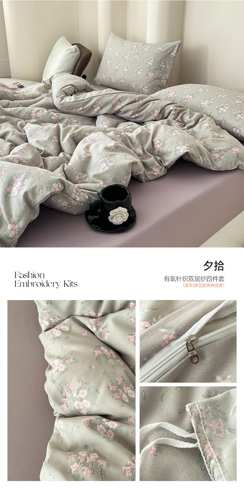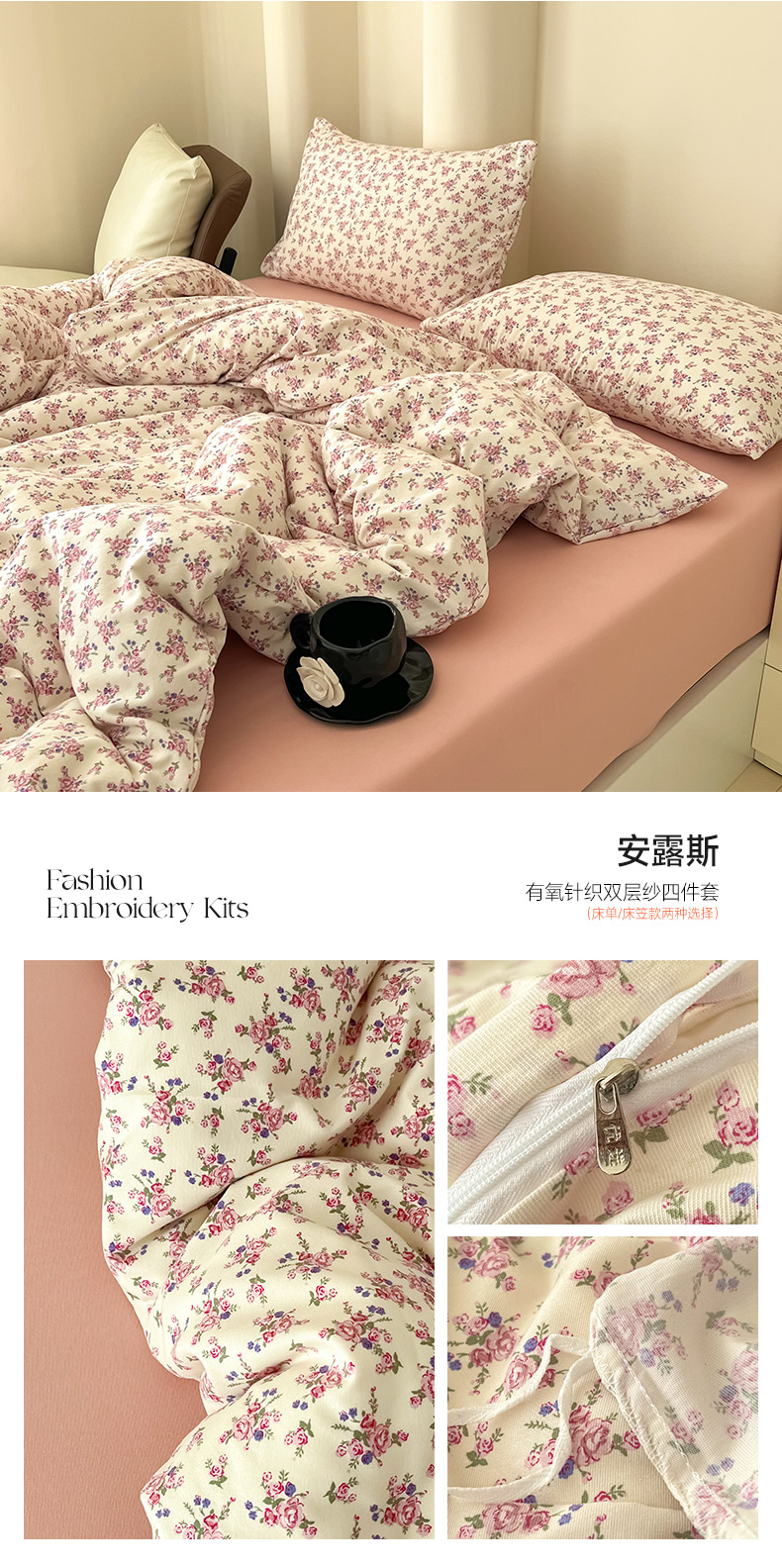 商品名称:(总)暖芯优选 2025新款加厚针织棉双层纱四件套小碎花被套床单床笠款学生三件套新款直播热款-叠拍图-系列二