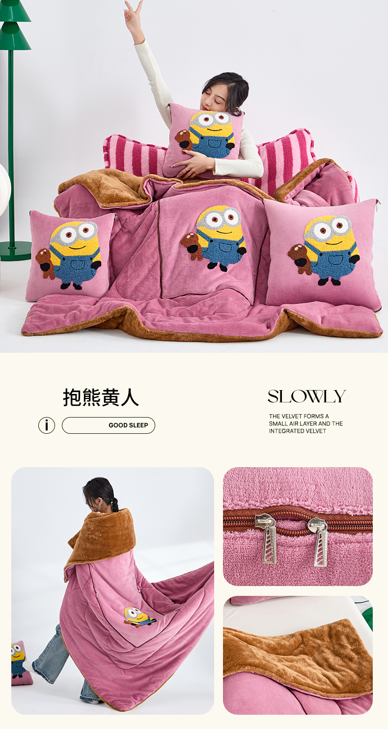商品名称:宝马家纺(原梦童画) 2025新款小黄人抱枕被加厚抱枕被 抱熊黄人