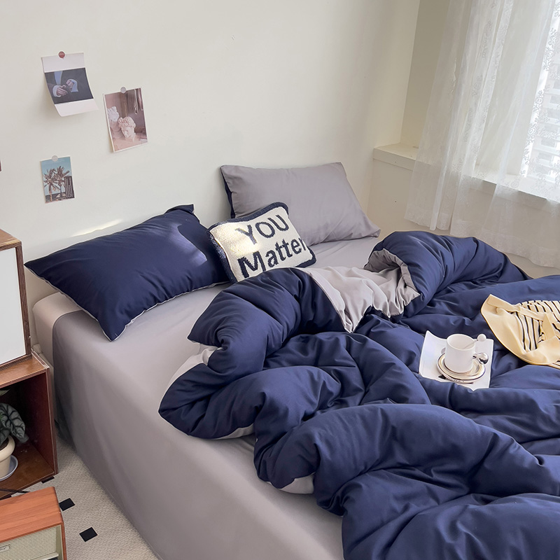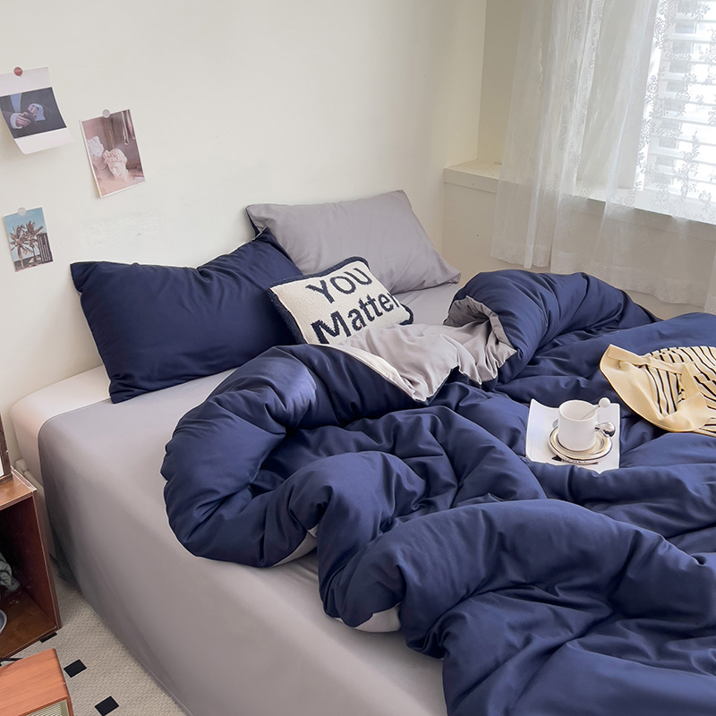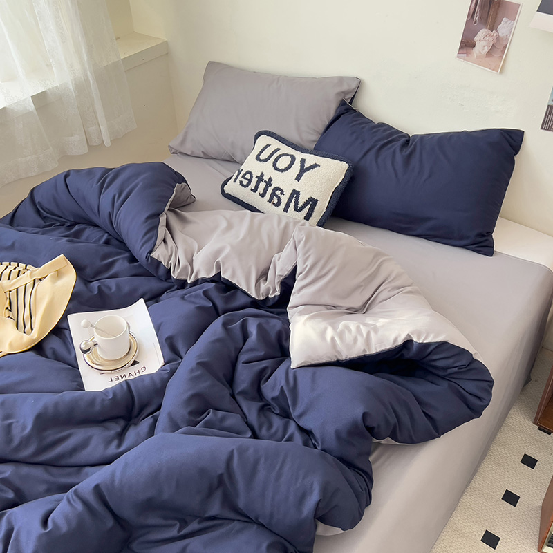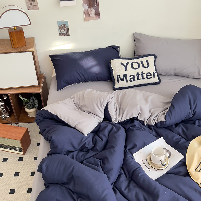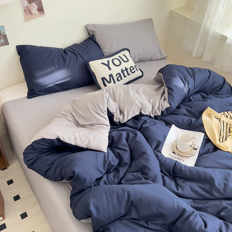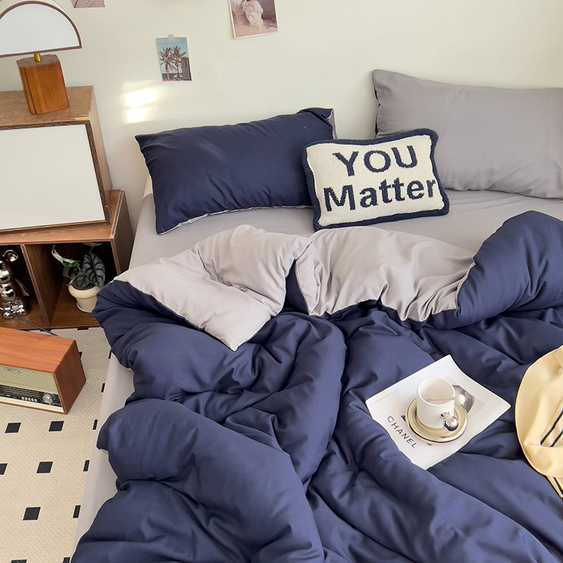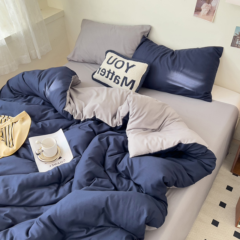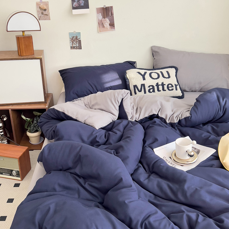 当前位置: 91家纺网 > 商品网购 > 床品套件 > 四件套 > 水洗棉四件套 > 维娜斯家纺 2025新款水洗棉纯色双拼四件套亲肤柔单人被套床单学生三件套 魅蓝+烟灰