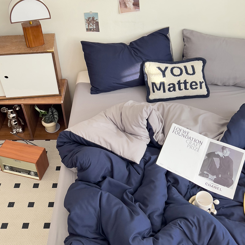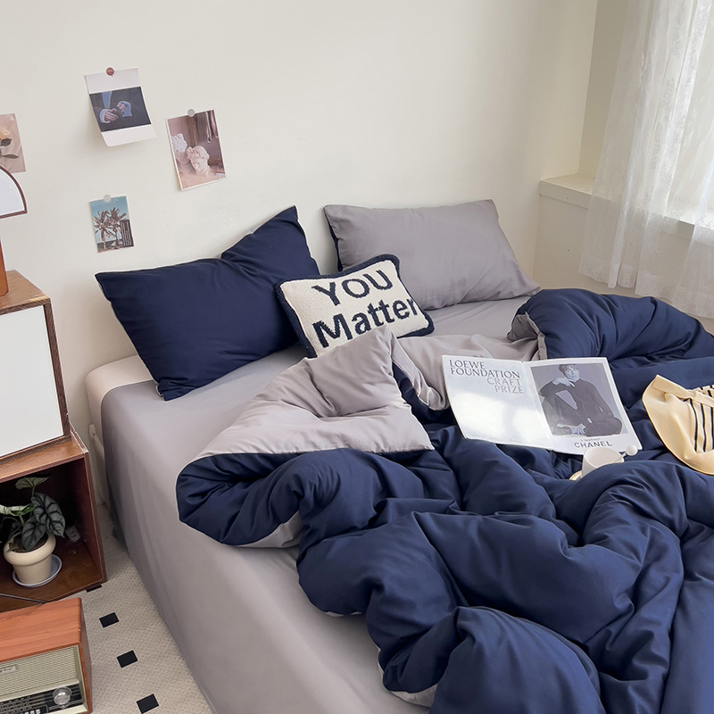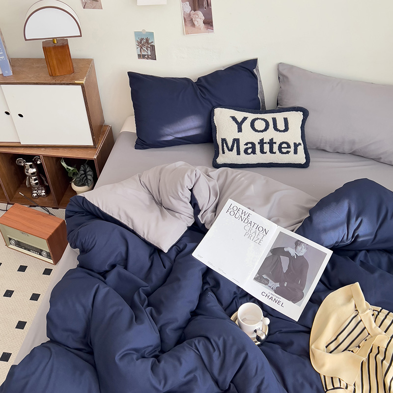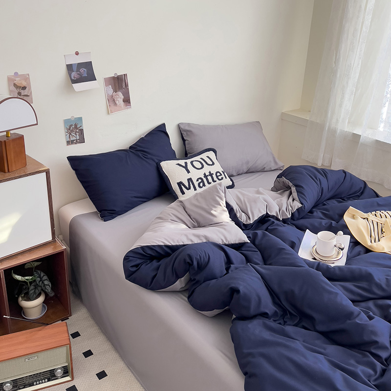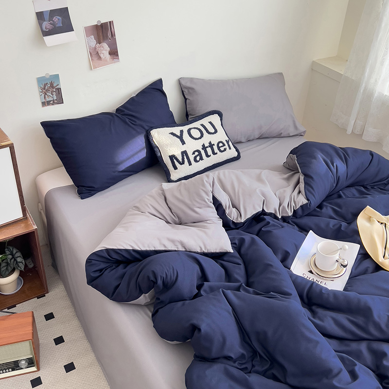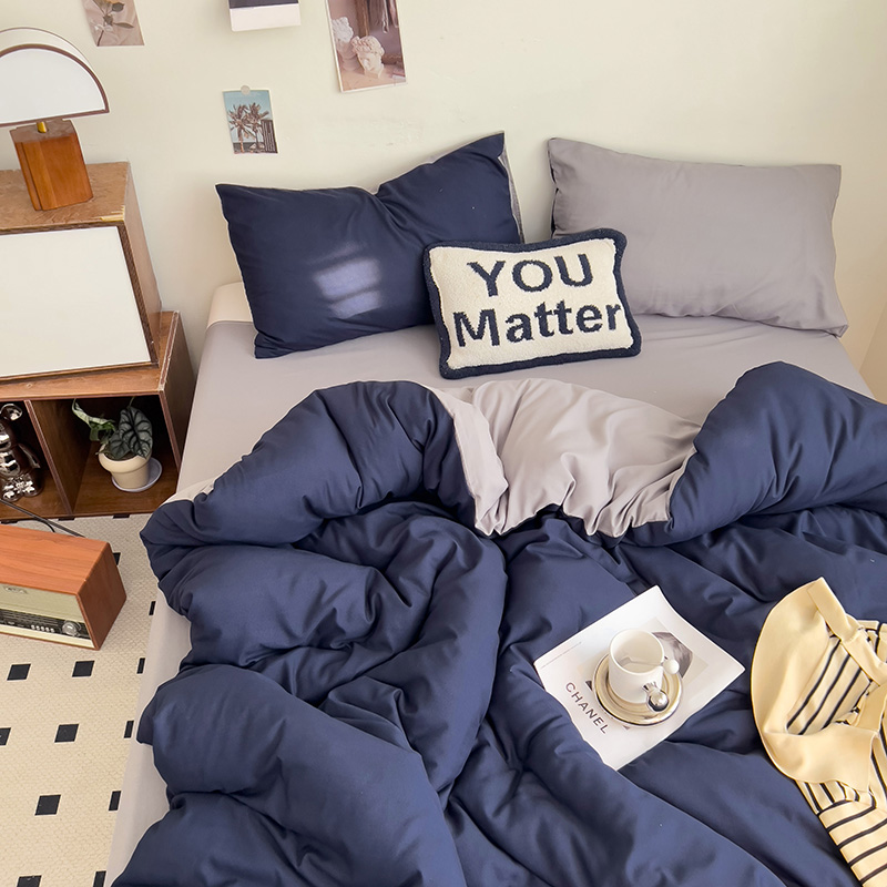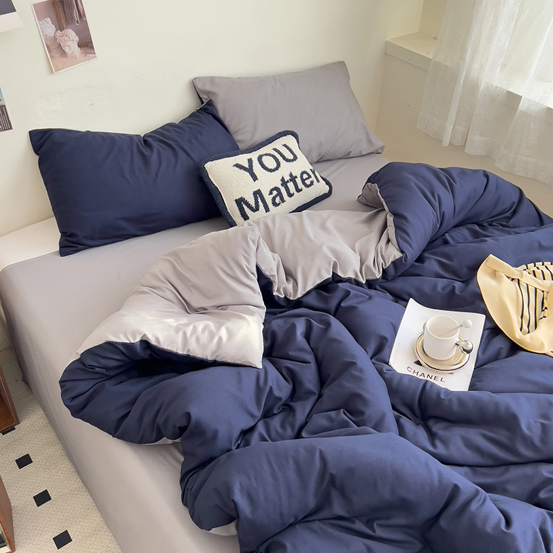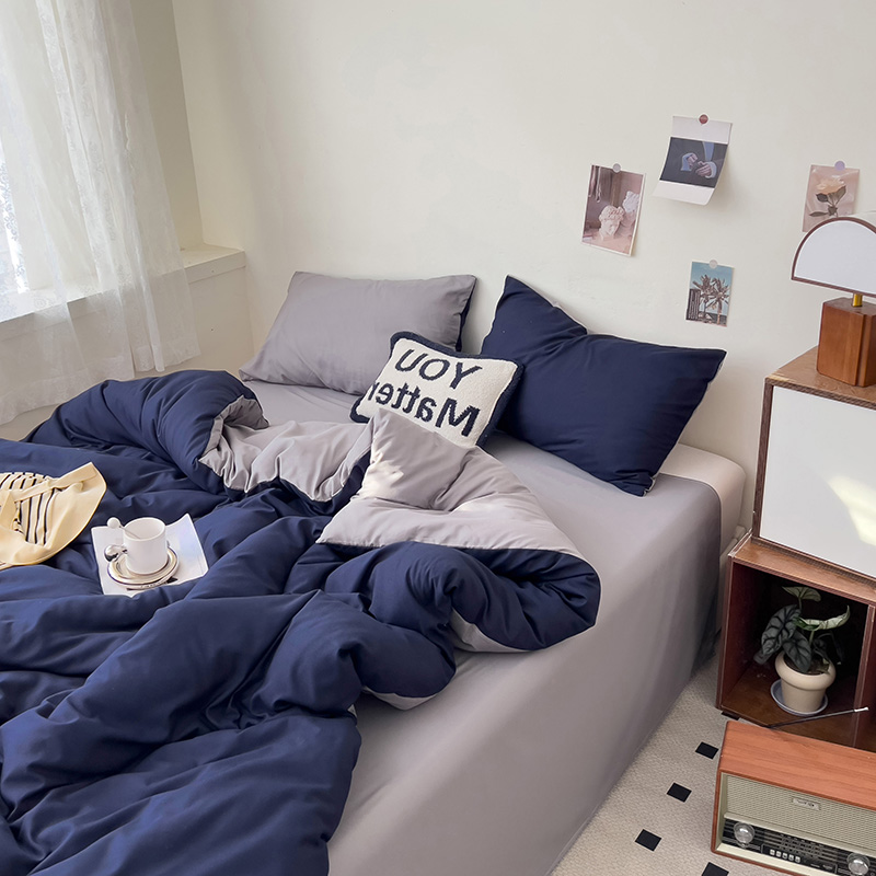 当前位置: 91家纺网 > 商品网购 > 床品套件 > 四件套 > 水洗棉四件套 > 维娜斯家纺 2025新款水洗棉纯色双拼四件套亲肤柔单人被套床单学生三件套 魅蓝+烟灰