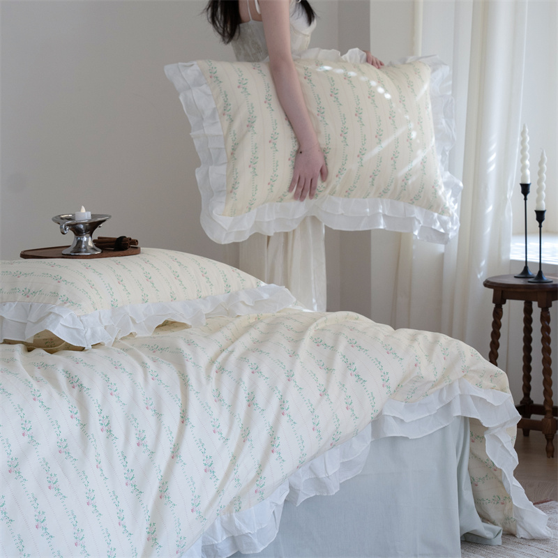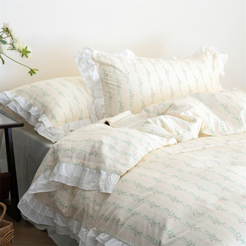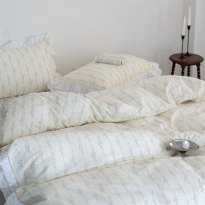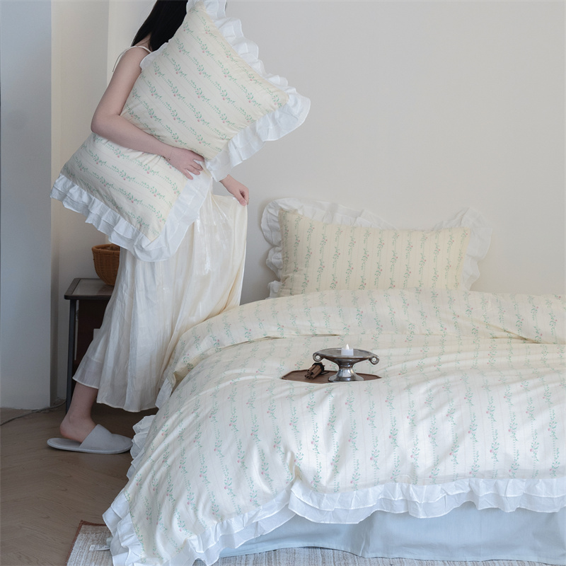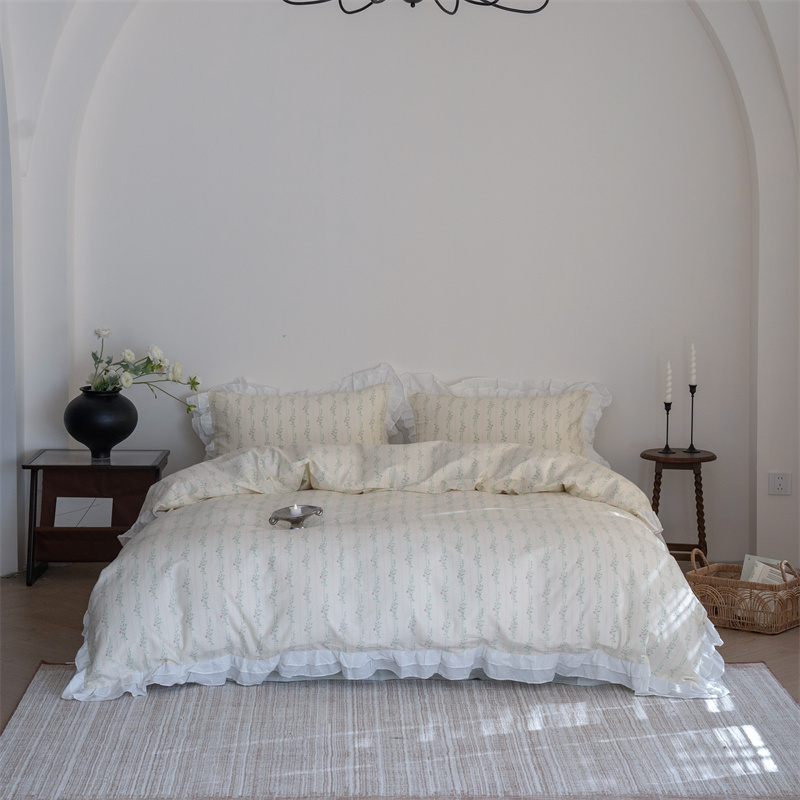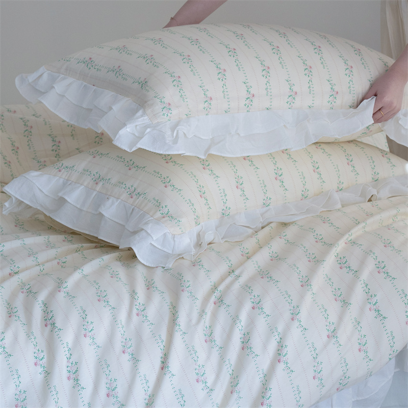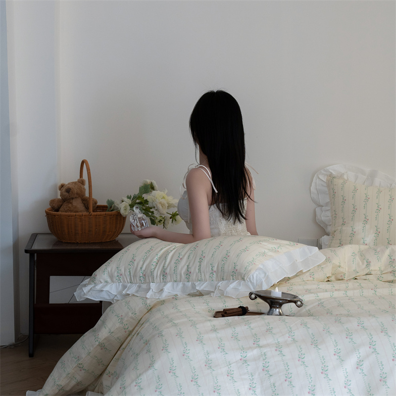 当前位置: 91家纺网 > 商品网购 > 床品套件 > 四件套 > 全棉普通四件套 > 尺素 2025年小碎花纯棉花边四件套全棉田园风荷叶边被套纯棉床单棉法式套件1.8纯色床笠套件 养一束温柔冰沙绿(花边款)