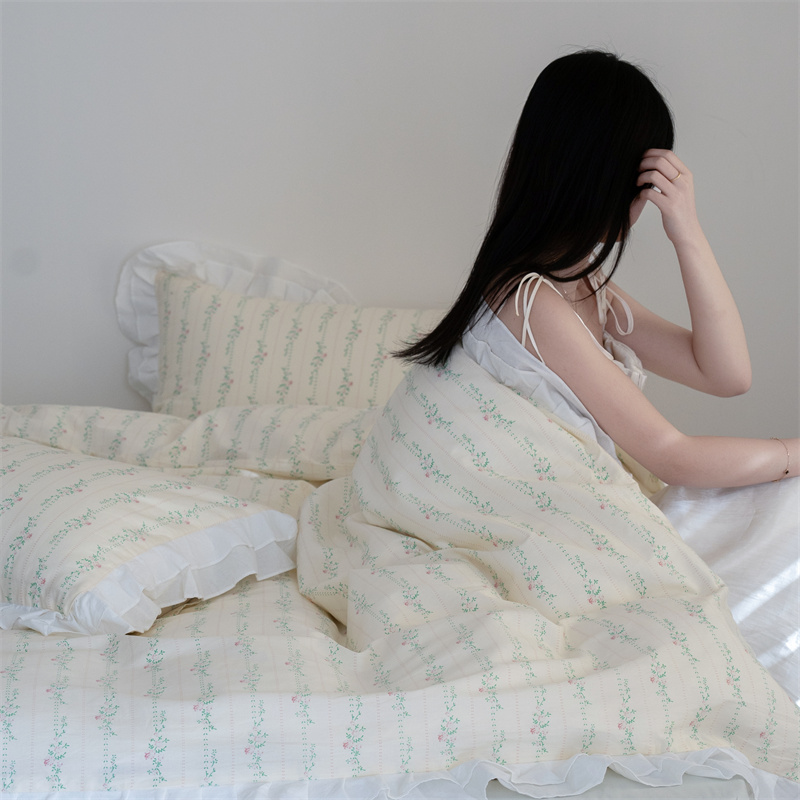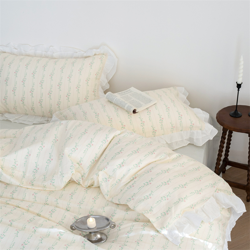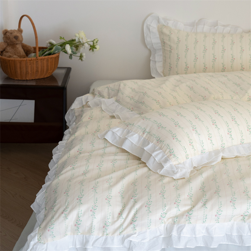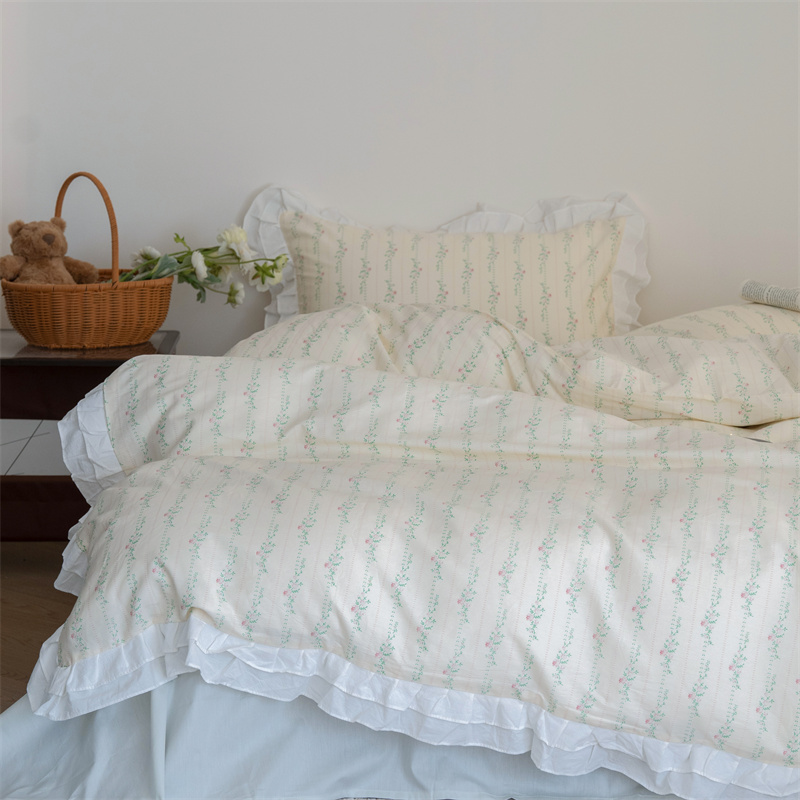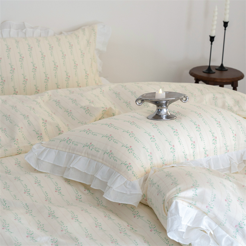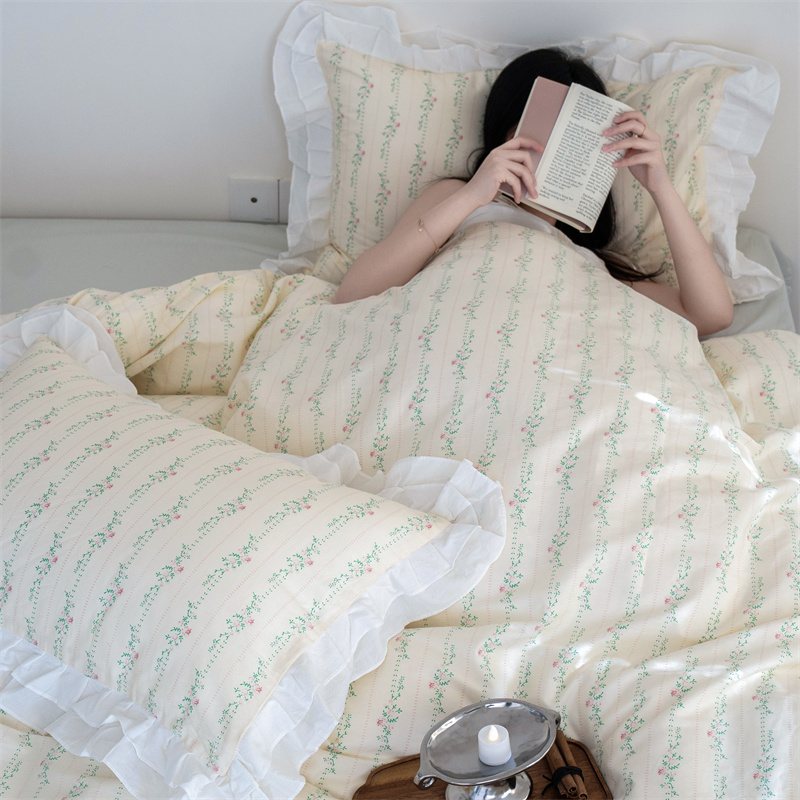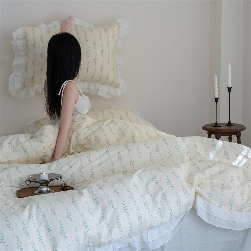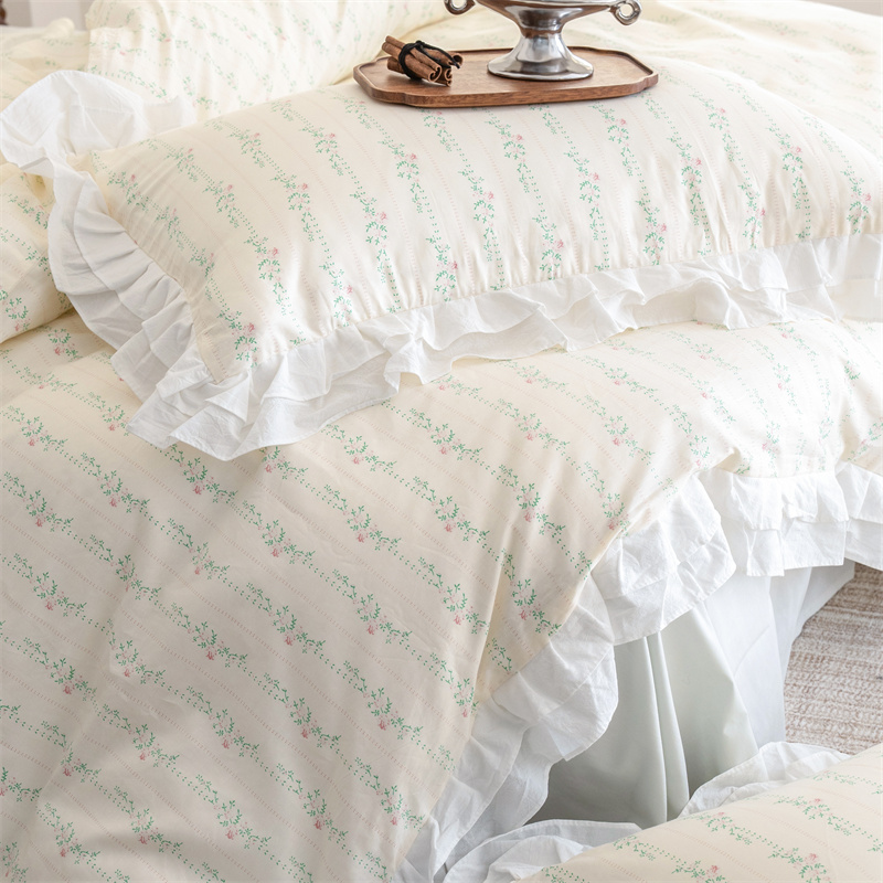 当前位置: 91家纺网 > 商品网购 > 床品套件 > 四件套 > 全棉普通四件套 > 尺素 2025年小碎花纯棉花边四件套全棉田园风荷叶边被套纯棉床单棉法式套件1.8纯色床笠套件 养一束温柔冰沙绿(花边款)