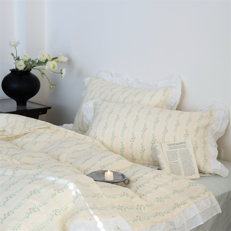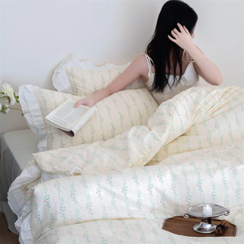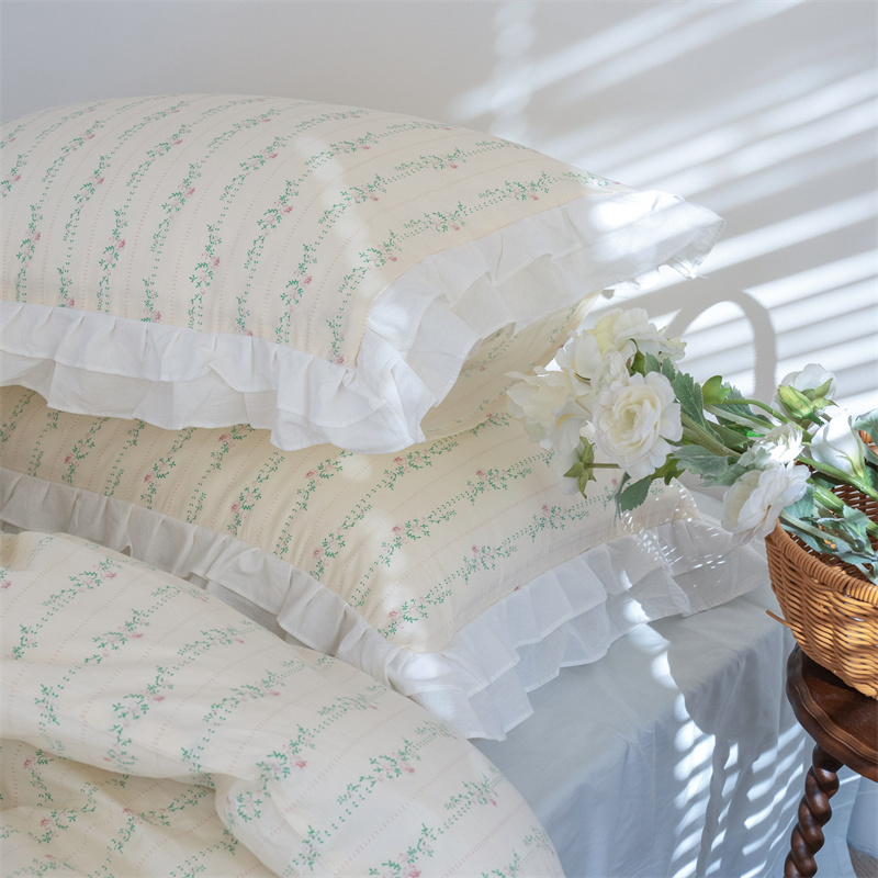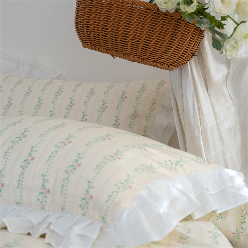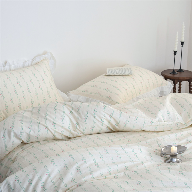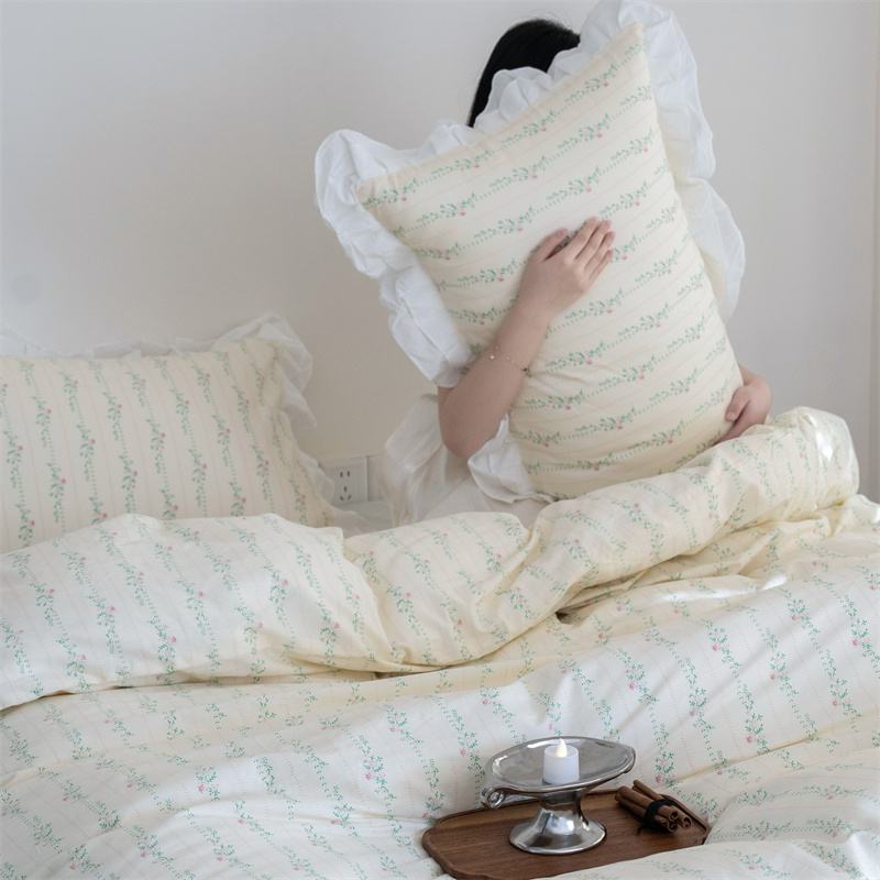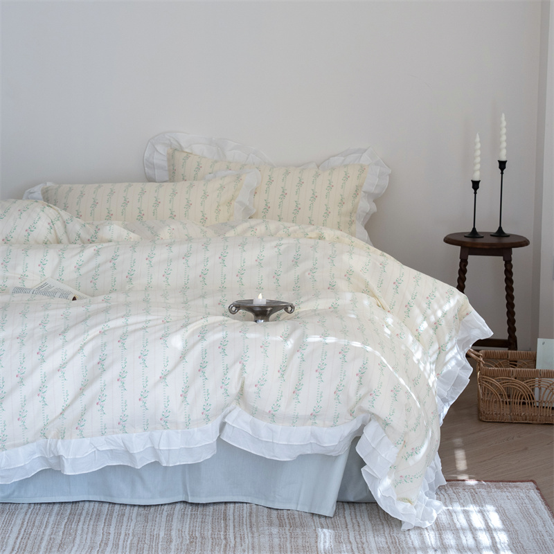 当前位置: 91家纺网 > 商品网购 > 床品套件 > 四件套 > 全棉普通四件套 > 尺素 2025年小碎花纯棉花边四件套全棉田园风荷叶边被套纯棉床单棉法式套件1.8纯色床笠套件 养一束温柔冰沙绿(花边款)