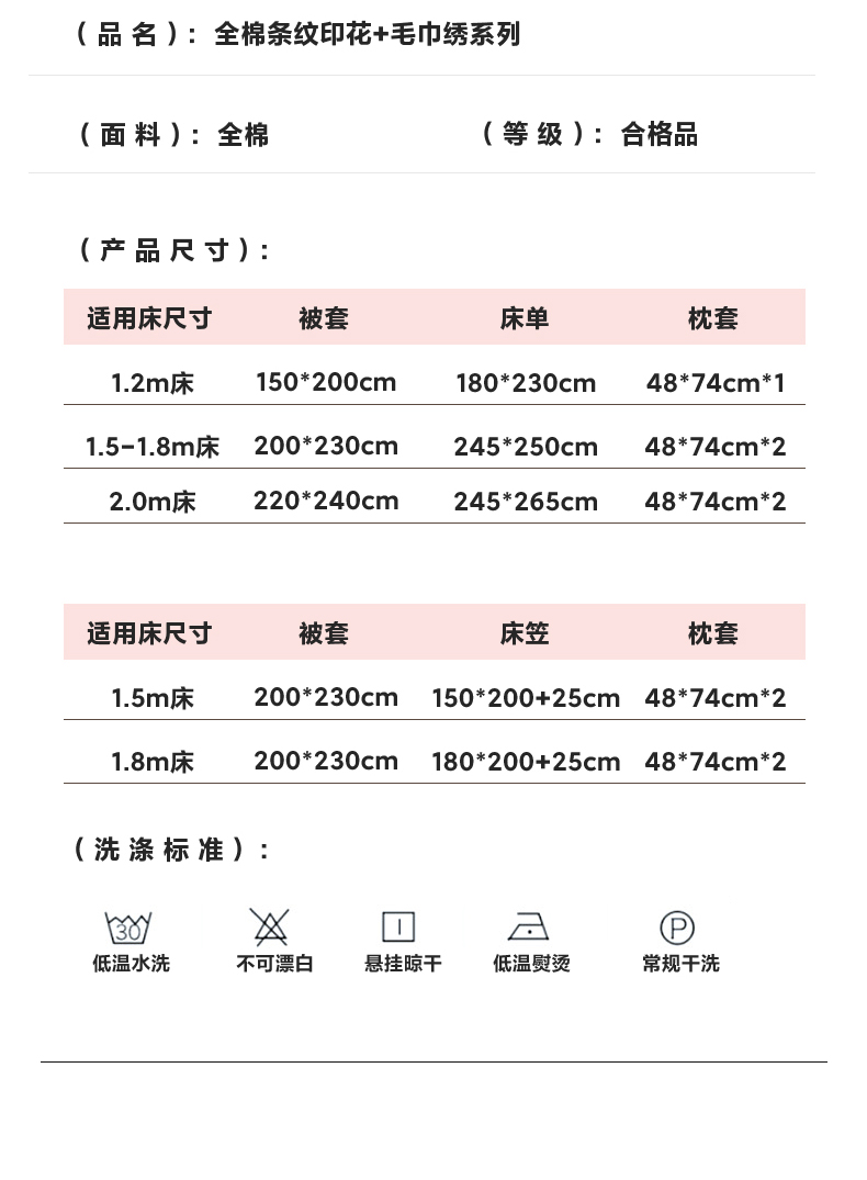 商品名称:(总)有间小屋 2025新款全棉条纹印花+毛巾绣系列四件套