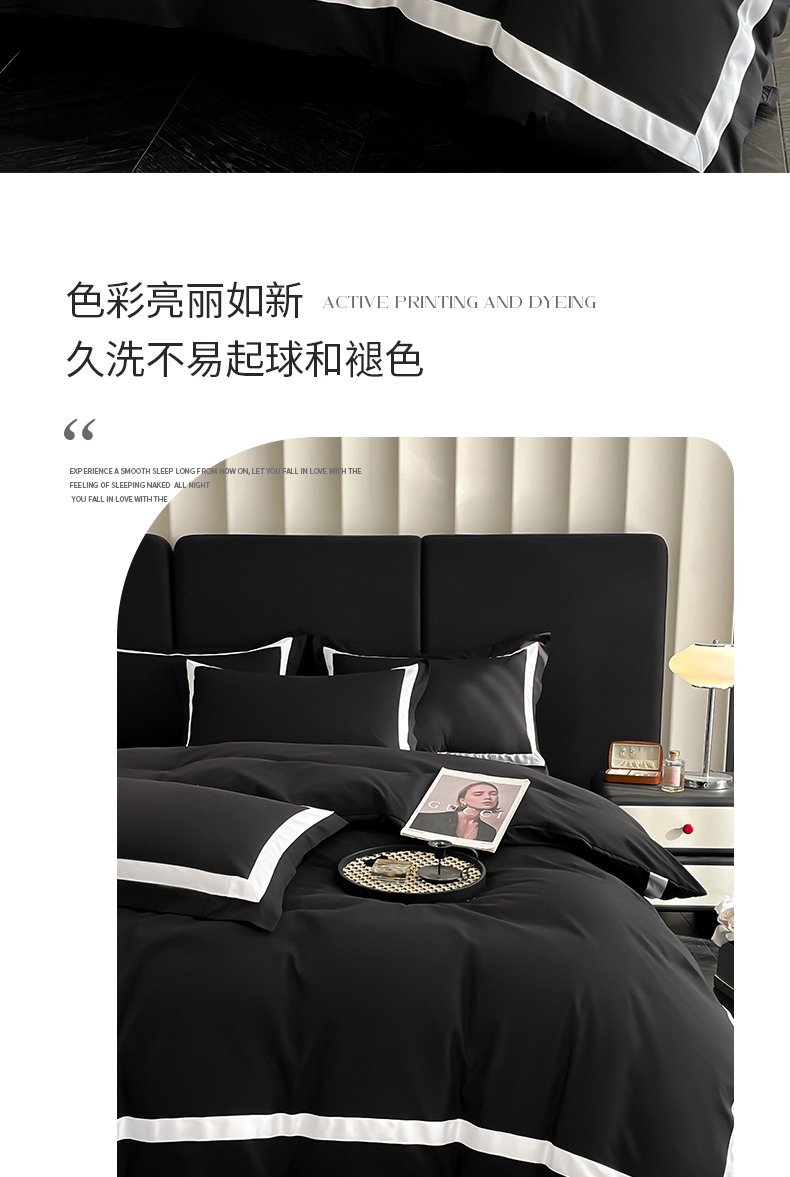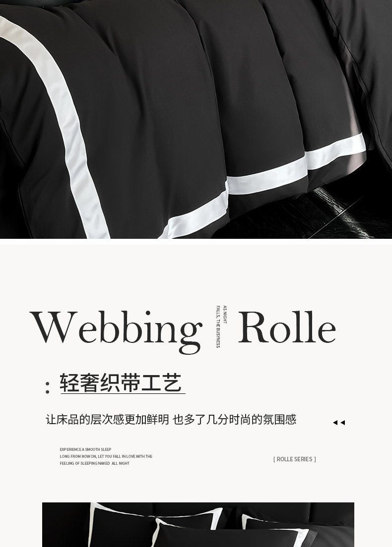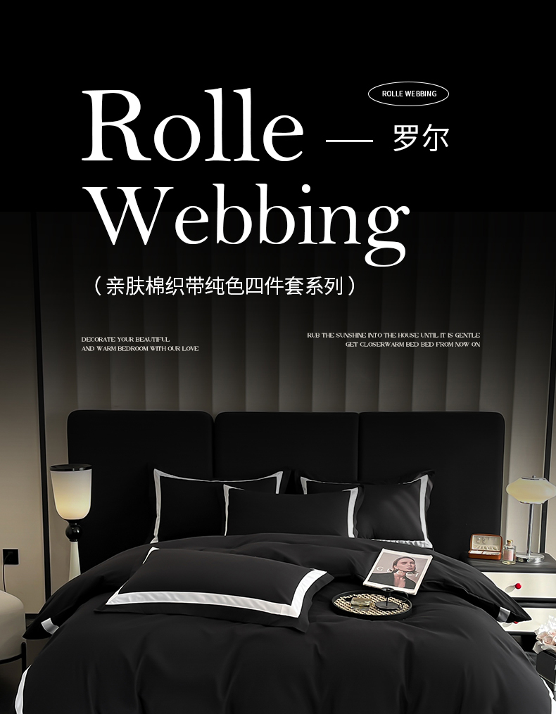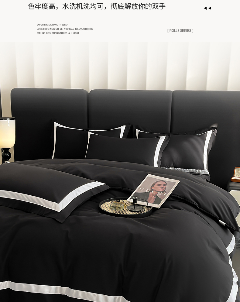 商品名称:2025新款水洗磨毛酒店风四件套-罗尔 罗尔-黑色