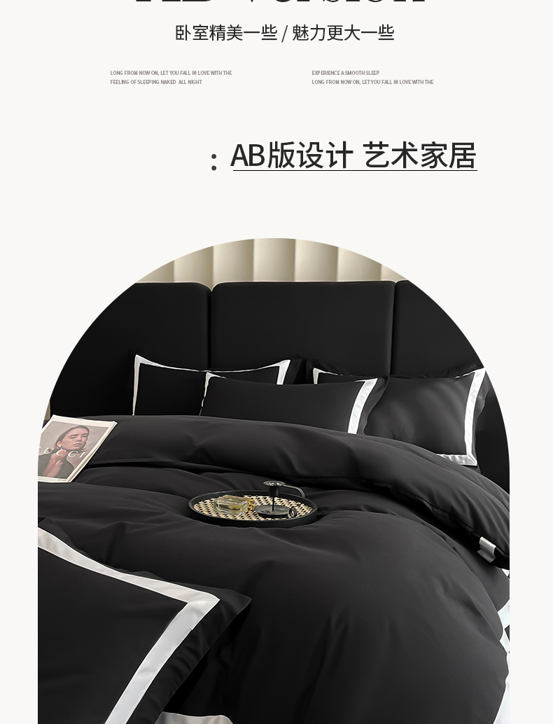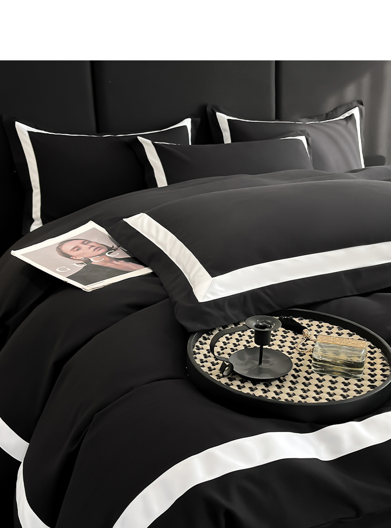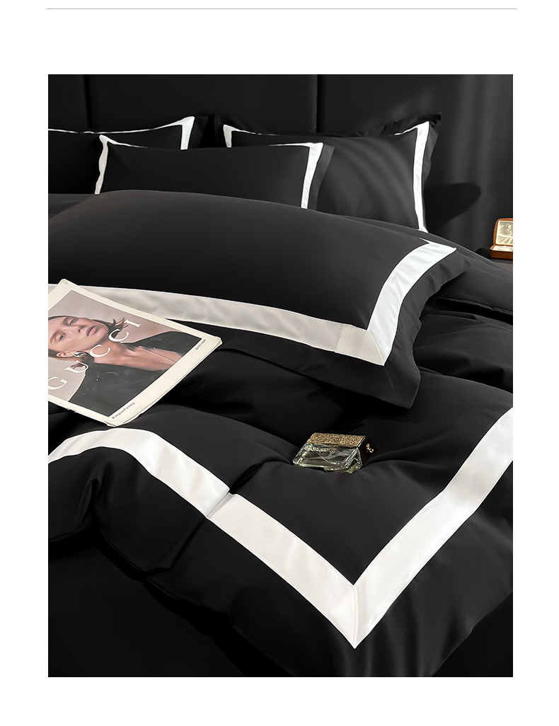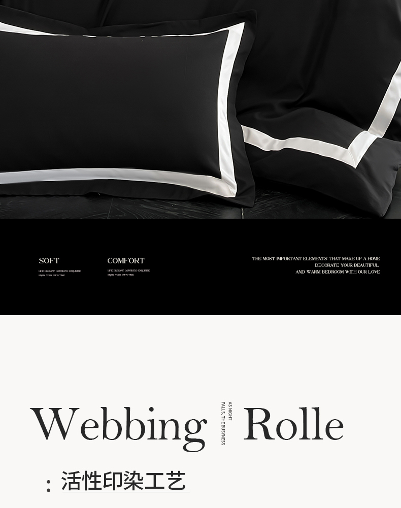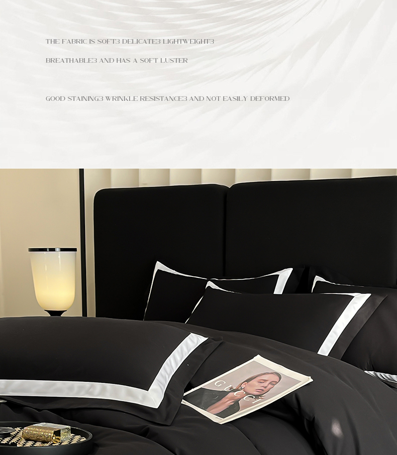 商品名称:2025新款水洗磨毛酒店风四件套-罗尔 罗尔-黑色