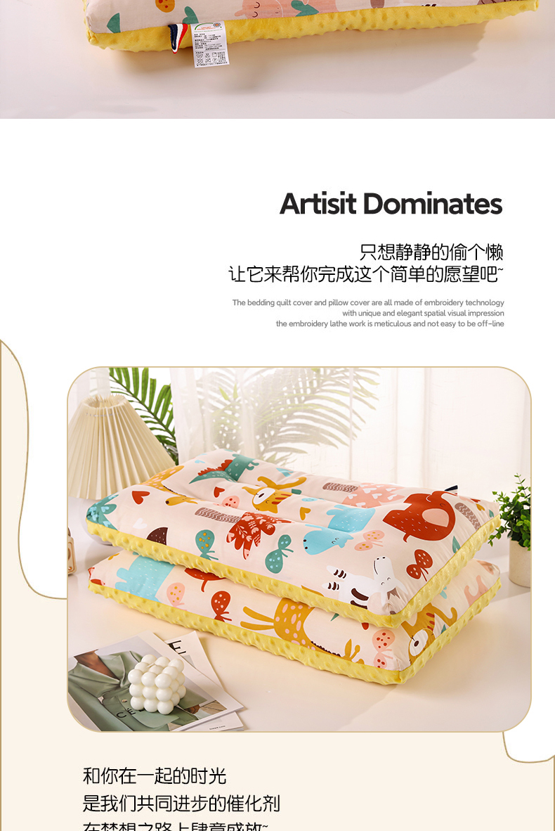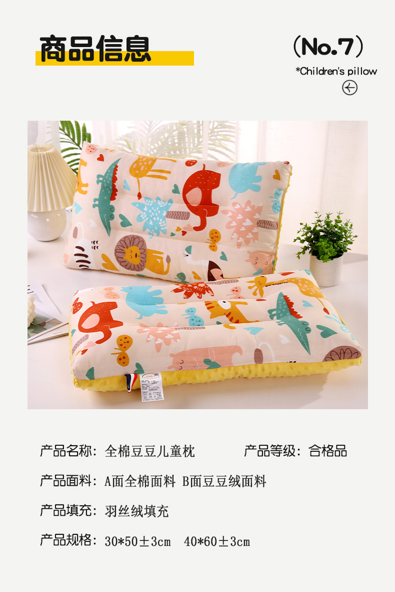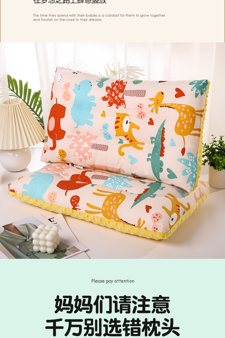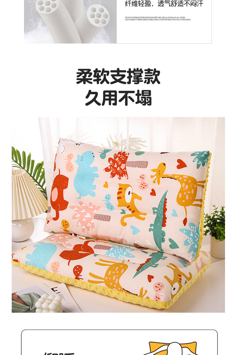 2025卡通全棉儿童豆豆绒枕芯安抚护颈枕头家用成人学生宿舍宝宝枕,动物乐园30*50cm,小奶牛30*50cm,欢乐时光30*50cm,开心乐园30*50cm,小恐龙30*50cm,小汽车30*50cm,小象30*50cm,小兔子30*50cm,工程车30*50cm