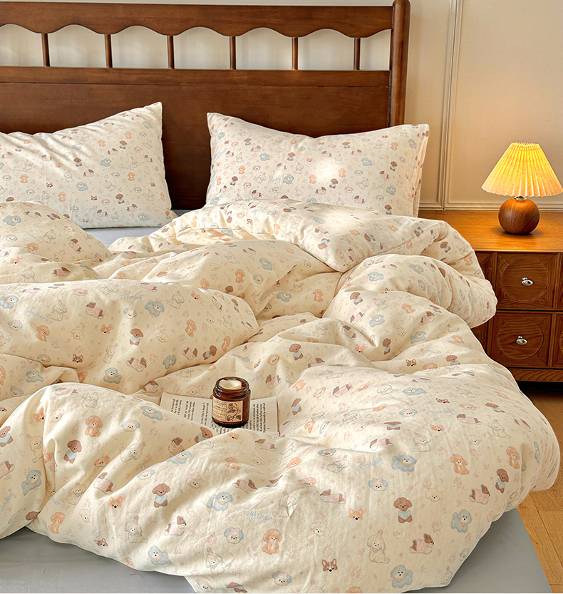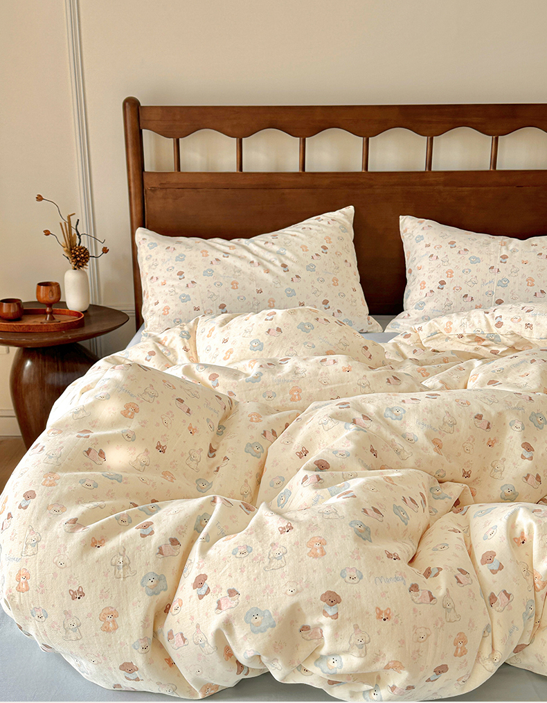 呗旺鹿 2025新款A类母婴级全棉有氧双层纱印花四件套 泡芙狗