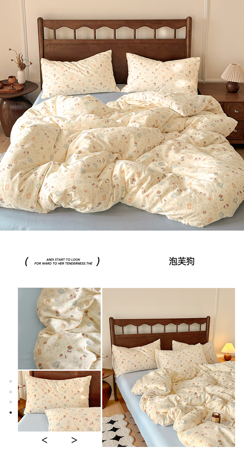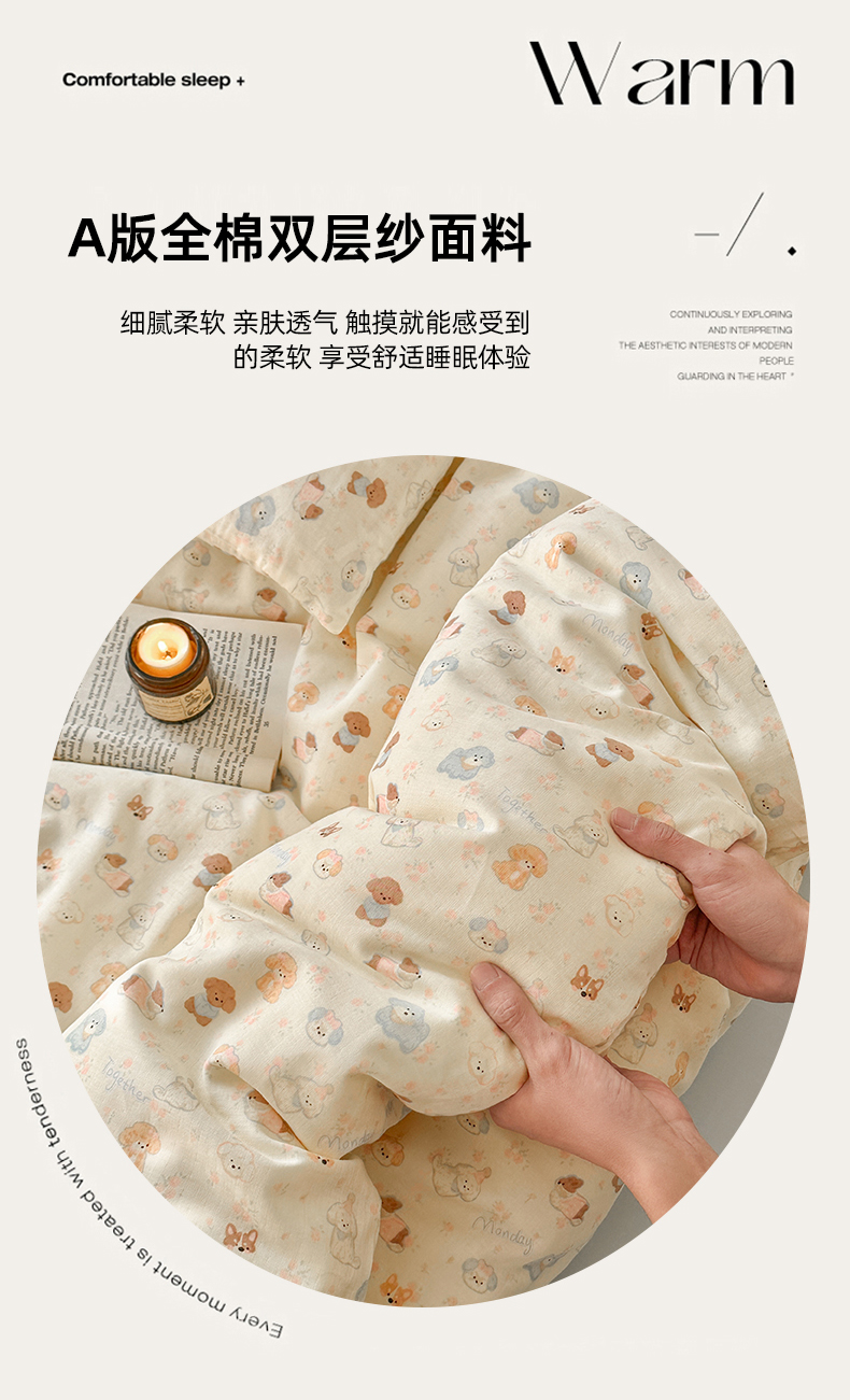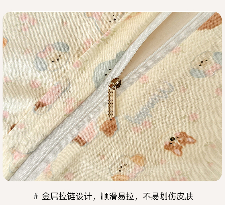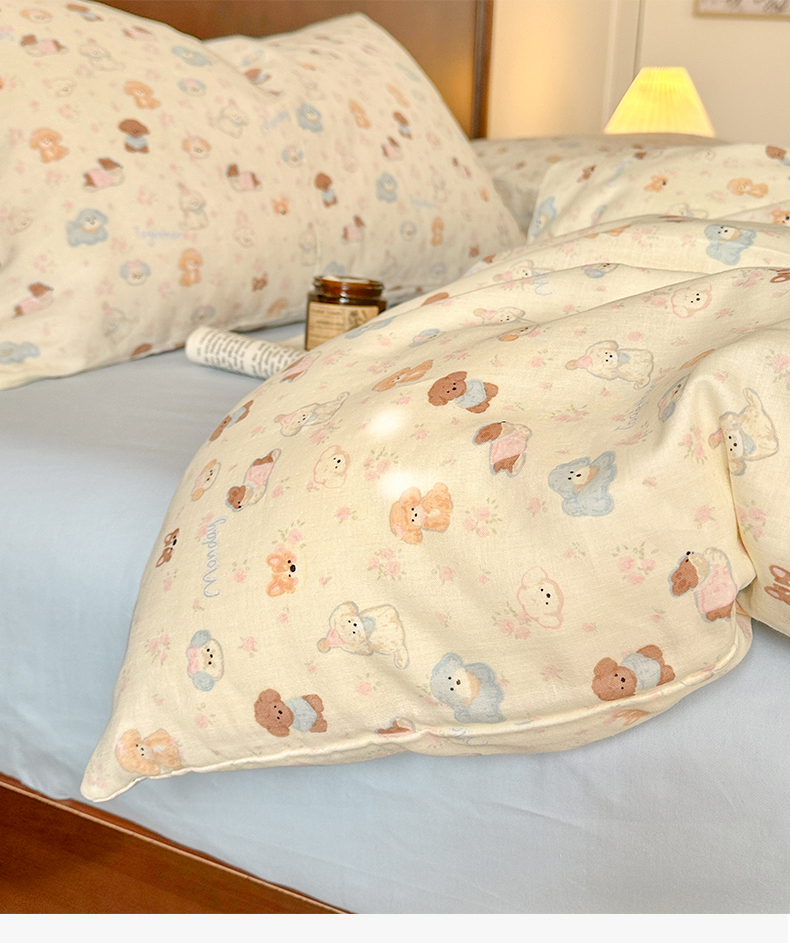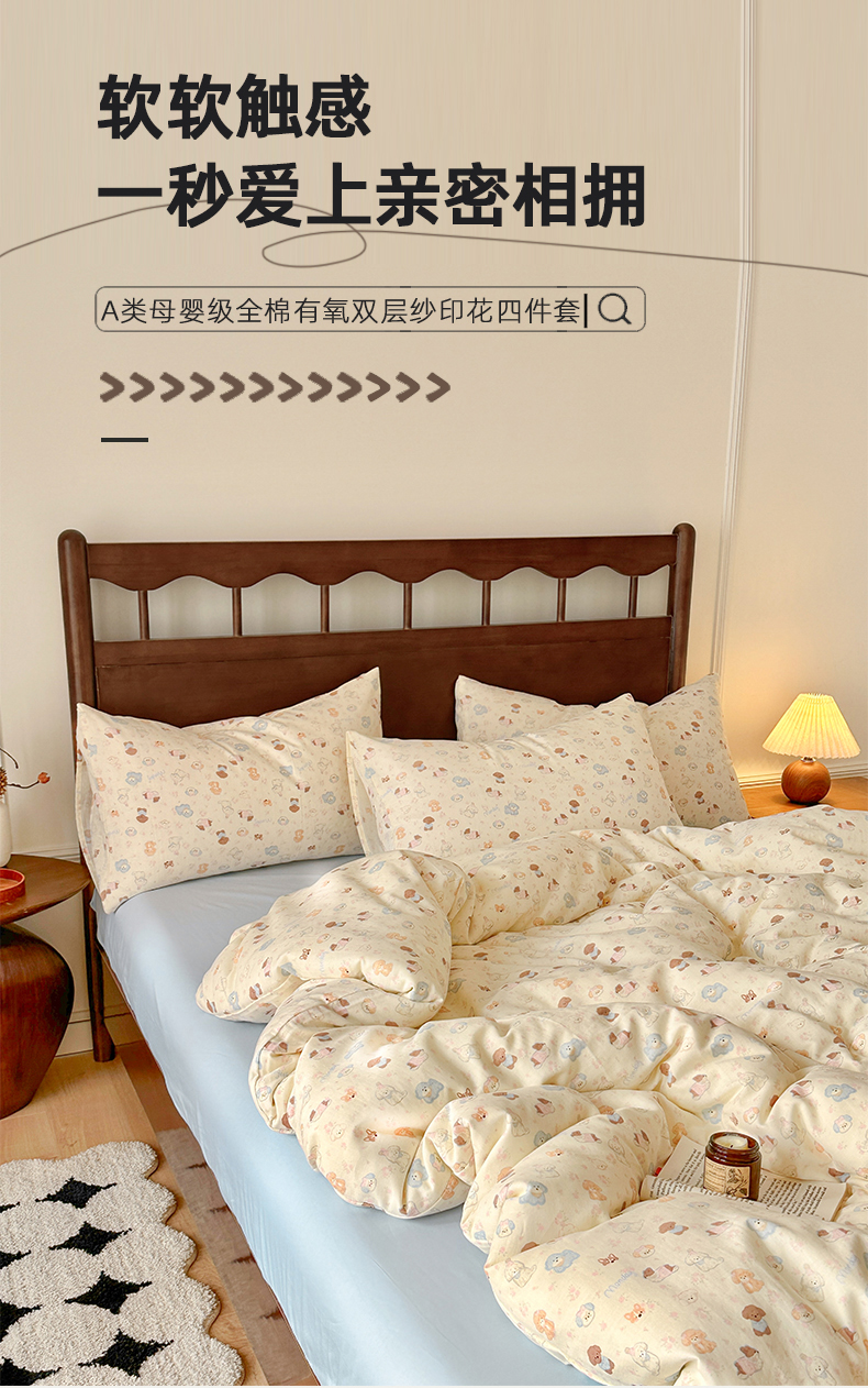 商品名称:呗旺鹿 2025新款A类母婴级全棉有氧双层纱印花四件套 泡芙狗