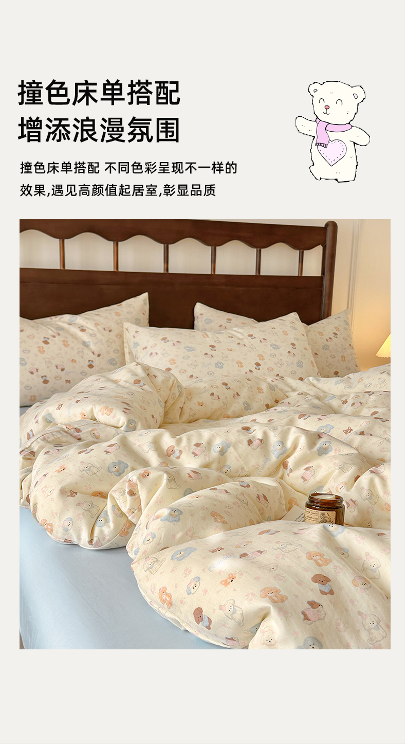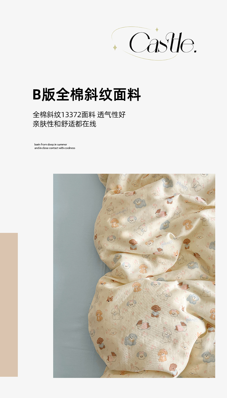 (总)呗旺鹿 2026新款全棉纯棉40支13070卡通印花四件套-场景二,萌星,鼻涕狗,果子象,机灵猫,可爱星人,幸福小熊