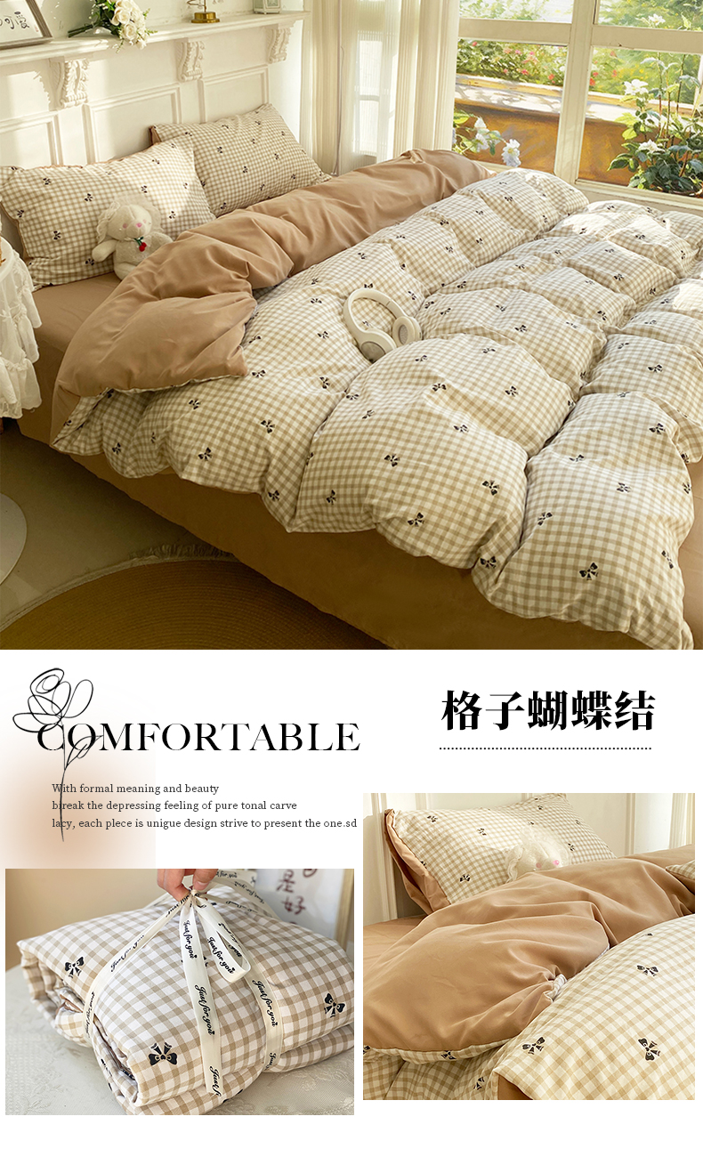 当前位置: 91家纺网 > 商品网购 > 床品套件 > 四件套 > 水洗棉四件套 > 丫丫家纺 2025新小红书直播热款水洗糯小棉四件套软敷敷糯叽叽ins卡通小清新学生床加大号小号单被套单床笠三四 格子蝴蝶结