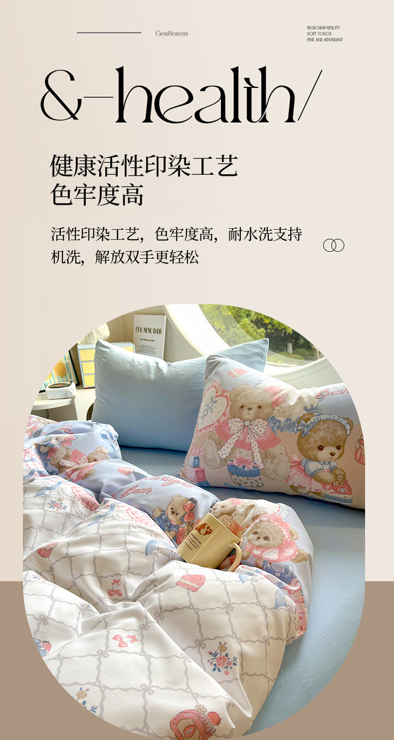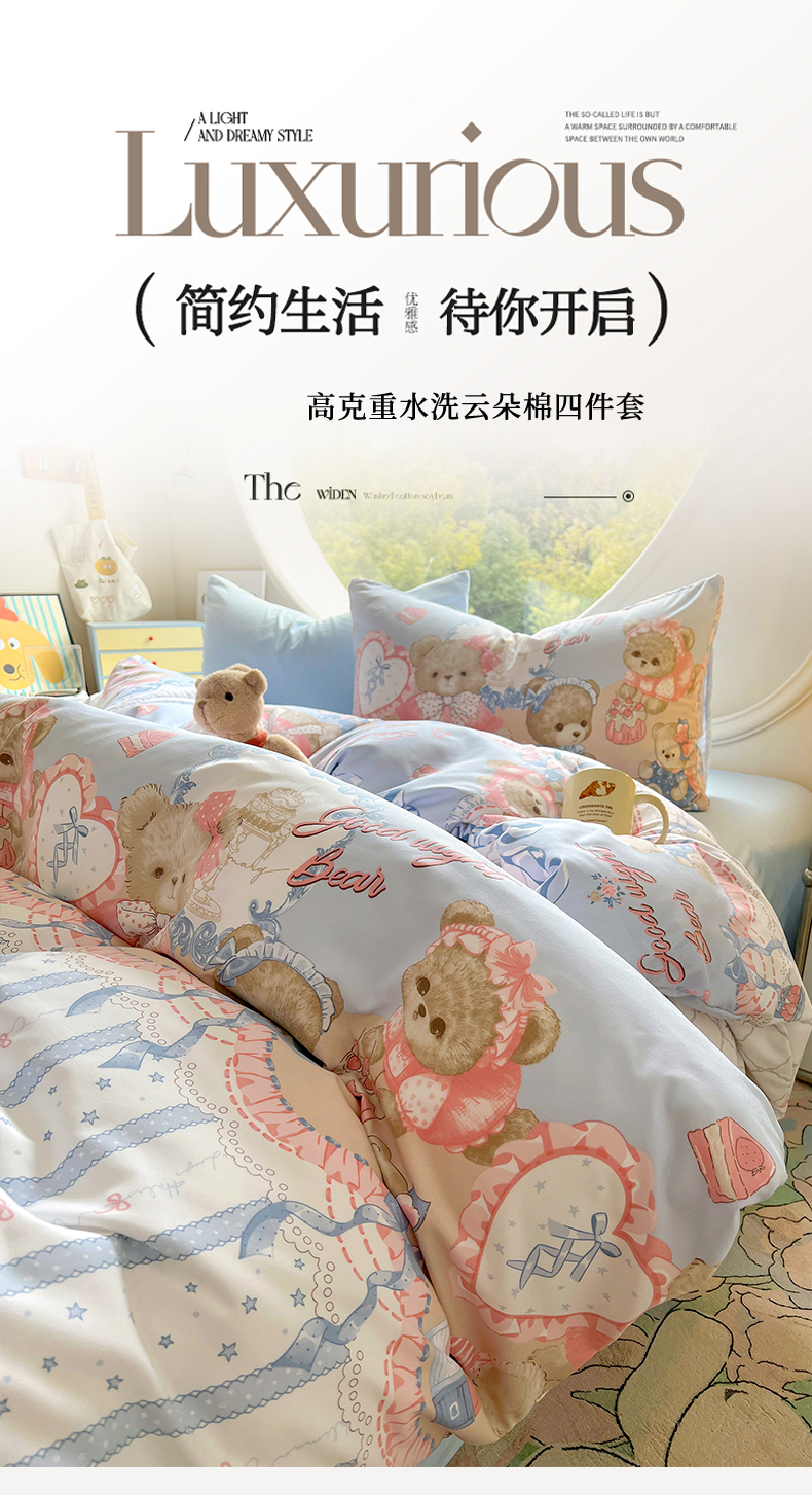 当前位置: 91家纺网 > 商品网购 > 床品套件 > 四件套 > 水洗棉四件套 > 茉礼 2025新款高克重ins风超柔软软糯糯小清新卡通印花水洗棉四件套 洛丽小熊