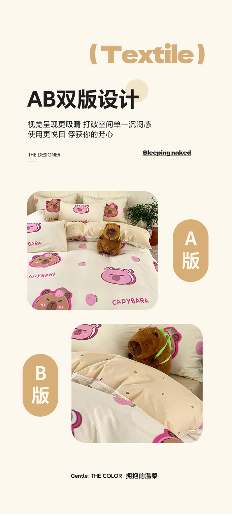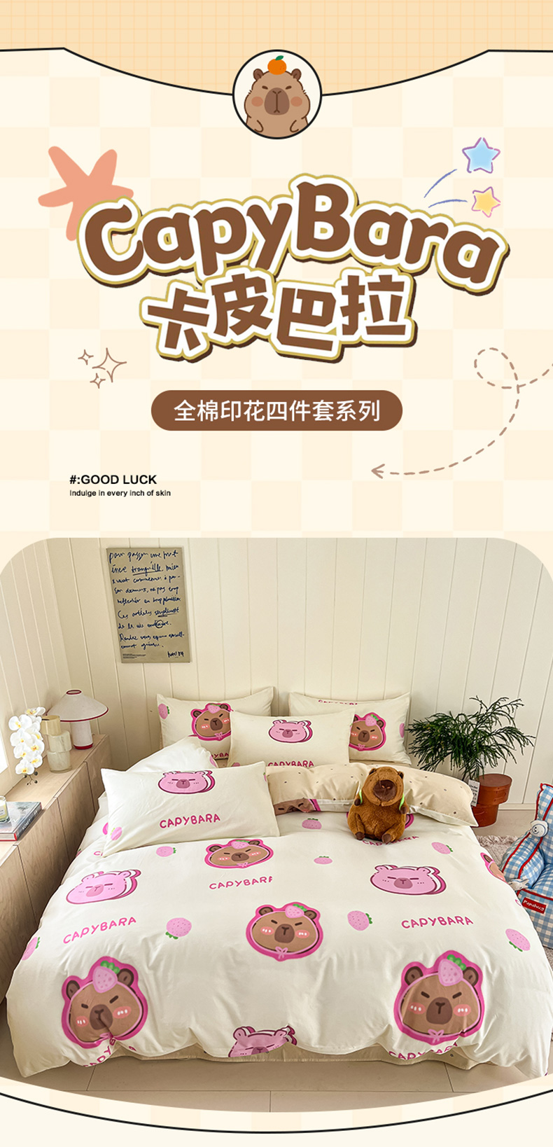当前位置: 91家纺网 > 商品网购 > 床品套件 > 四件套 > 全棉普通四件套 > (总)博雅 2025新款卡皮巴拉系列全棉印花四件套