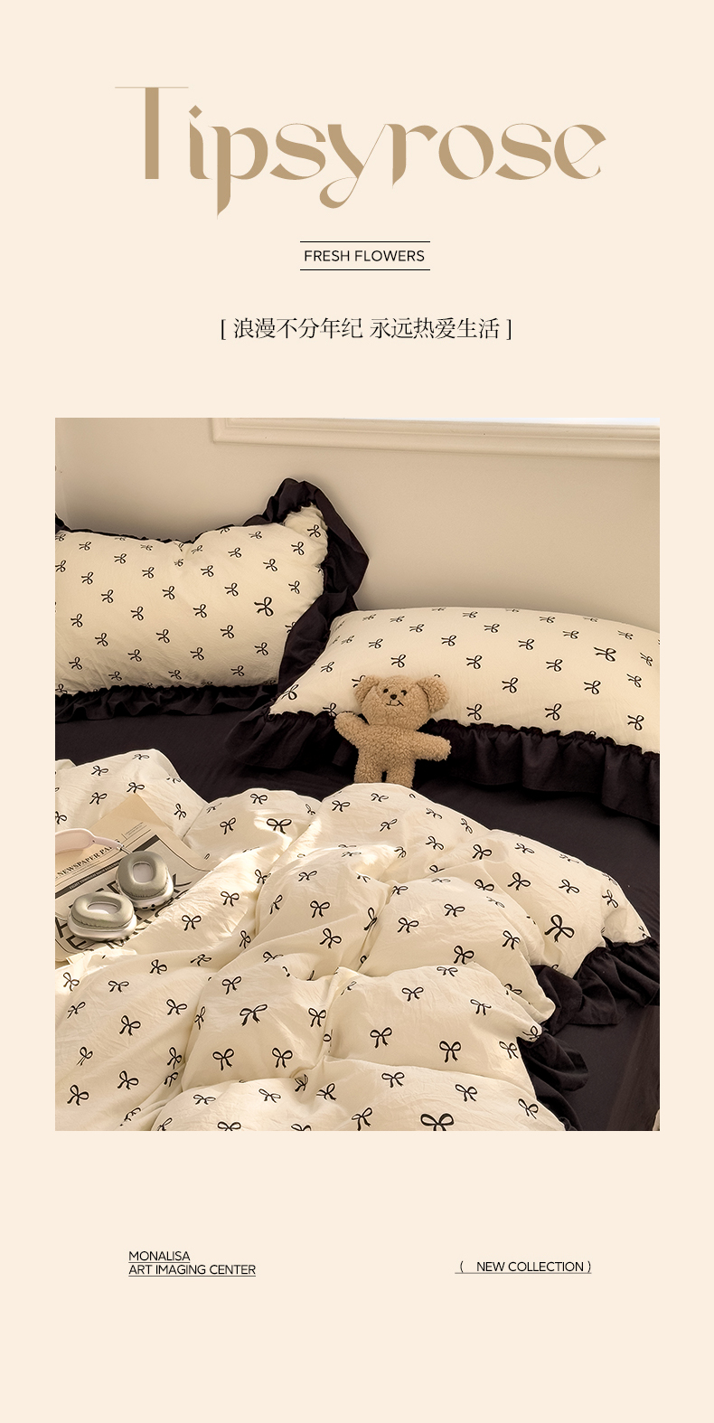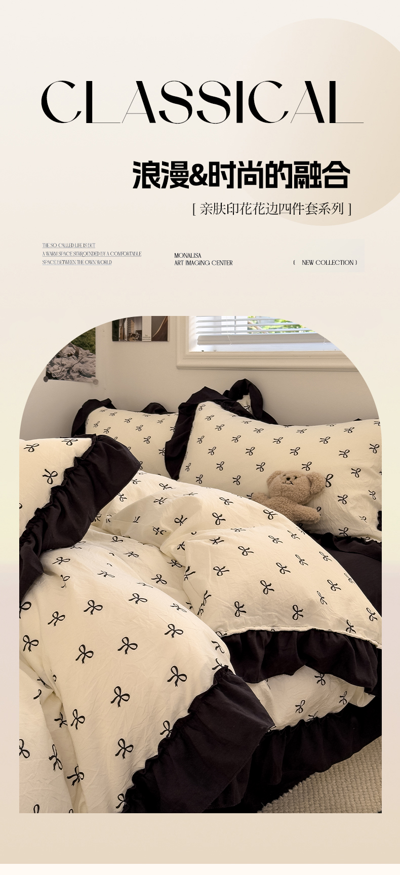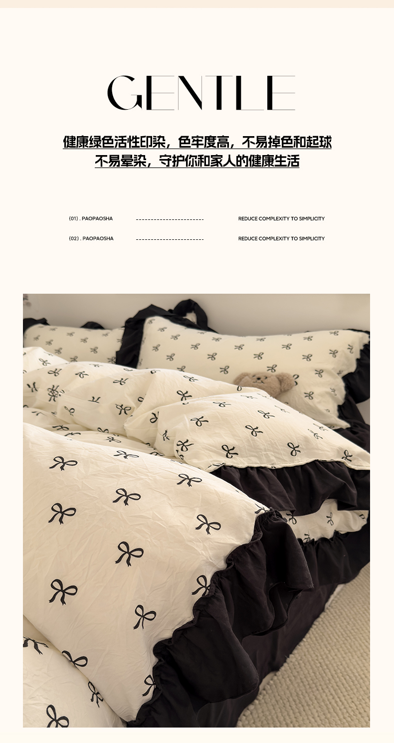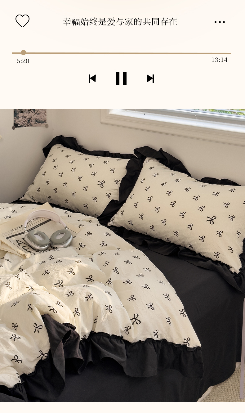 当前位置: 91家纺网 > 商品网购 > 床品套件 > 四件套 > 双层纱四件套 > 繁花家居 2025新款黑色花边赫本风水洗棉双层纱针织棉韩式花边四件套 少女心