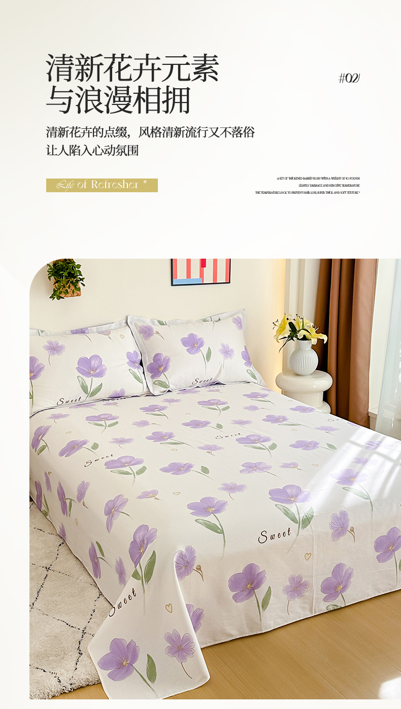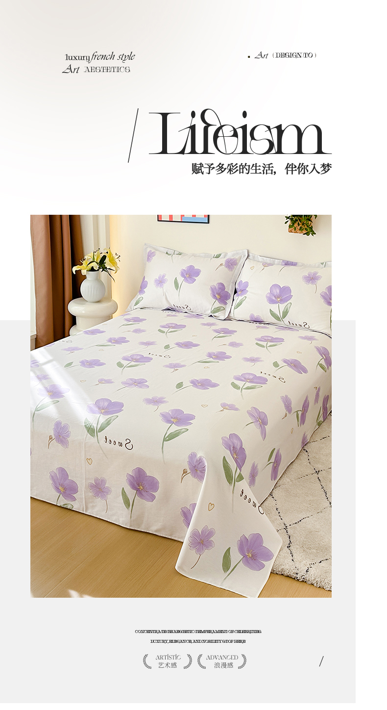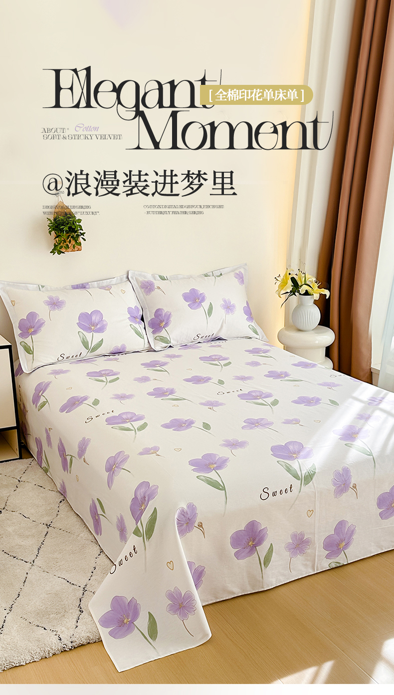 棉造家居 2025新款全棉纯棉印花学生宿舍单床单 甜美花韵