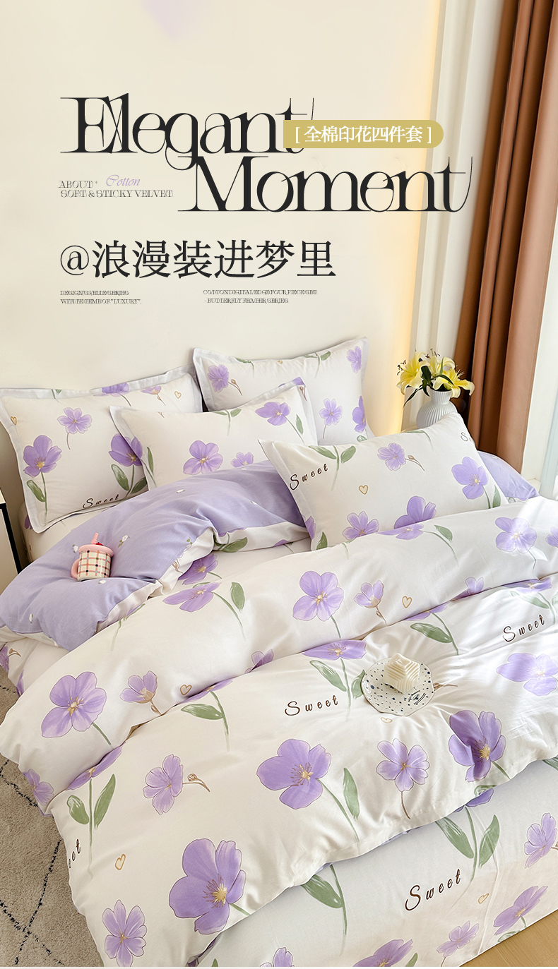 当前位置: 91家纺网 > 商品网购 > 床品套件 > 四件套 > 全棉普通四件套 > 棉造家居 2025新款亲肤舒适全棉纯棉印花系列三/四件套 甜美花韵