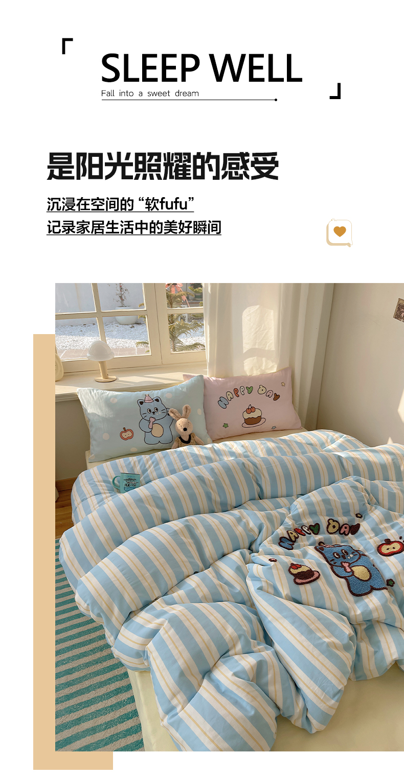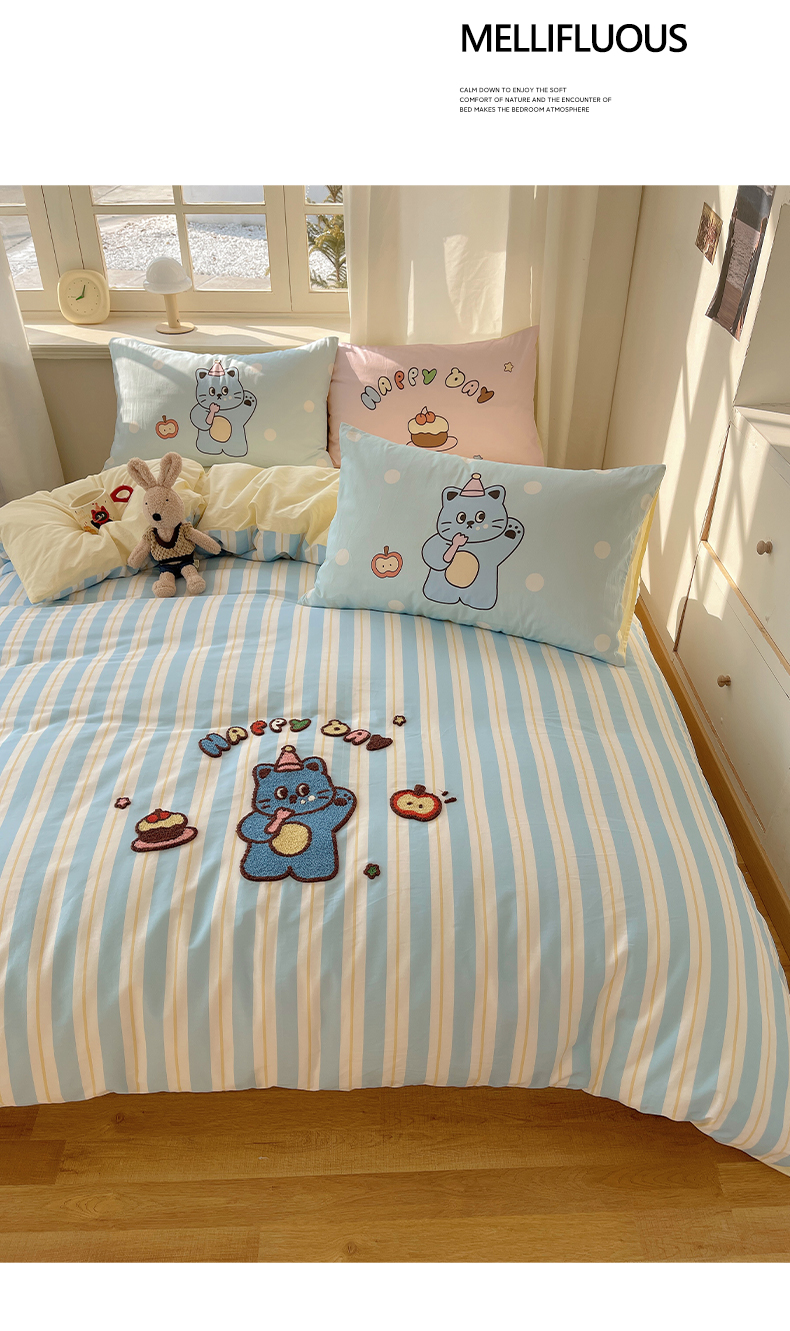 (总)美乐迪家纺 2024新款全棉印花混搭系列四件套,波点小猫,花园小狗,可爱兔,可乐汉堡,奶油狗,甜心小熊,童趣,小熊猫