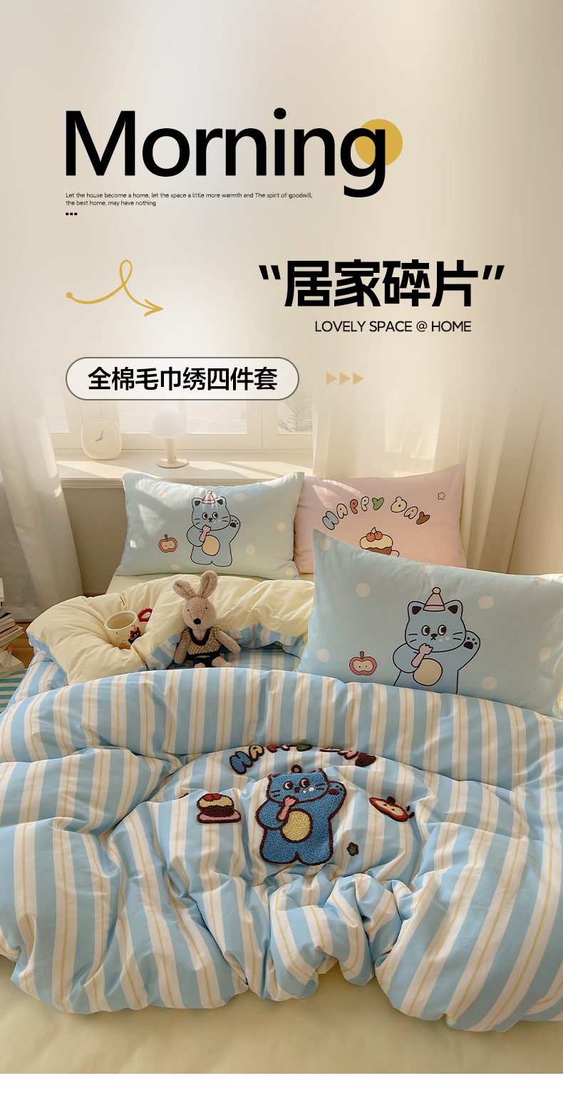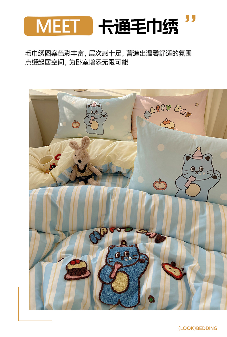 商品名称:(总)美乐迪家纺 2025新款休闲风系列全棉毛巾绣四件套